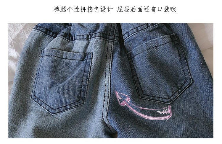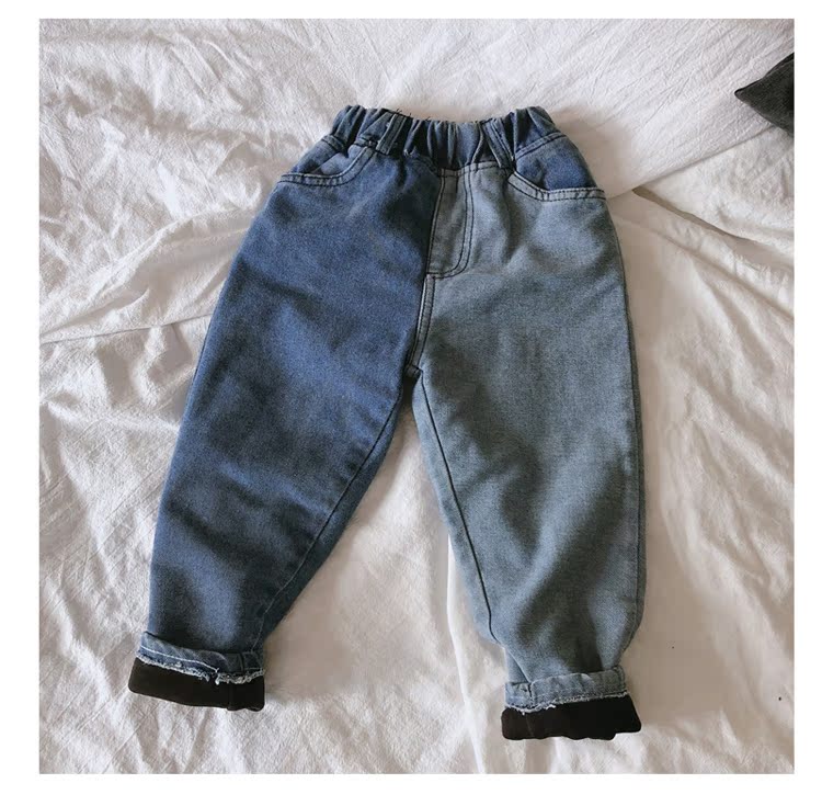 2019中小童秋冬季新款加絨加厚撞色褲腿長褲 兒童帥氣百搭牛仔褲1入
