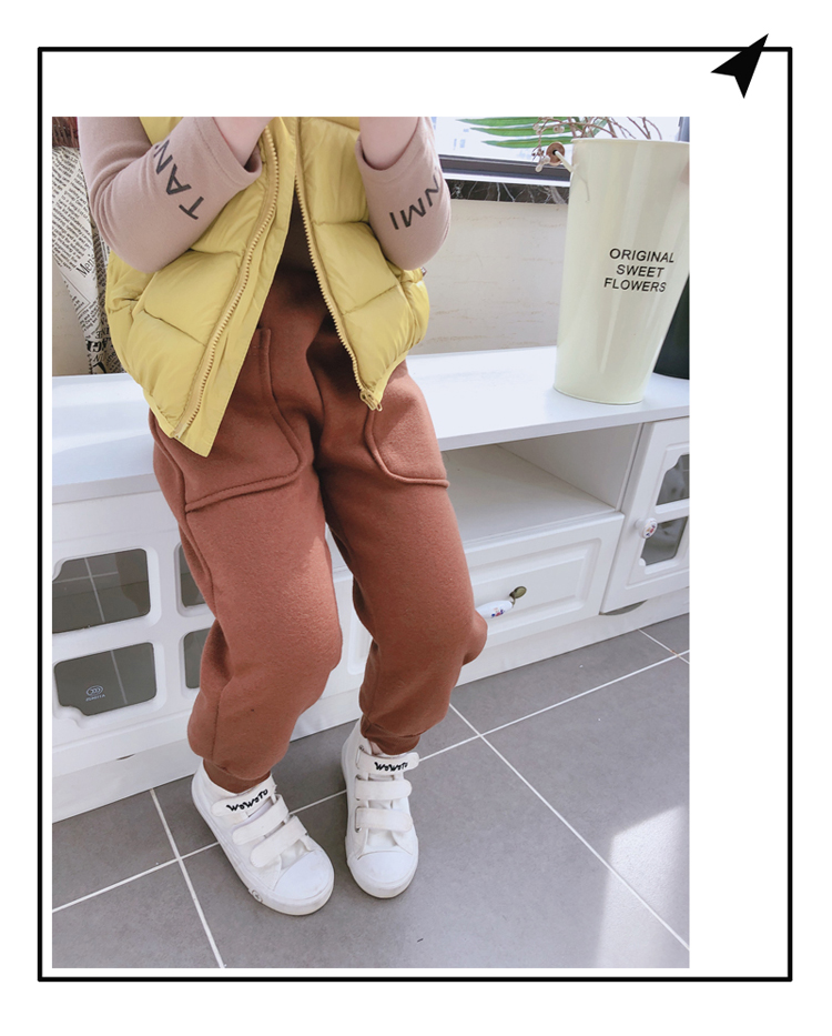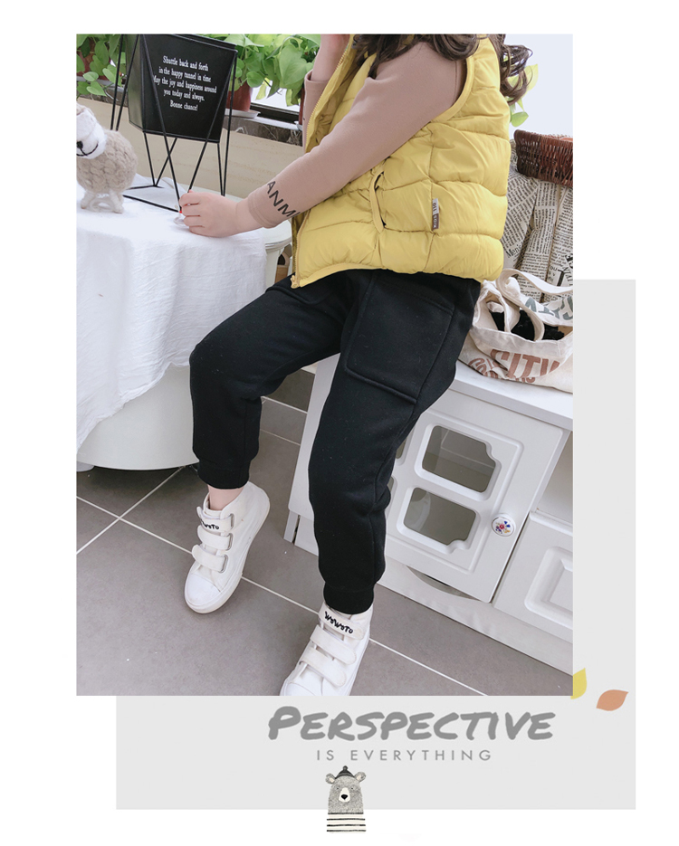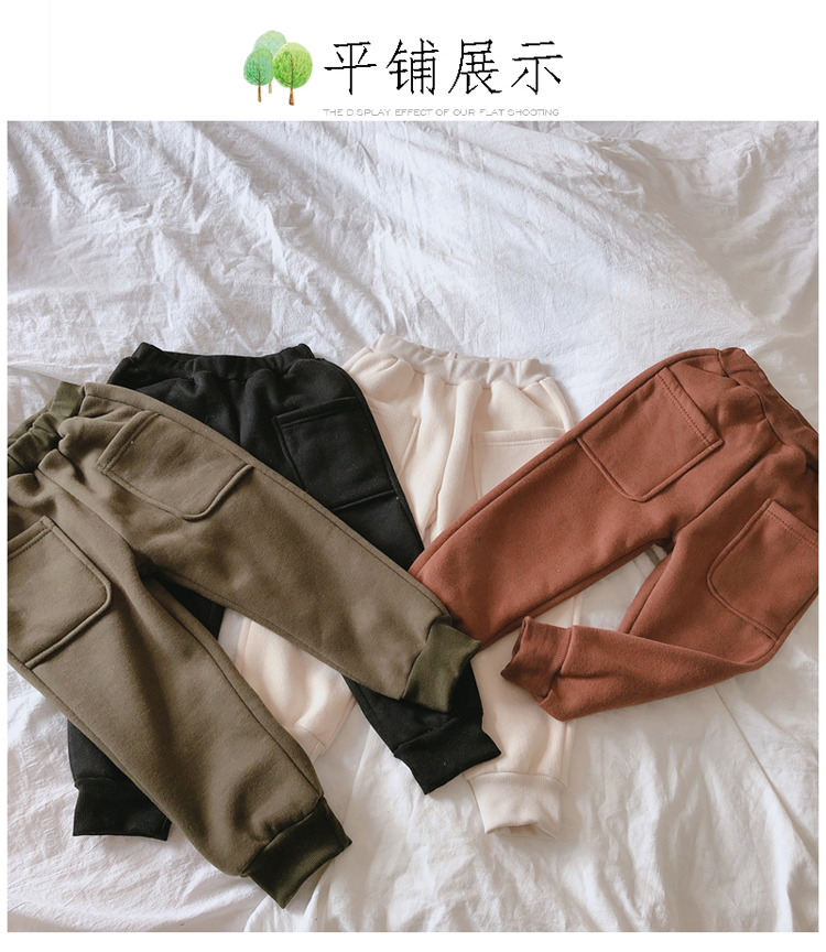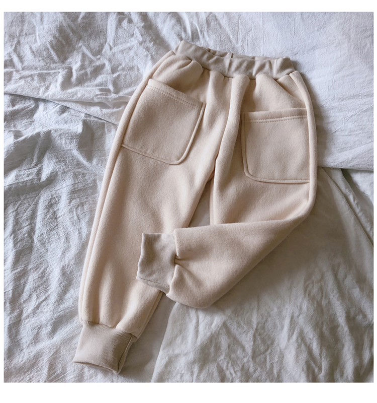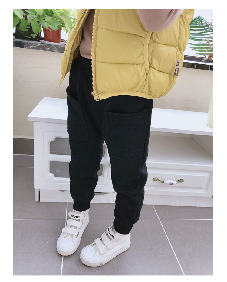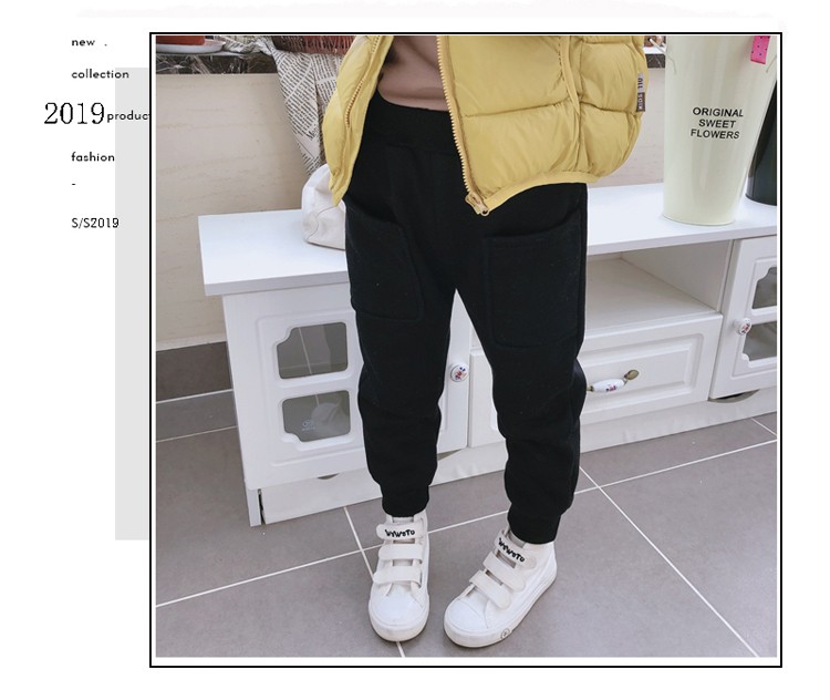 2019秋冬季新款中小童寬松薄絨束口褲腳休閑褲 男女童帥氣哈倫褲1入