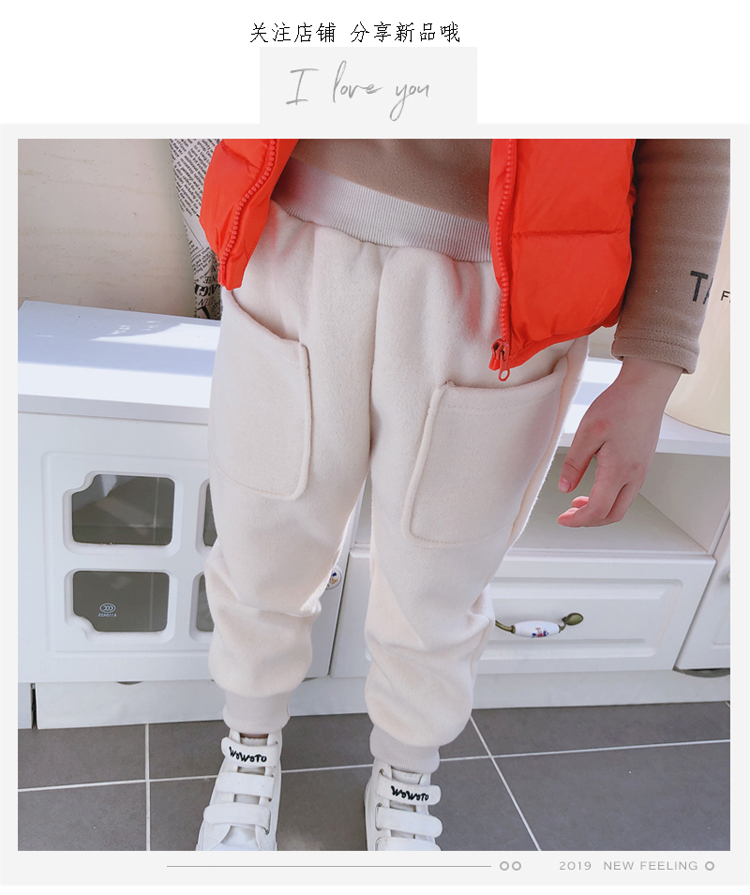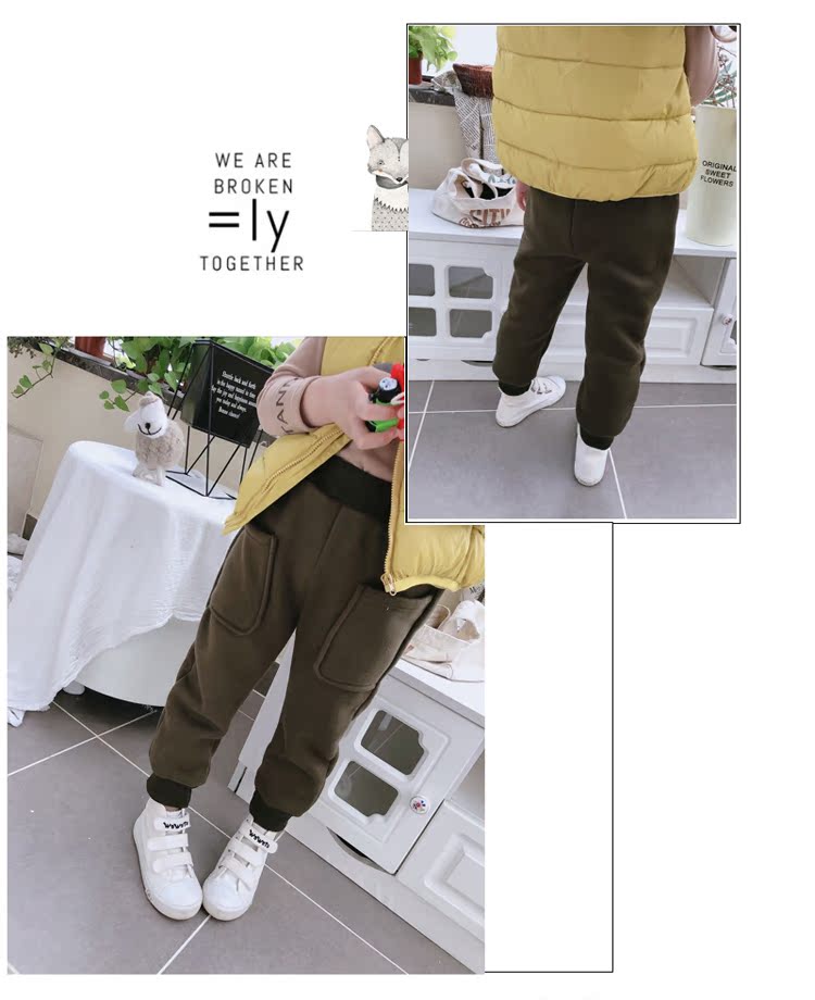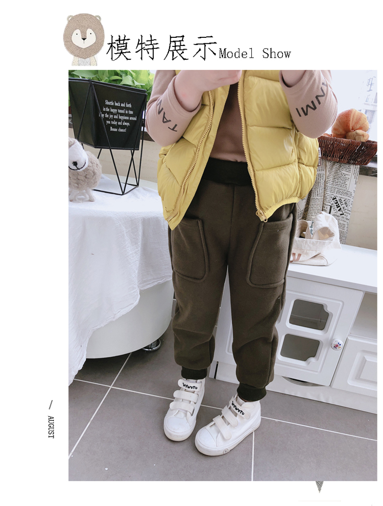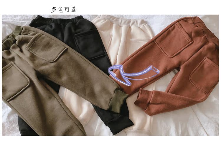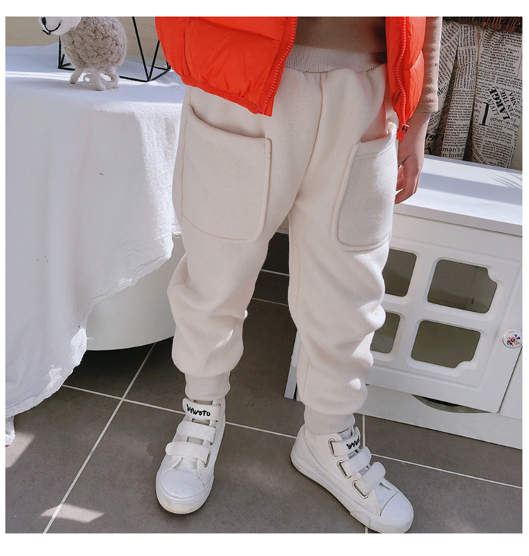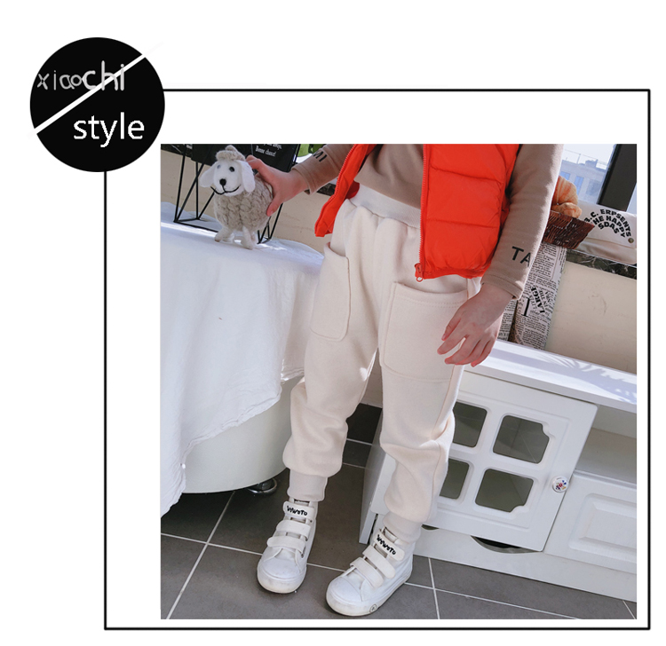 2019秋冬季新款中小童寬松薄絨束口褲腳休閑褲 男女童帥氣哈倫褲1入