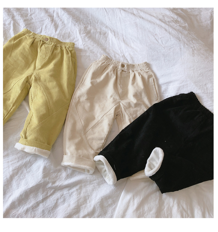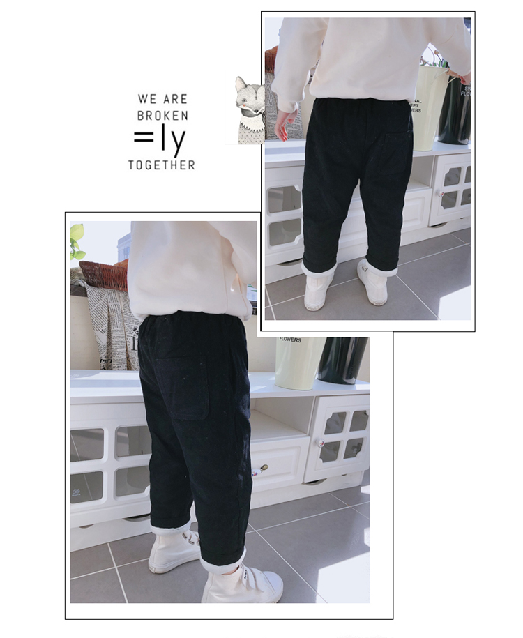 2019冬季新款 中小童保暖加絨加厚休閑褲 男女童寬松舒適純色褲子1入