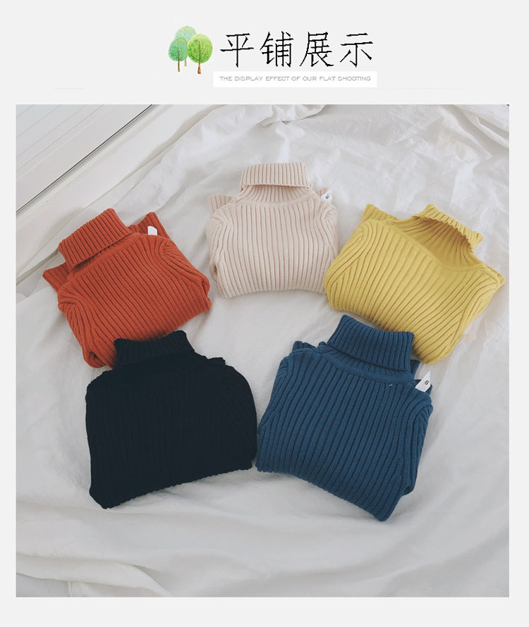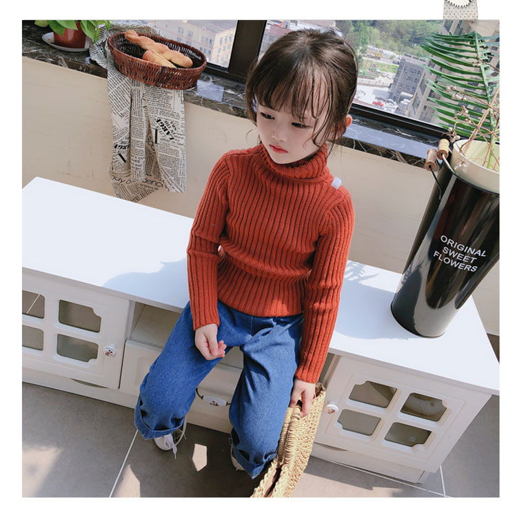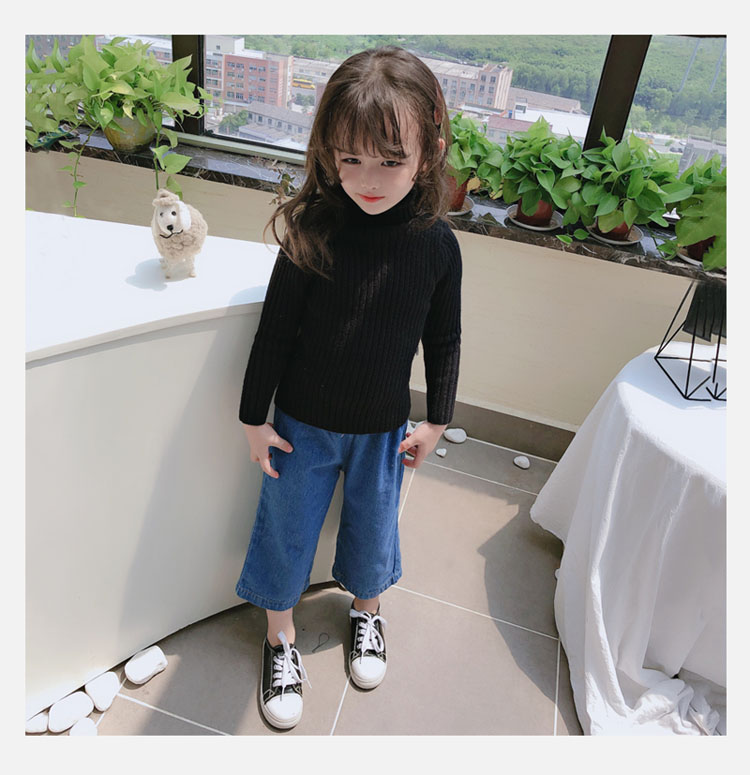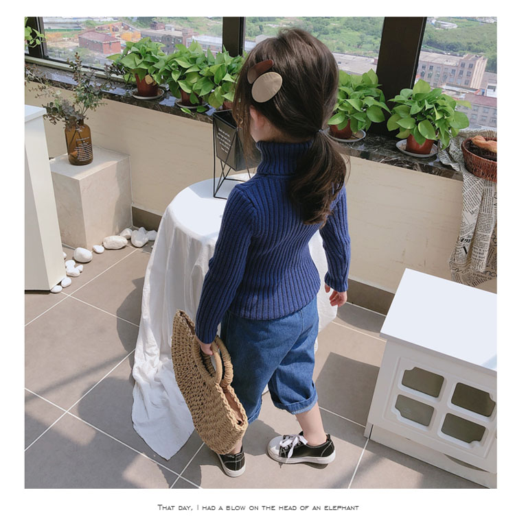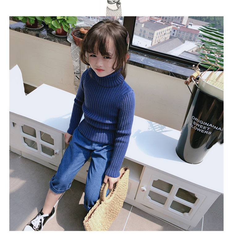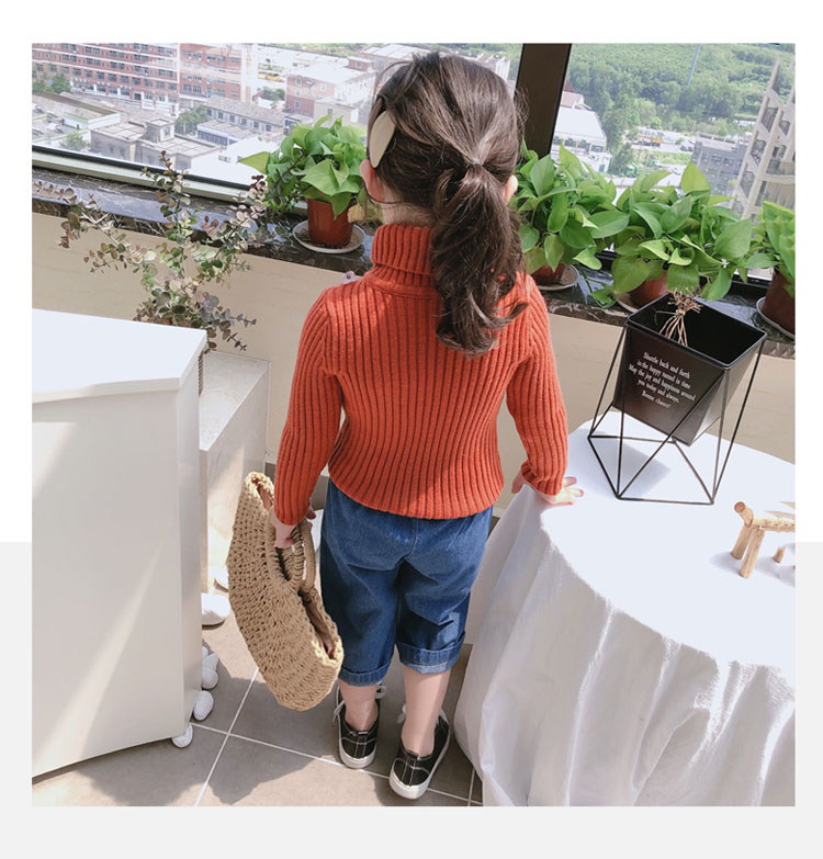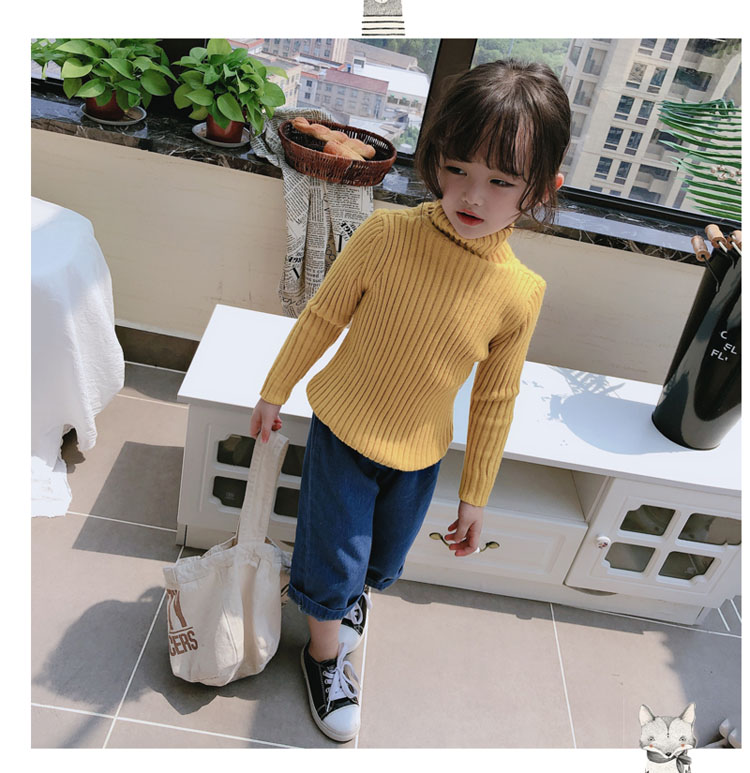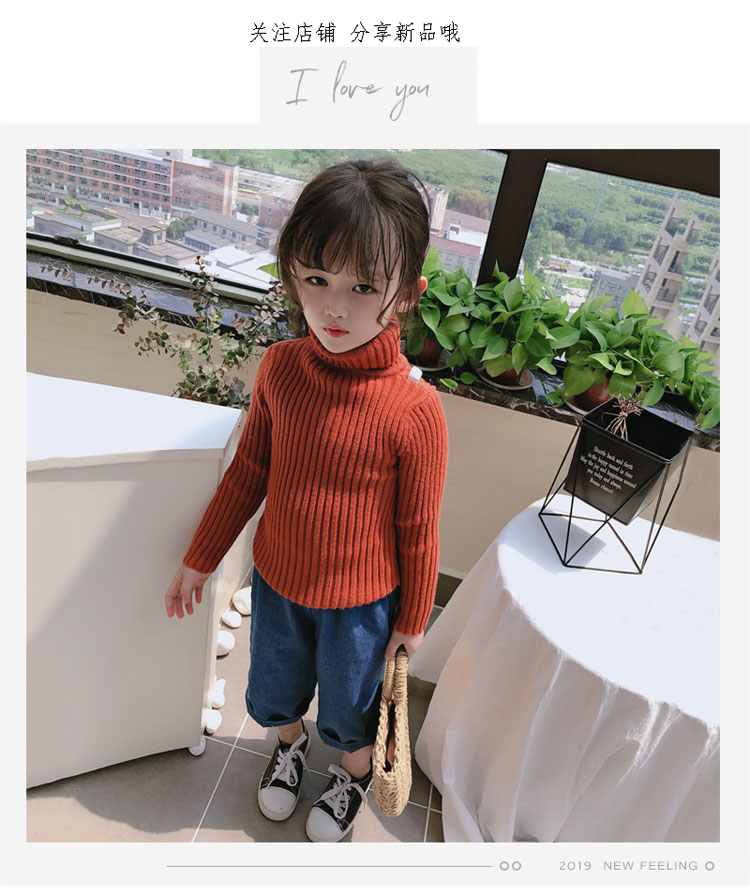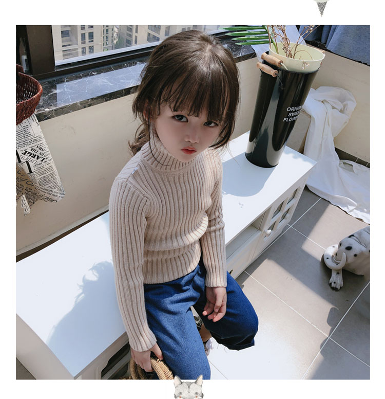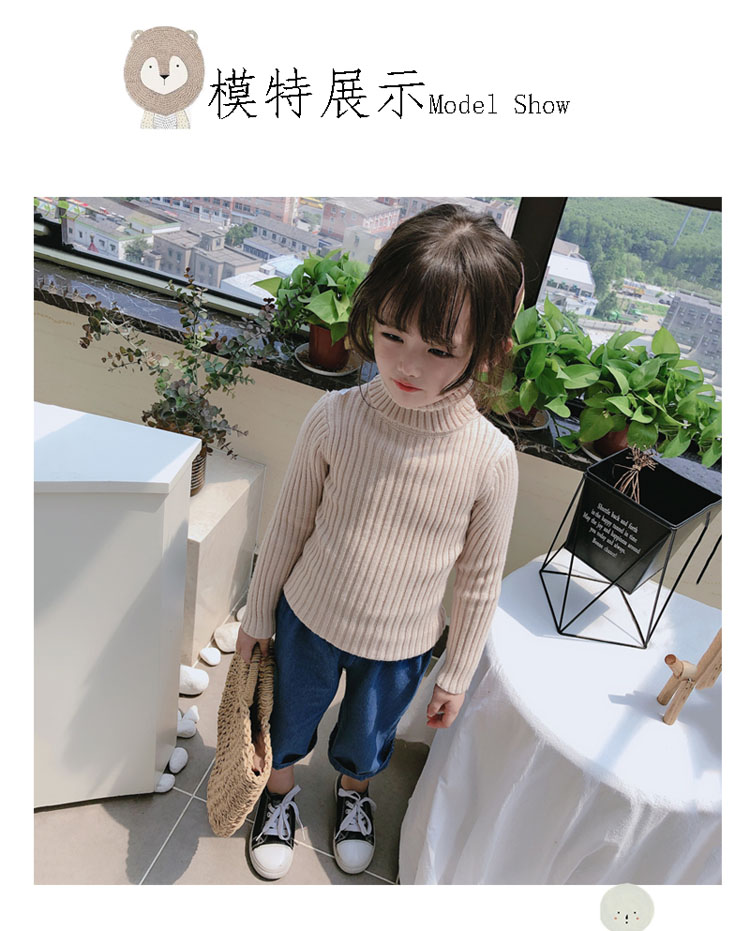 2019春秋季新款 女童舒適百搭純色針織衫 兒童個性洋氣高領毛衣1入
