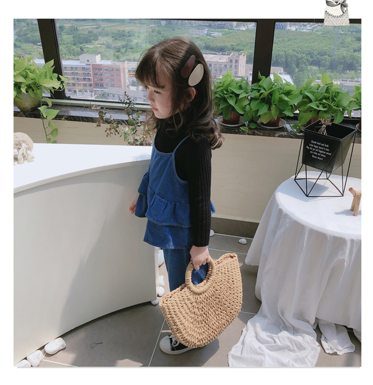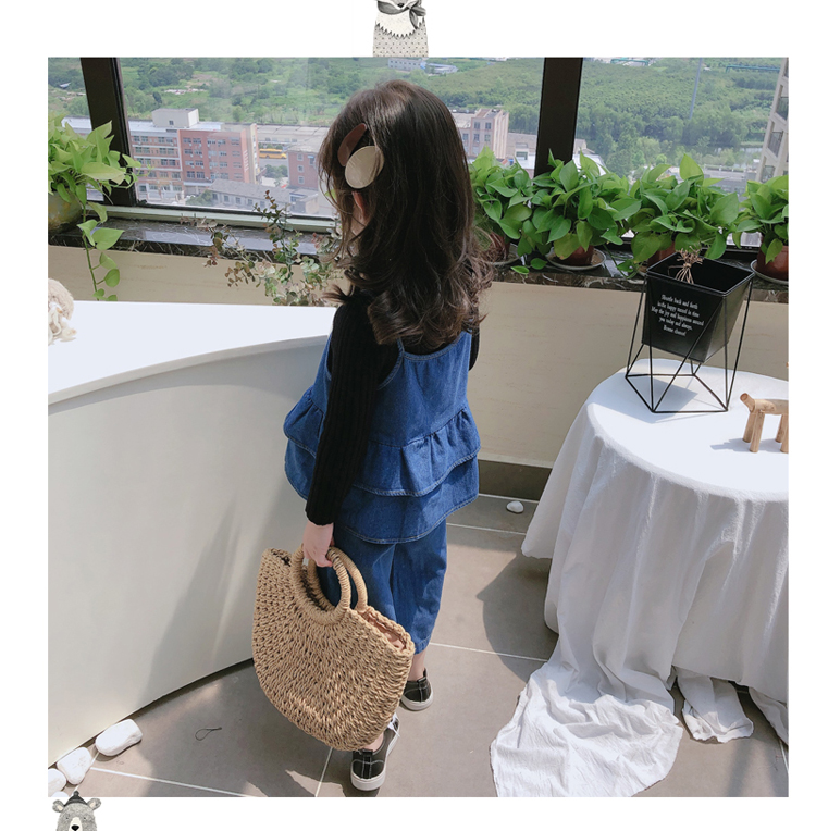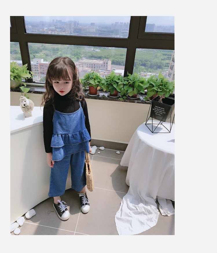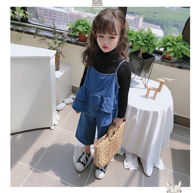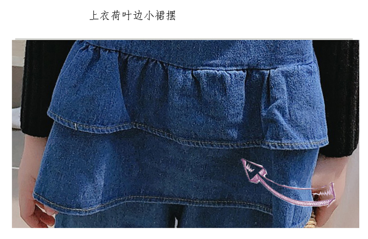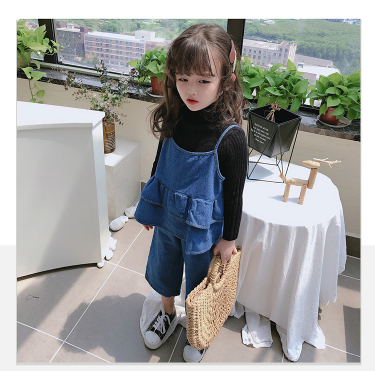 2019春秋新款 女童洋氣舒適套裝 兒童牛仔吊帶上衣+牛仔褲兩件套1入