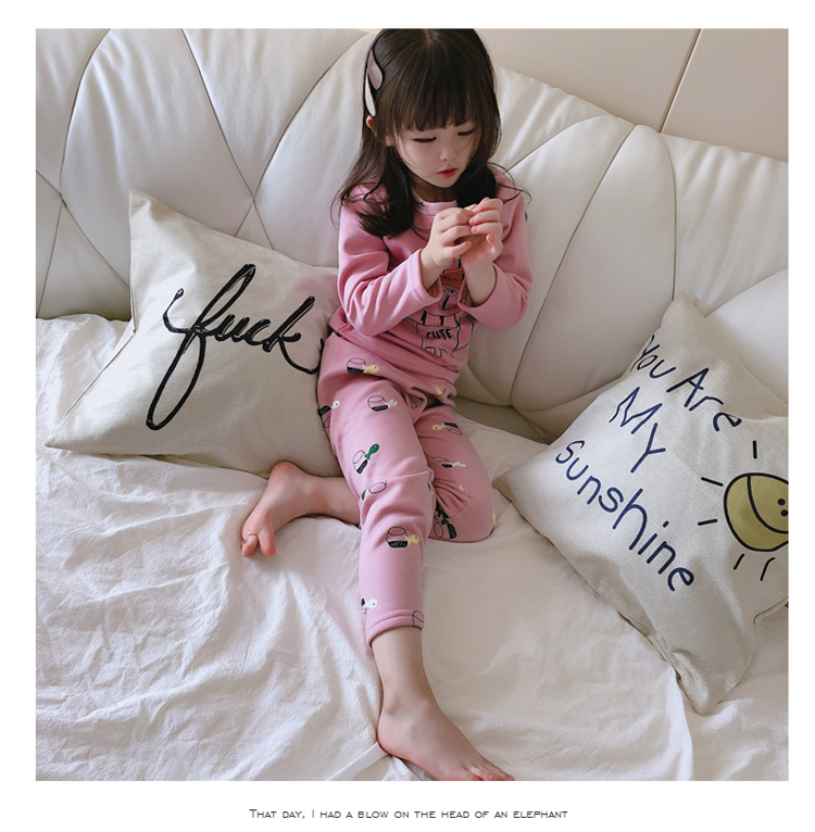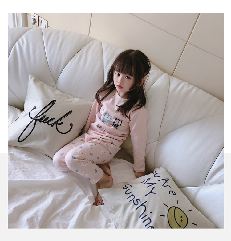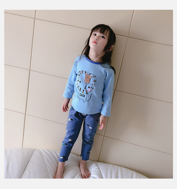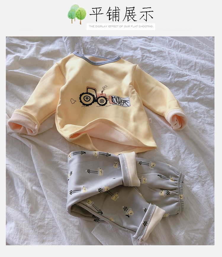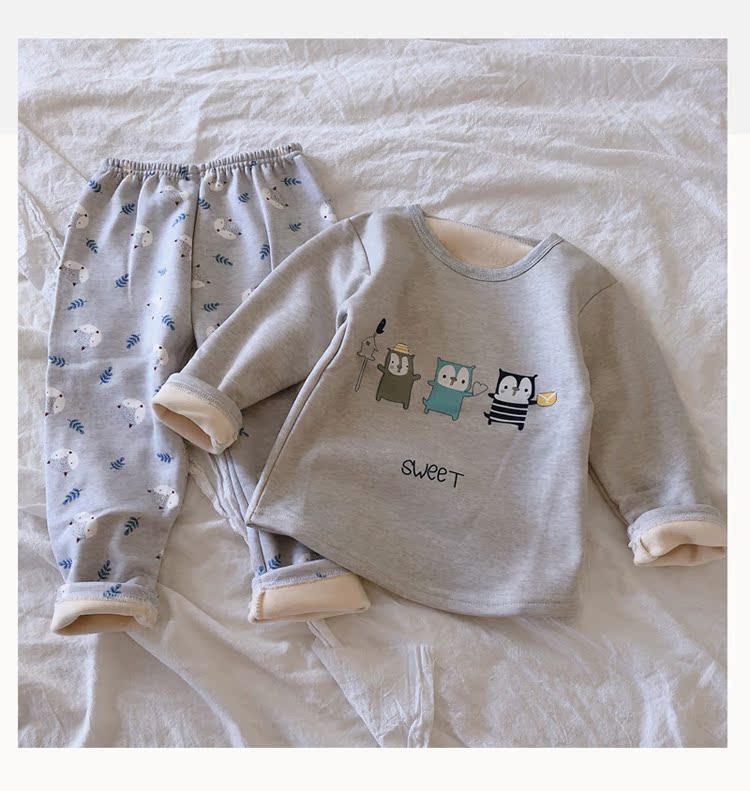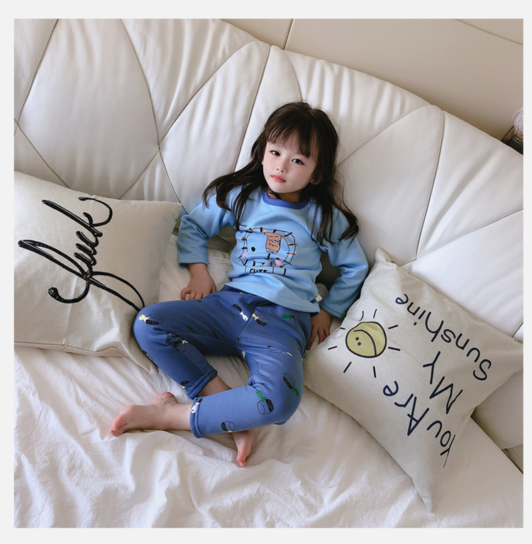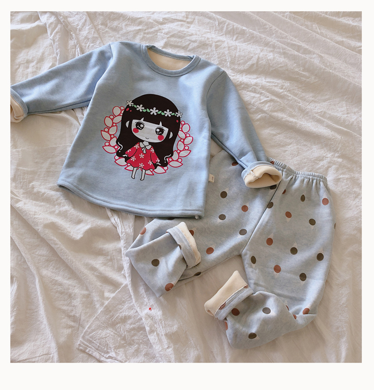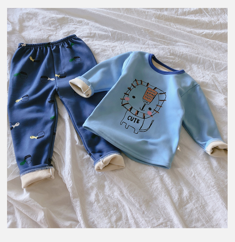 2019秋冬男女童裝寶寶加絨加厚保暖內衣套裝兒童家居服睡衣兩件套1入