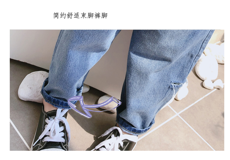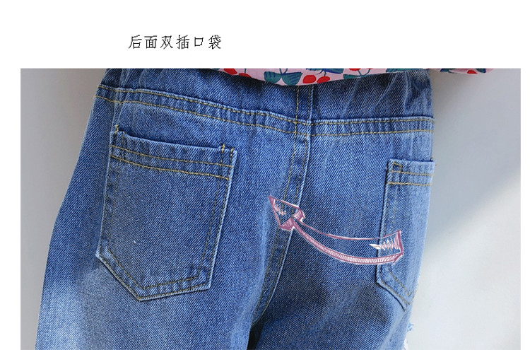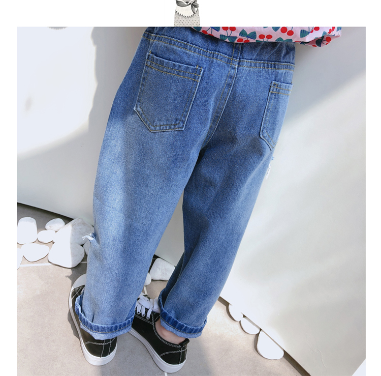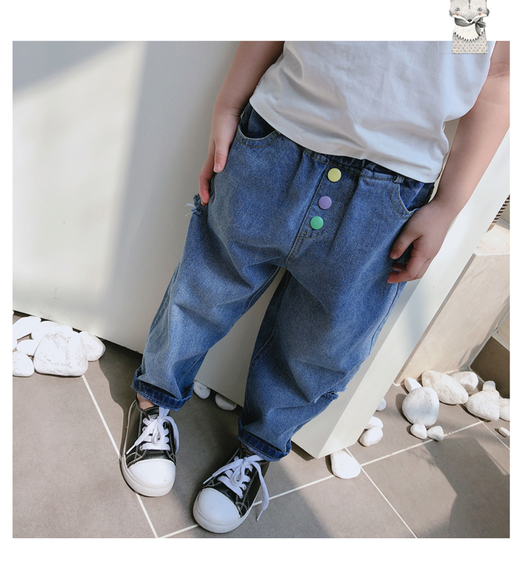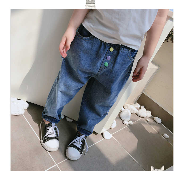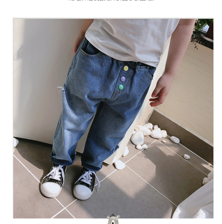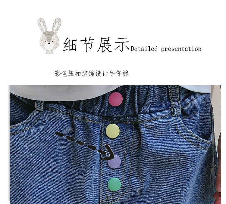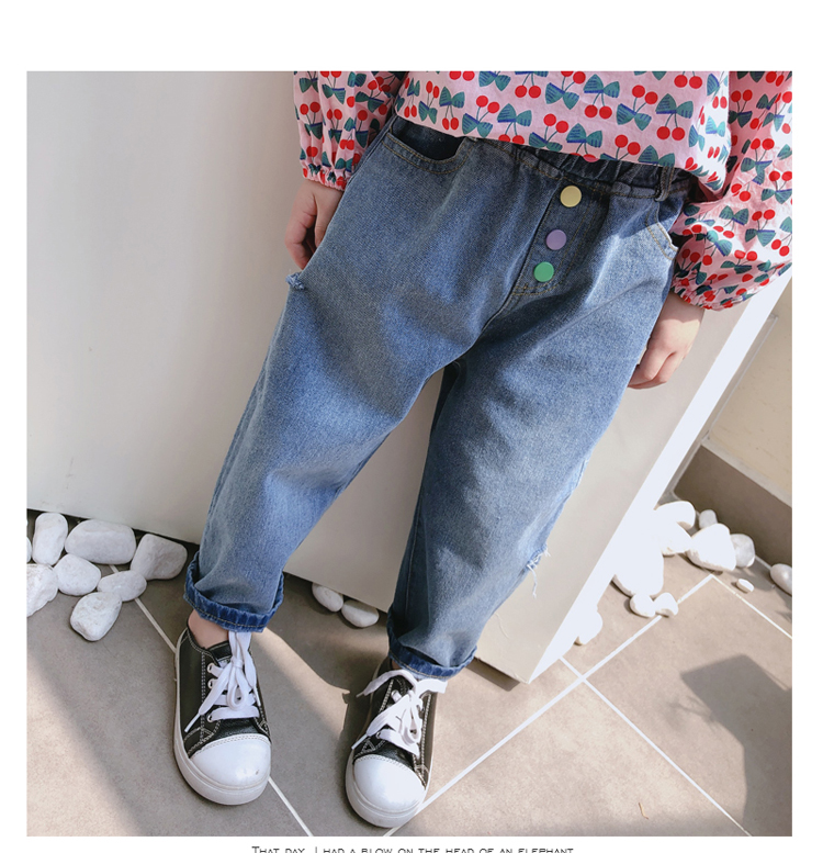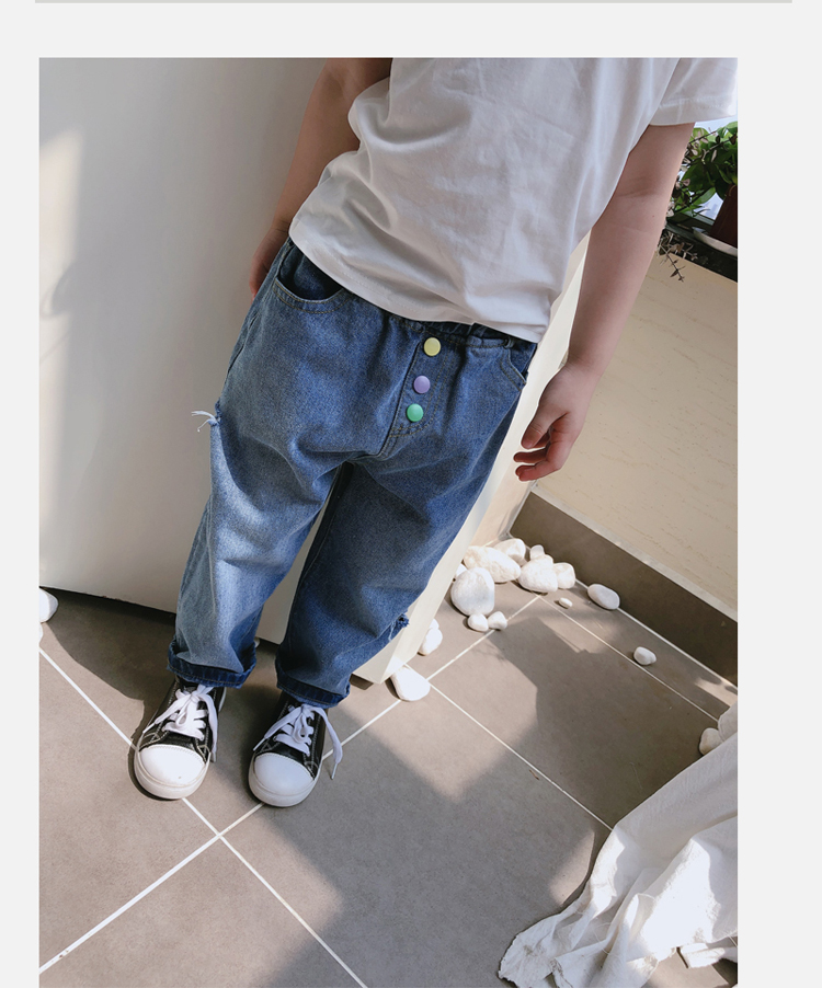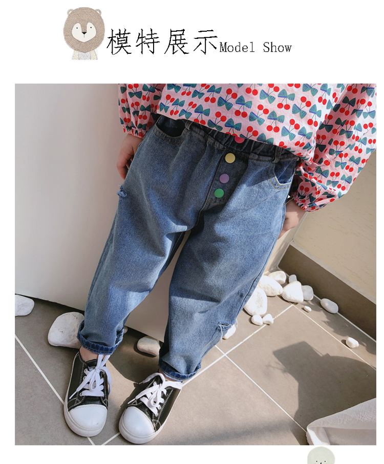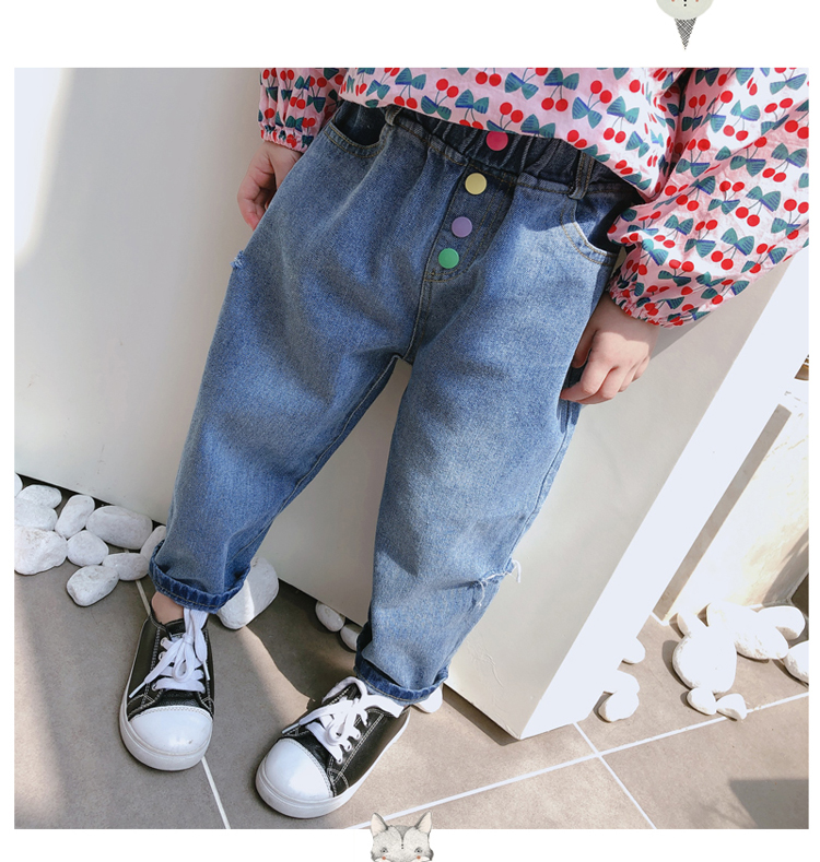 2019春秋季新款 女童舒適百搭牛仔褲 中小童個性洋氣彩色扣子褲子1入