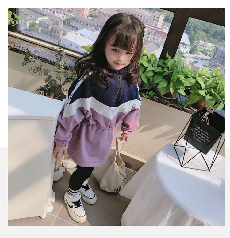2019春秋季新款 女童可愛甜美休閑裙 中小童個性洋氣撞色連衣裙1入