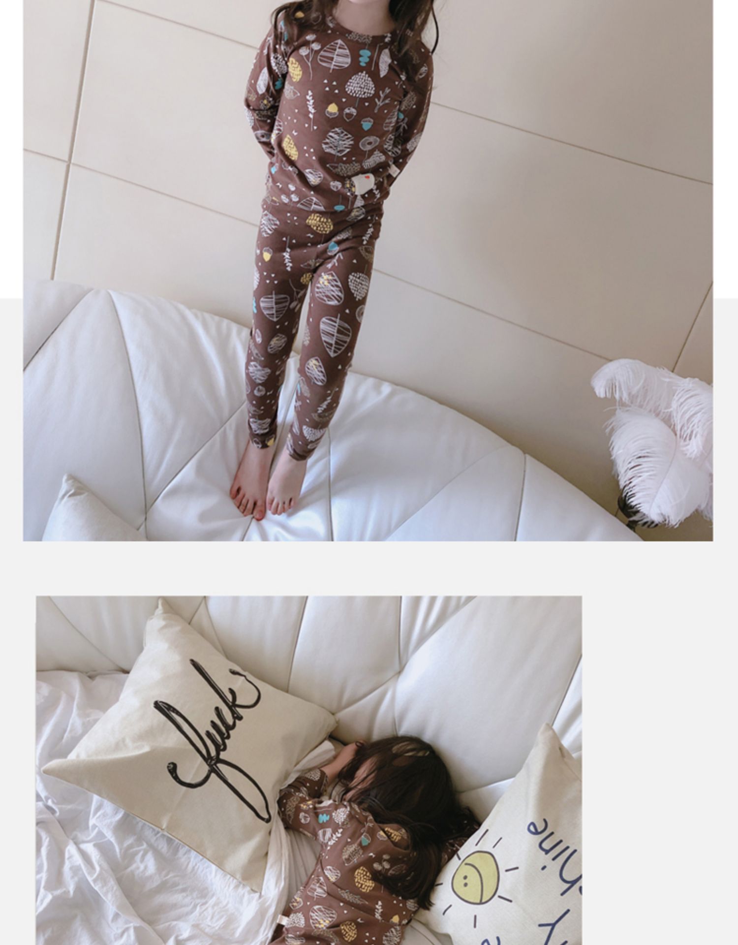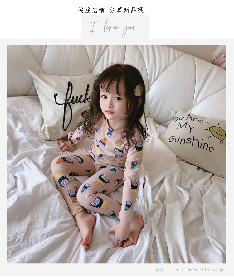 2019秋季新款 男女童家居服睡衣套裝 兒童卡通T恤+舒適長褲兩件套1入