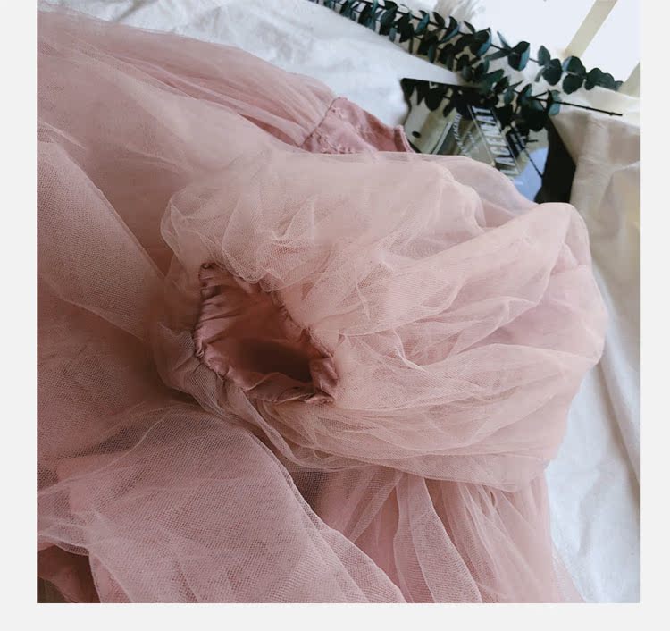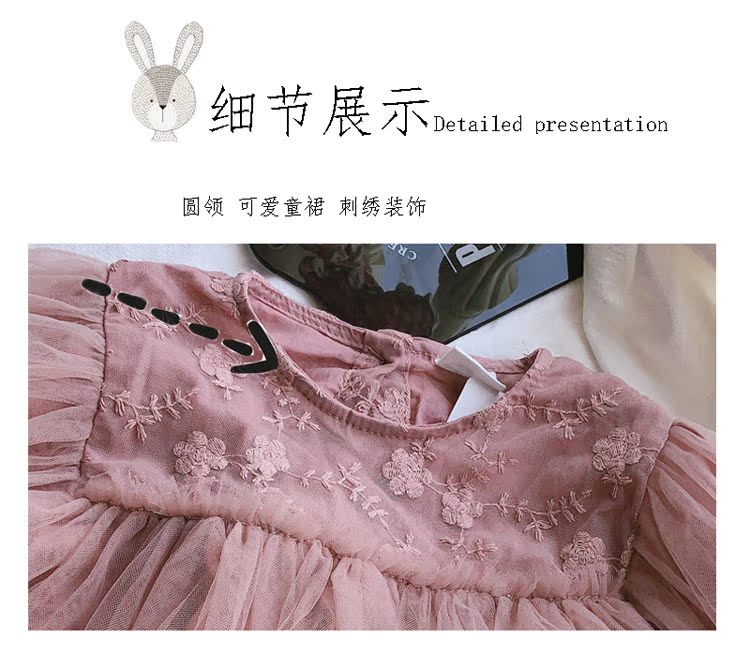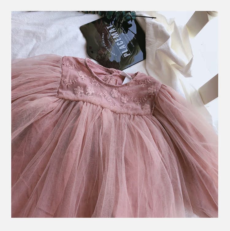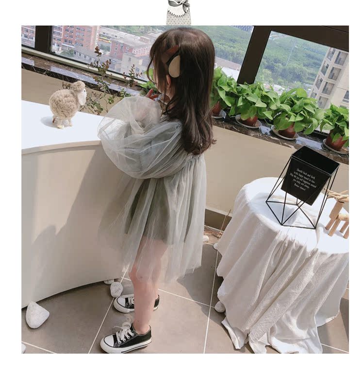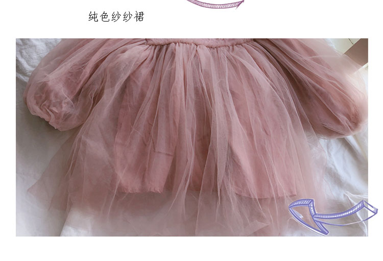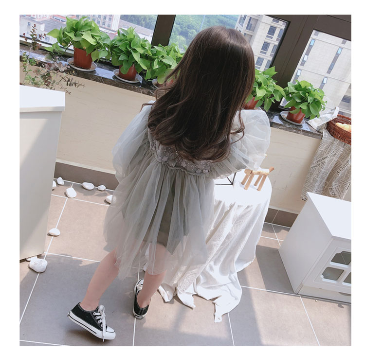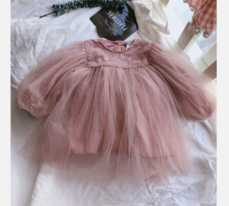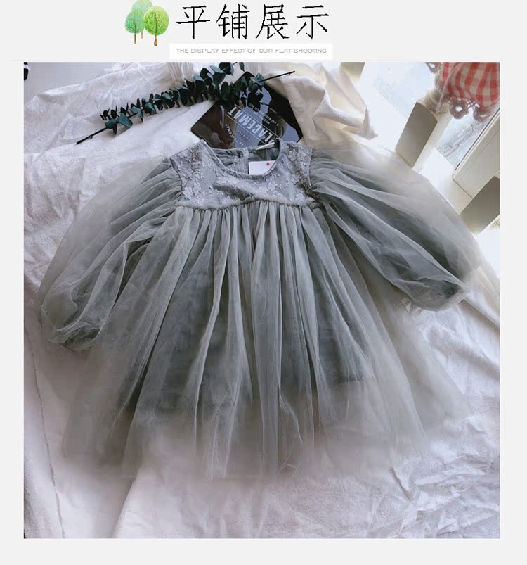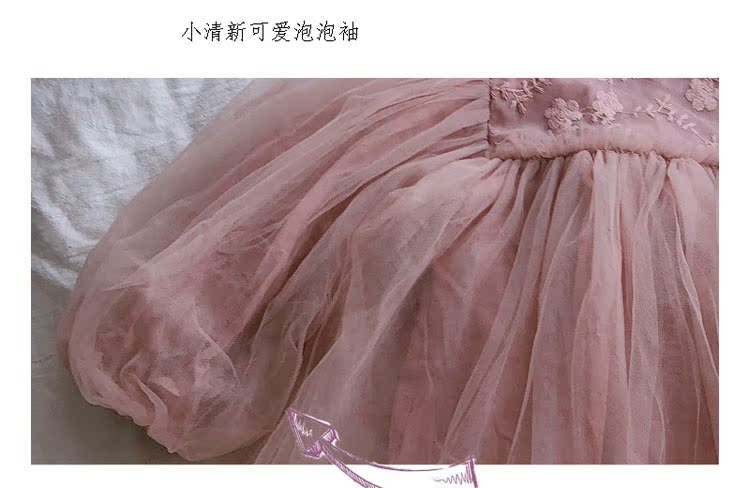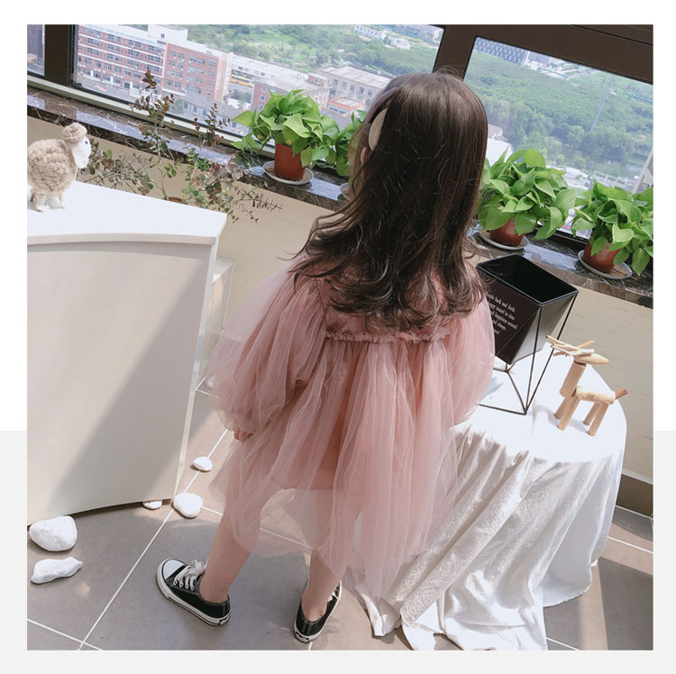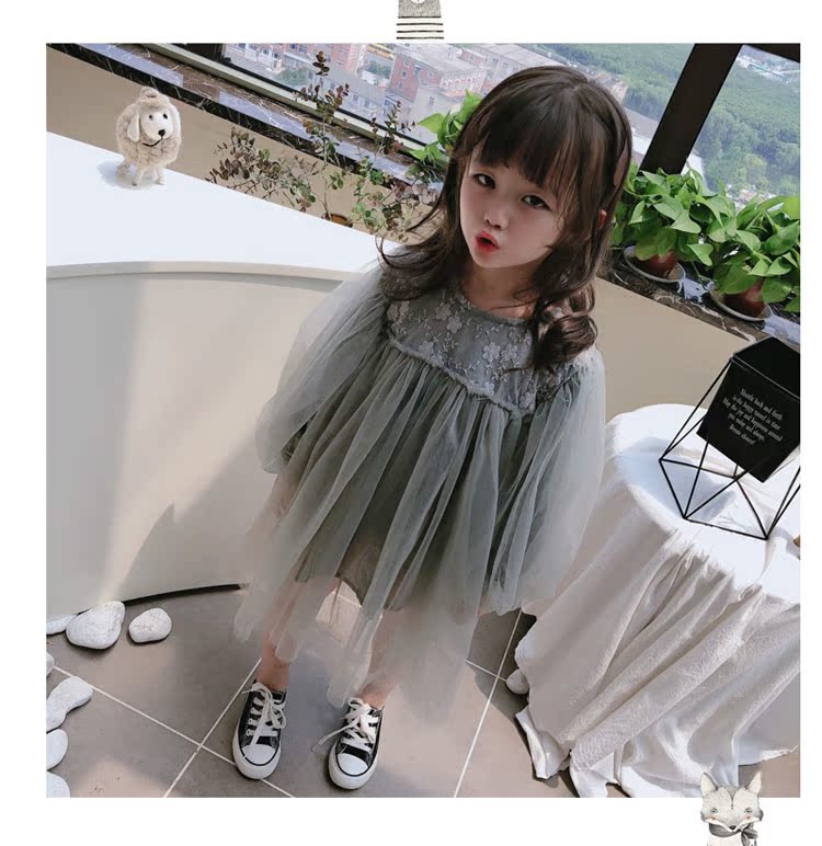2019春秋童裝 中小童小清新兒童長袖連衣裙 女童泡泡袖蕾絲網紗裙1入