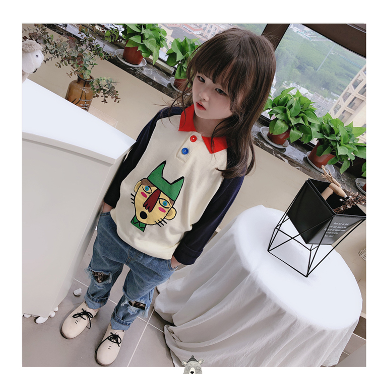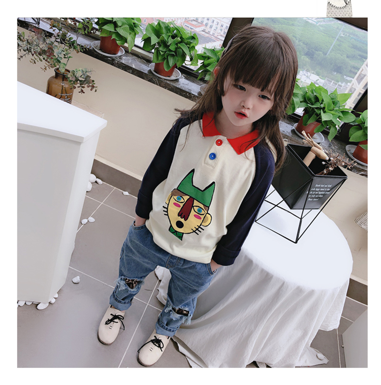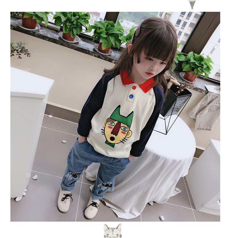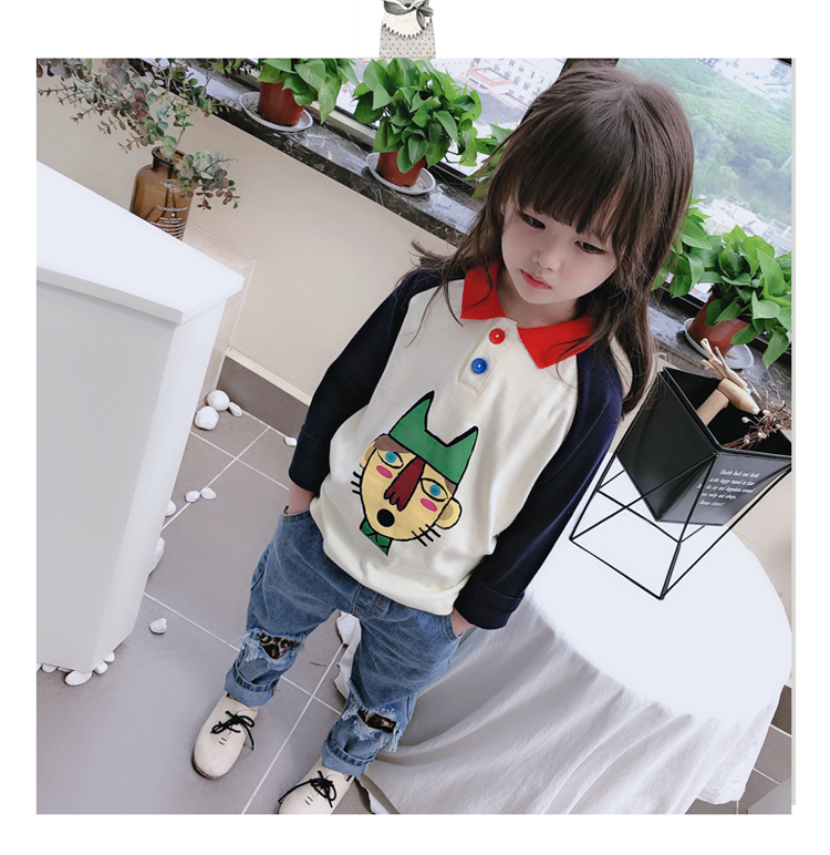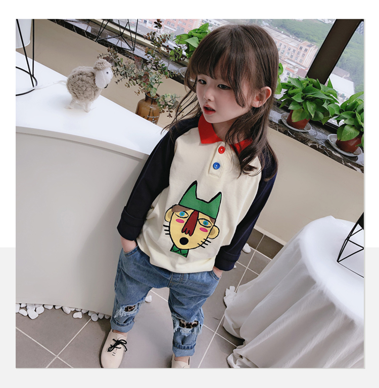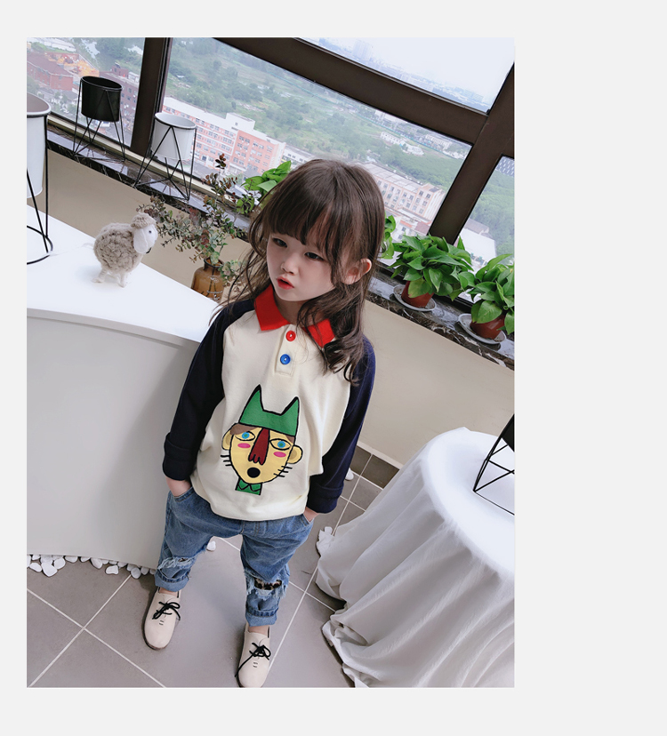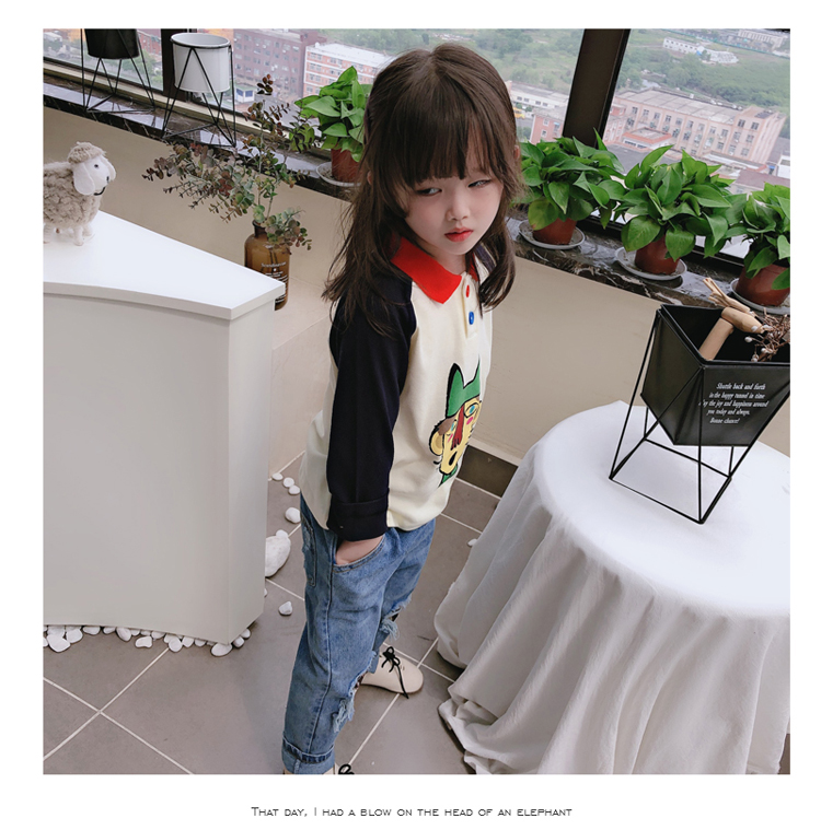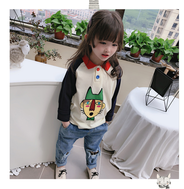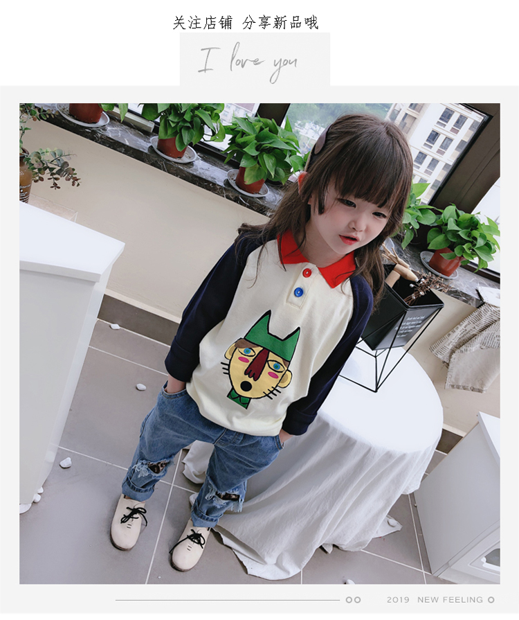 2019春秋季新款 男女童寶寶卡通T恤 兒童個性洋氣翻領撞色打底衫1入