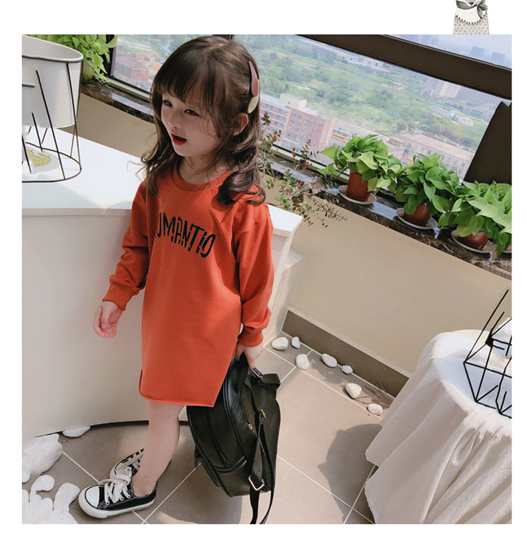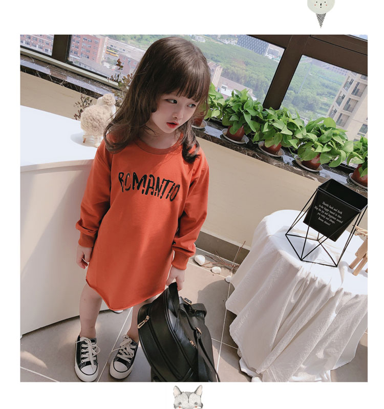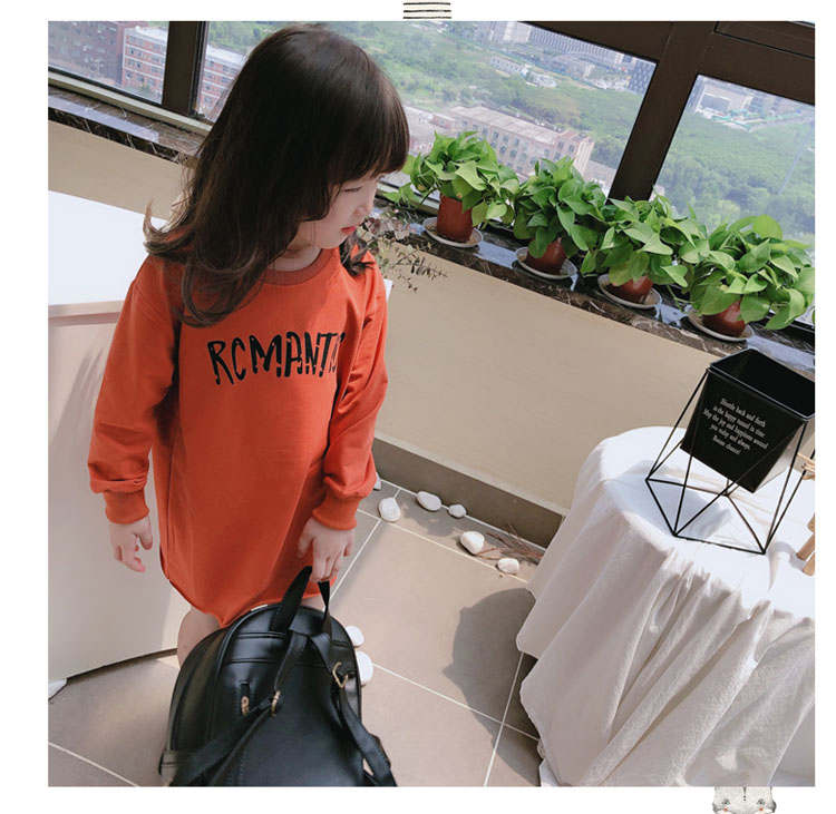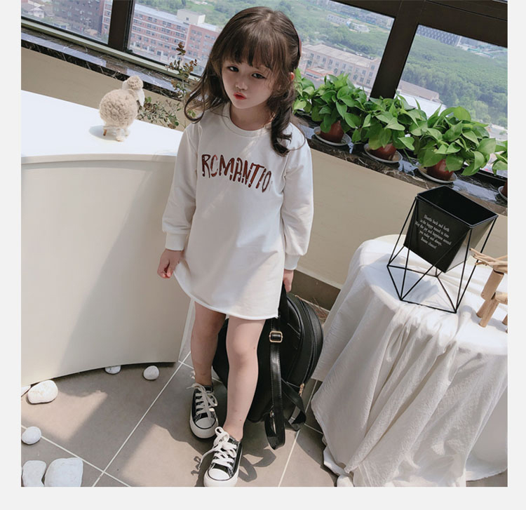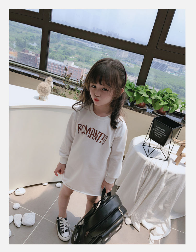 2019春秋季新款童裝 女童寶寶長袖T恤裙 兒童字母印花衛衣連衣裙1入