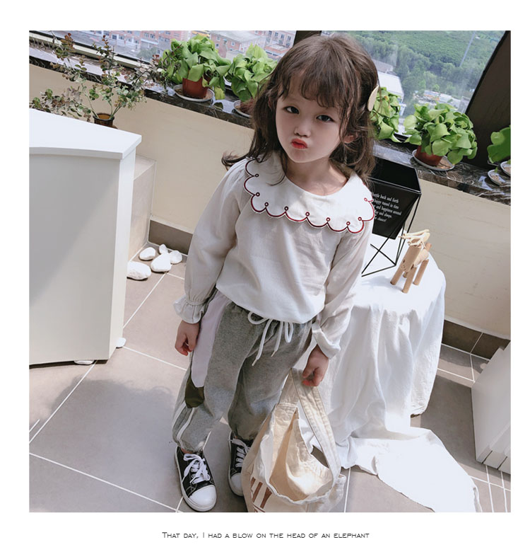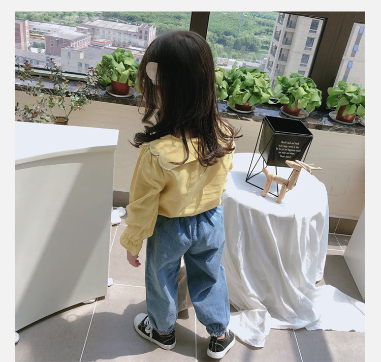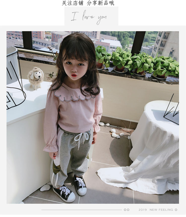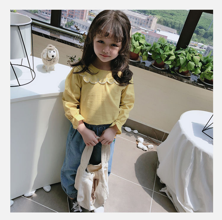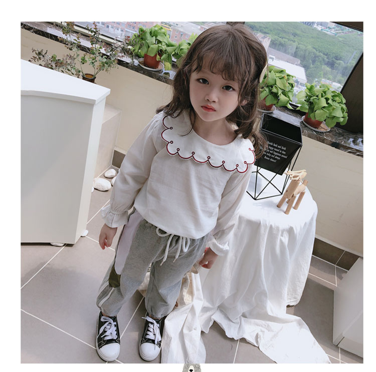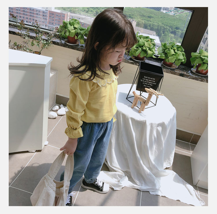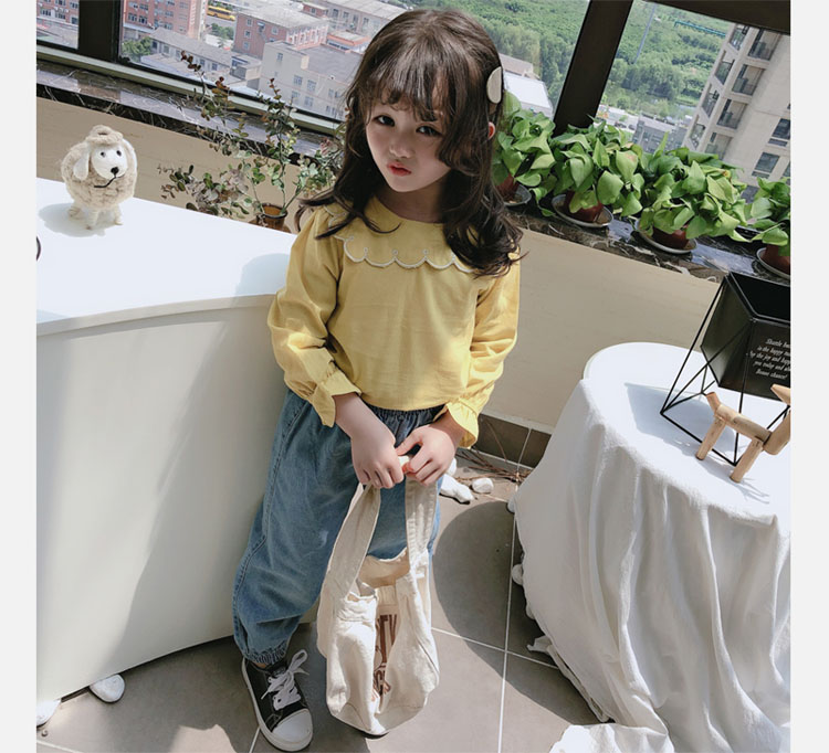 2019秋季新款 兒童小清新喇叭袖上衣 女童寶寶大翻領花邊長袖T恤1入