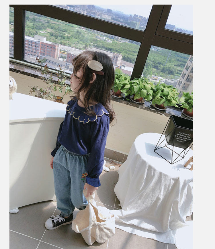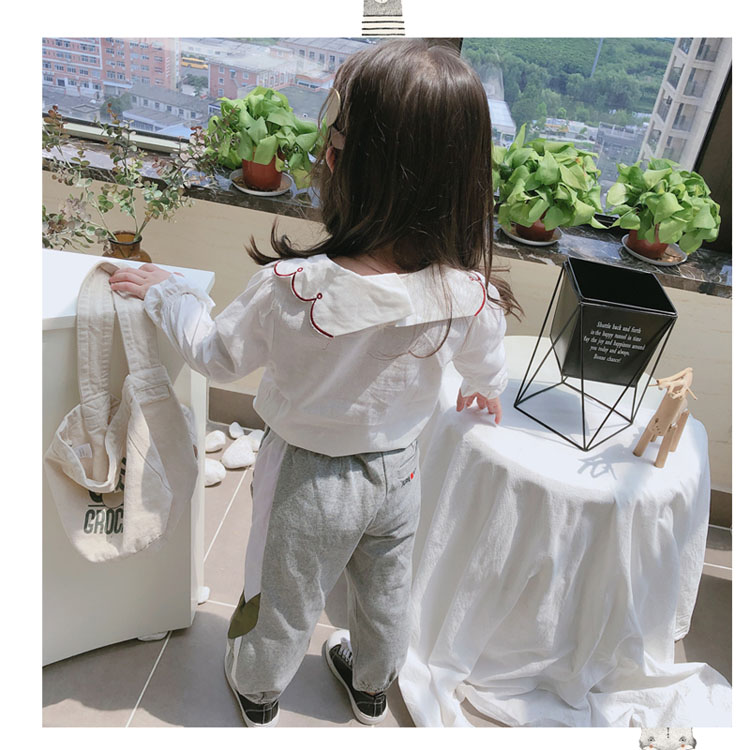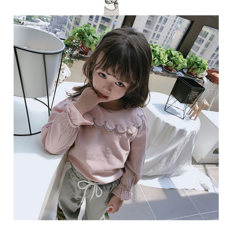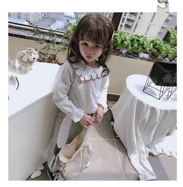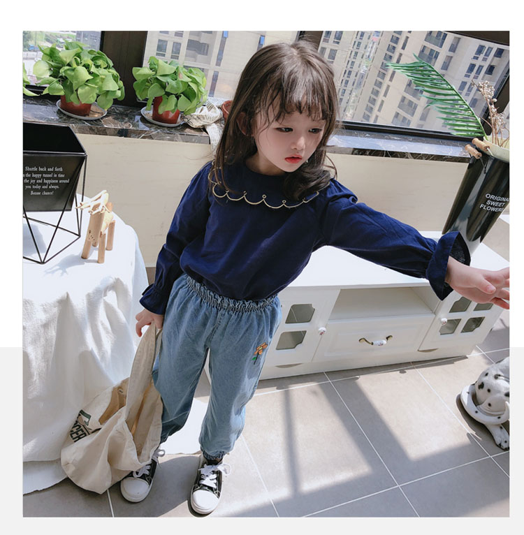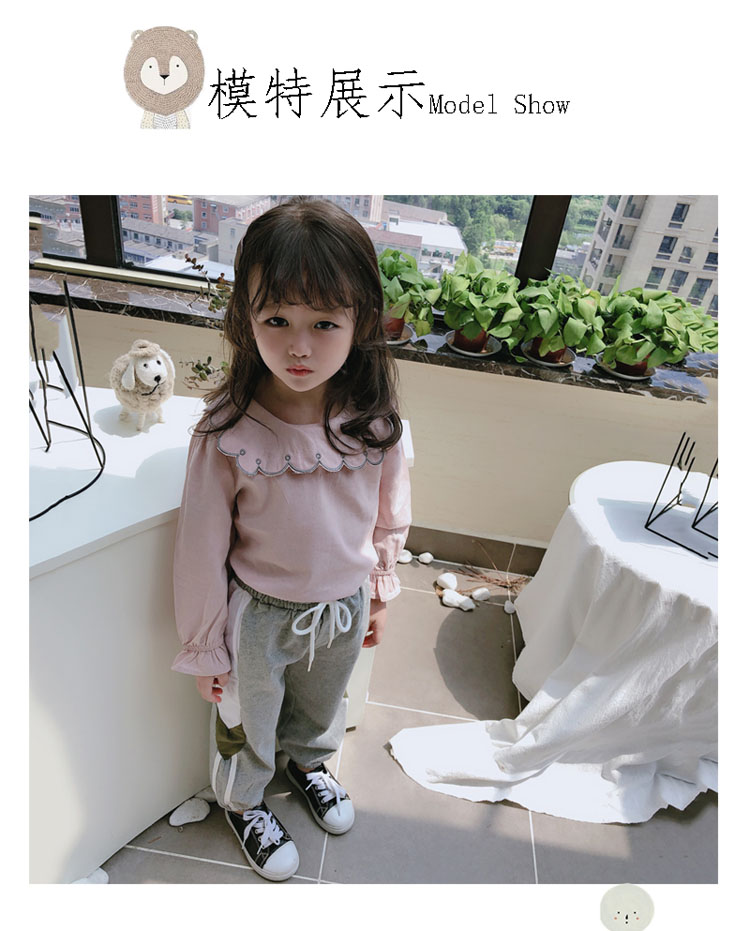 2019秋季新款 兒童小清新喇叭袖上衣 女童寶寶大翻領花邊長袖T恤1入