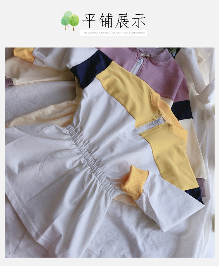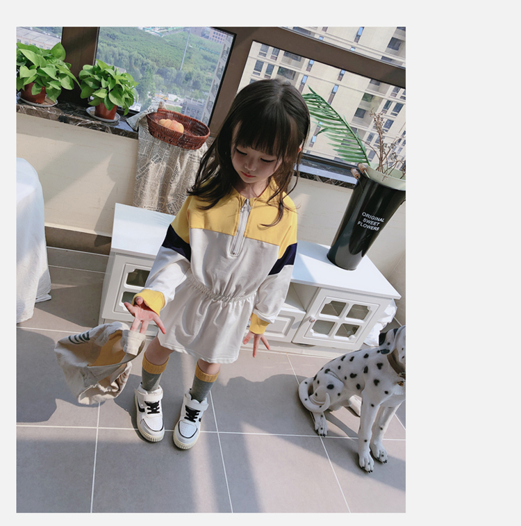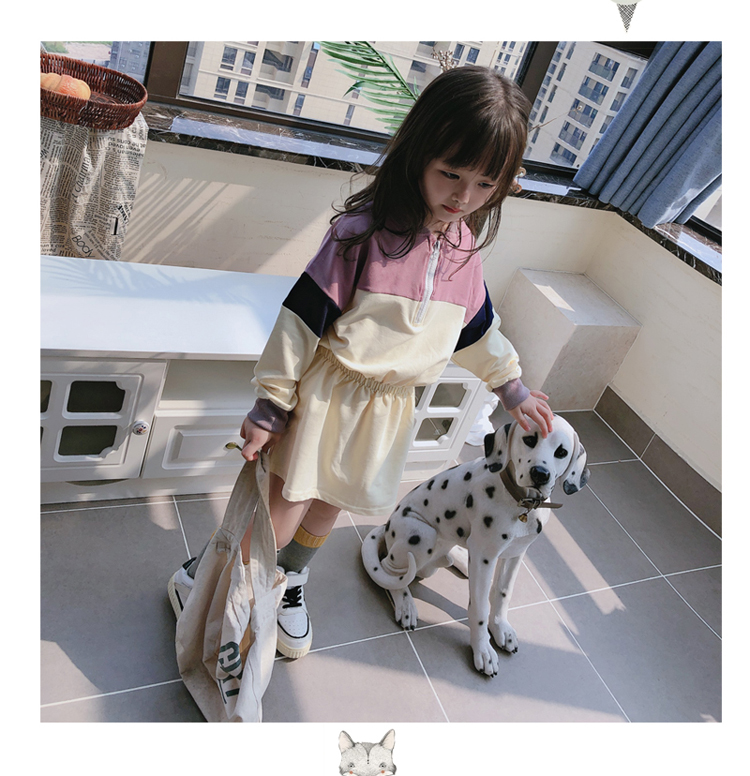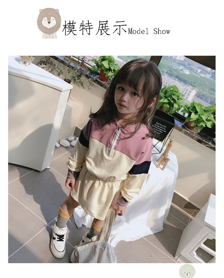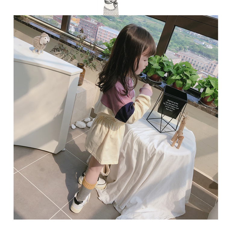 2019春秋季新款童裝 兒童長袖運動連衣裙 女童寶寶拼接撞色衛衣裙1入