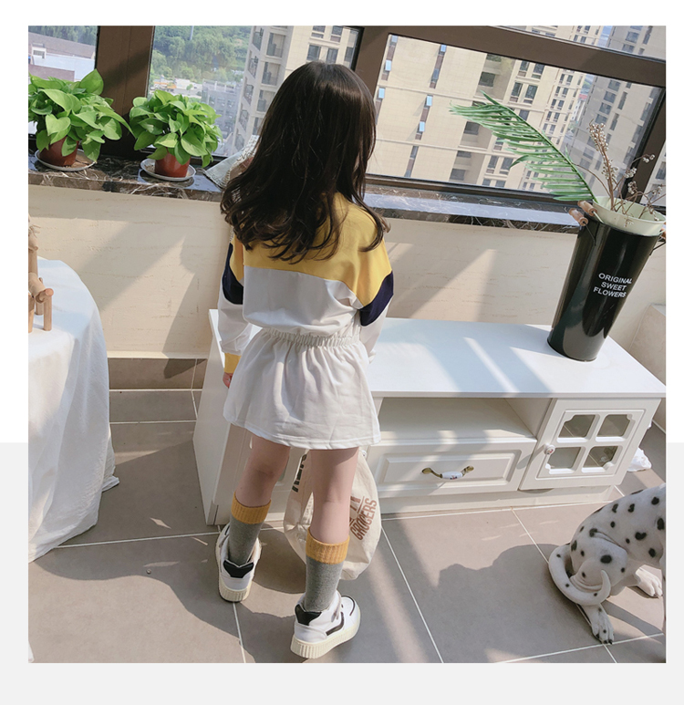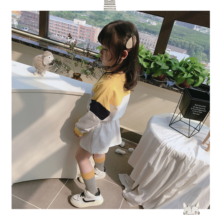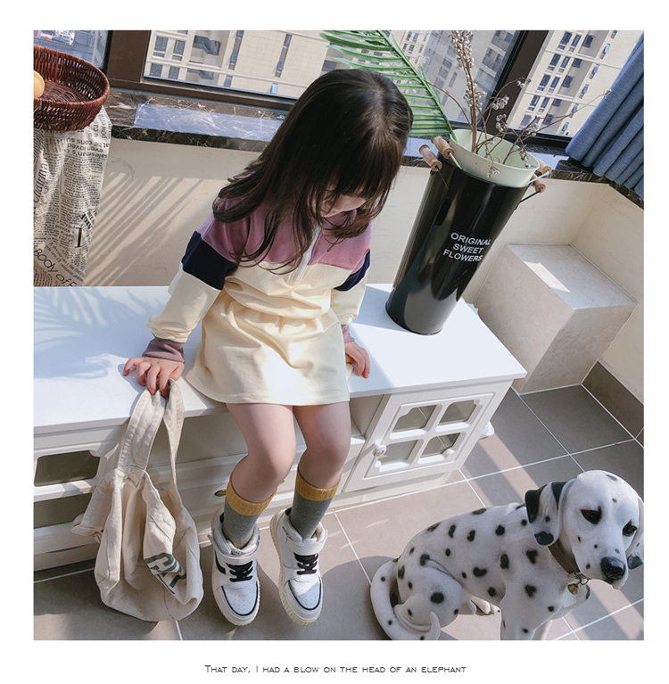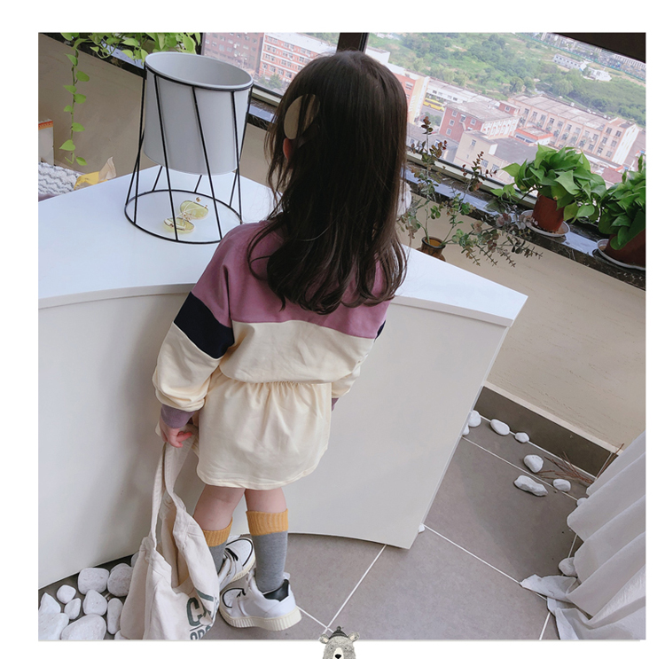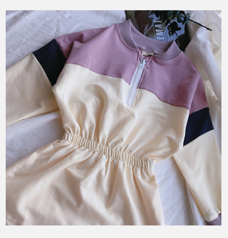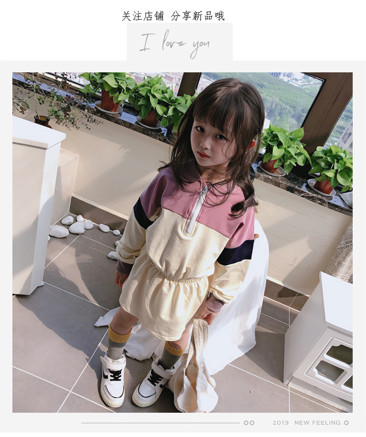 2019春秋季新款童裝 兒童長袖運動連衣裙 女童寶寶拼接撞色衛衣裙1入