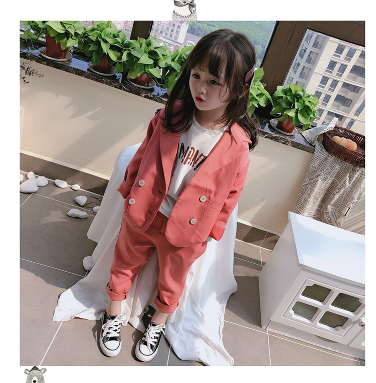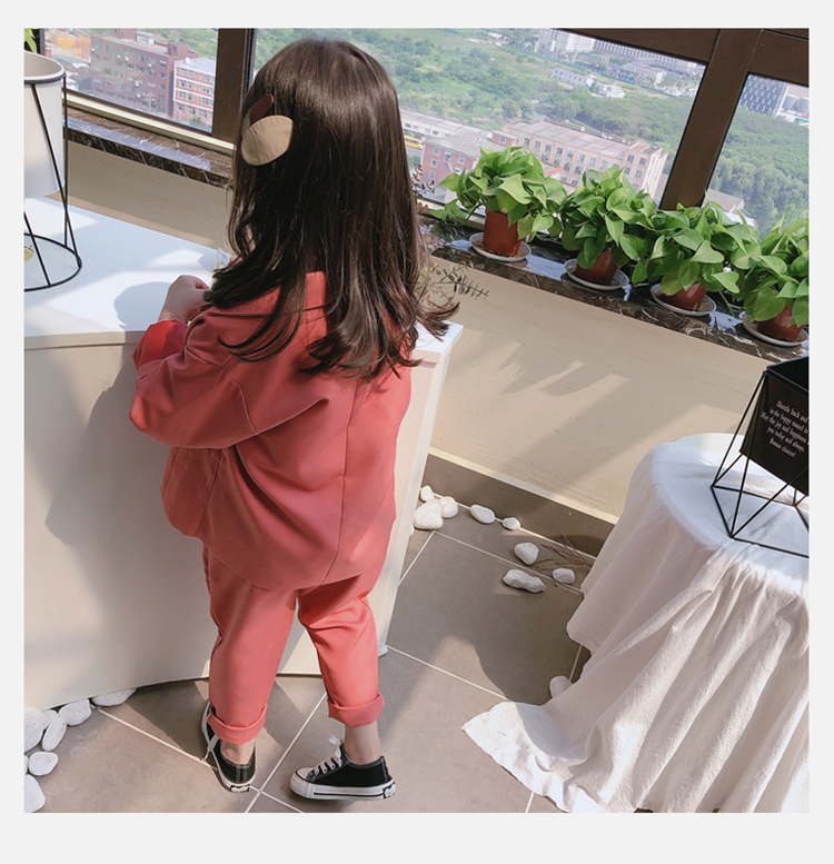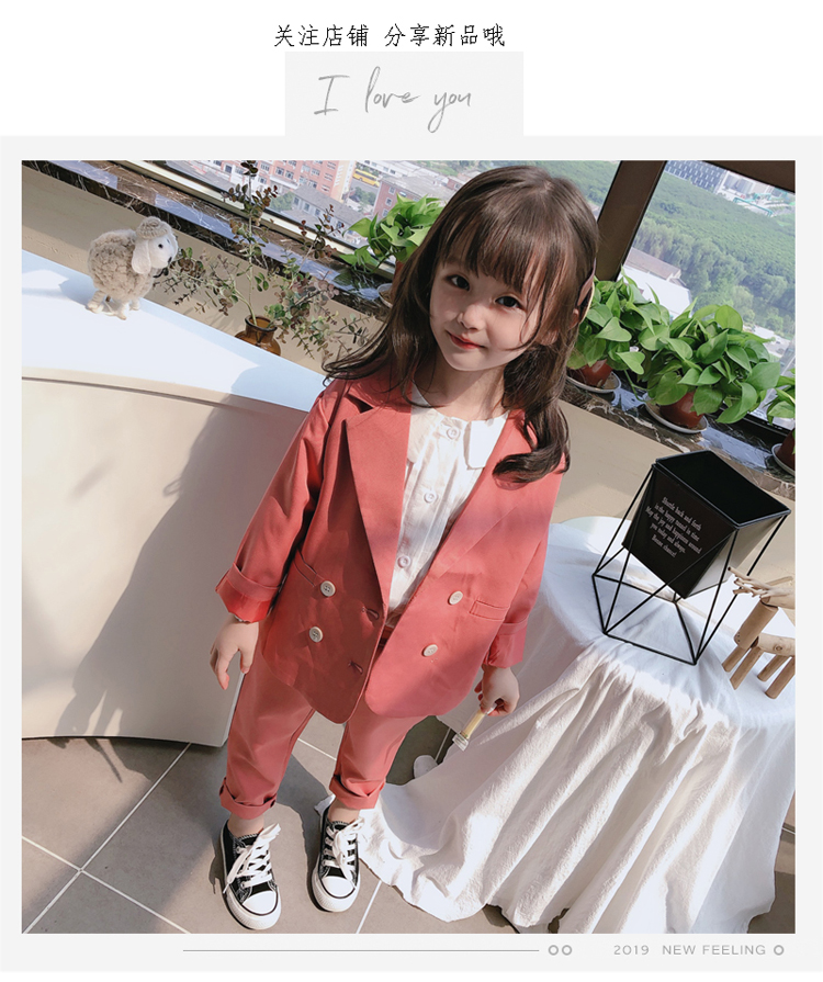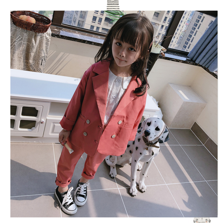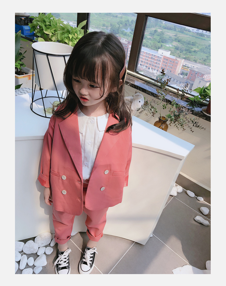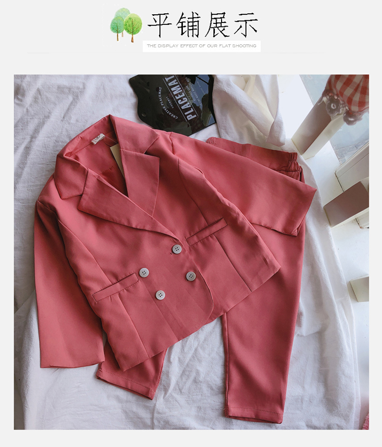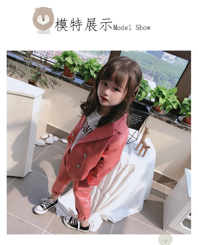 2019春秋季新款 中小童舒適翻領兒童西服兩件套 男女童寶寶套裝1入