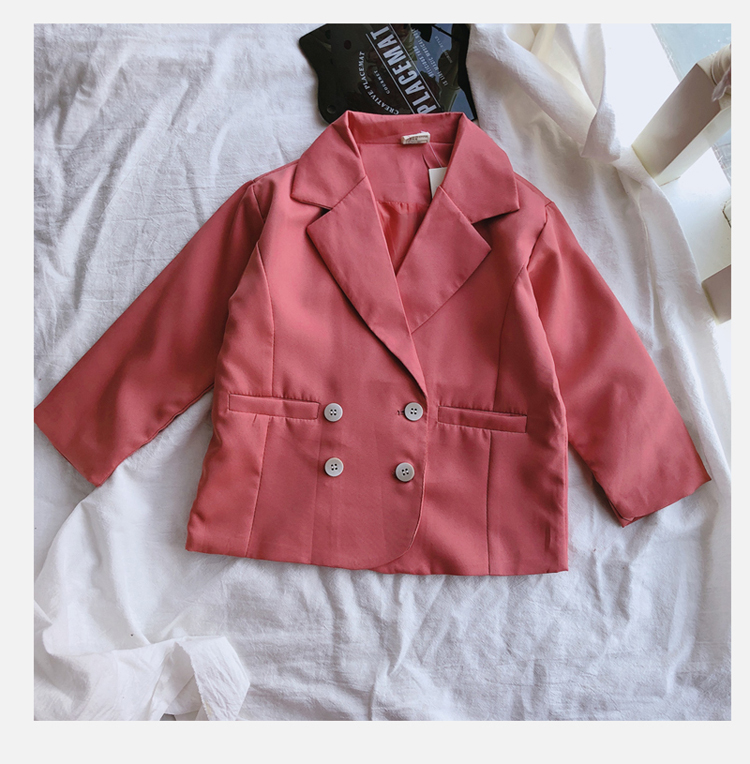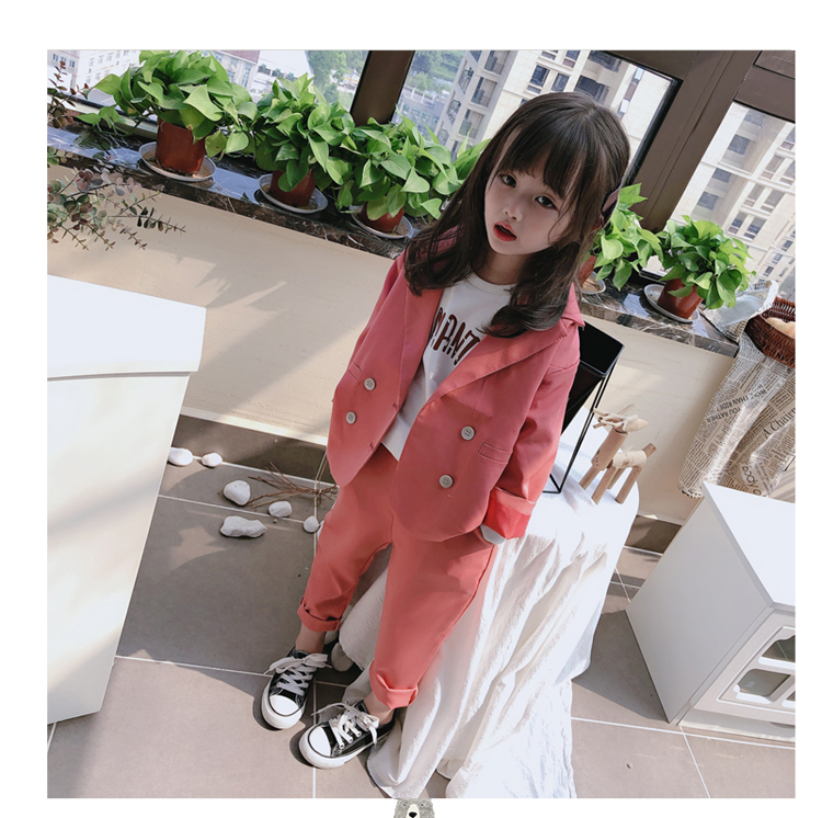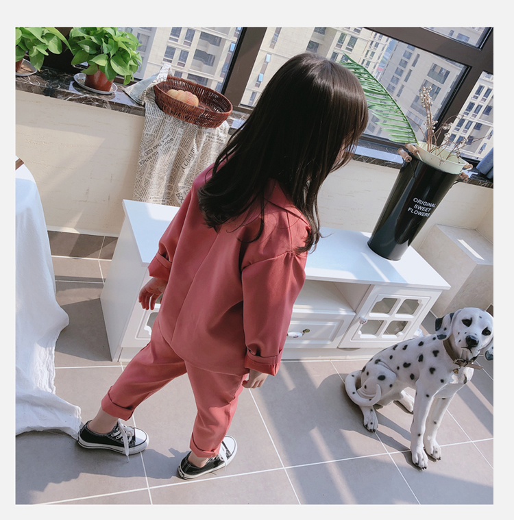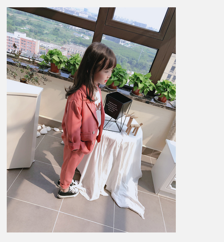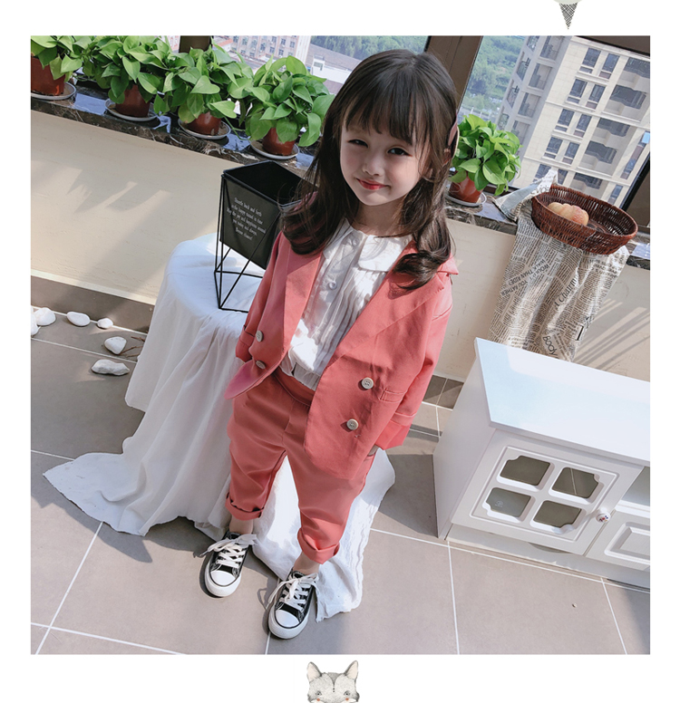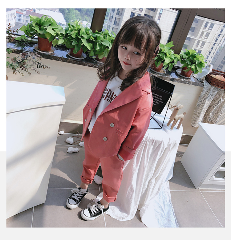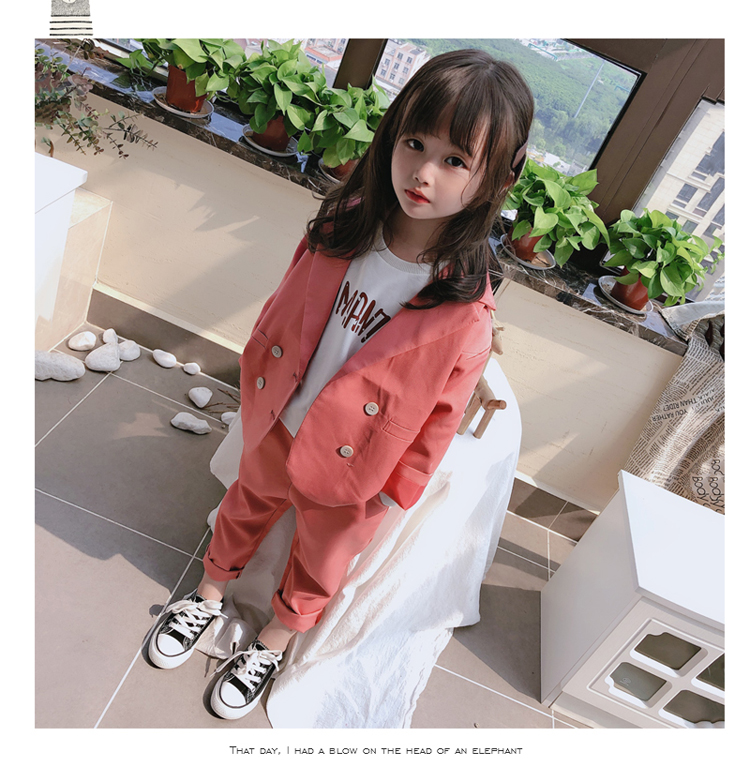 2019春秋季新款 中小童舒適翻領兒童西服兩件套 男女童寶寶套裝1入