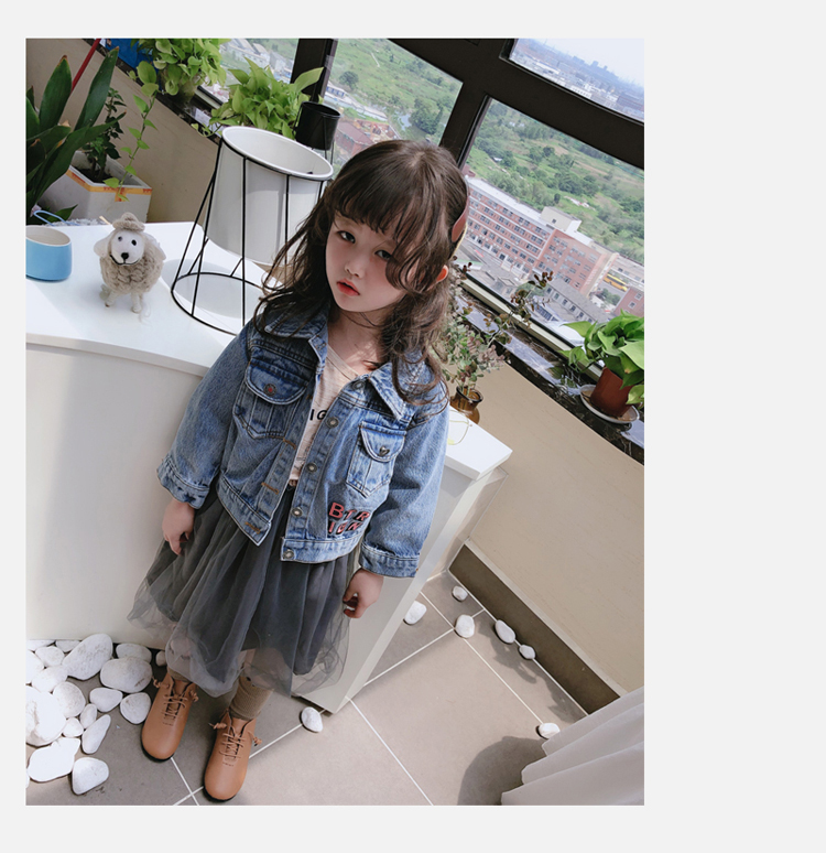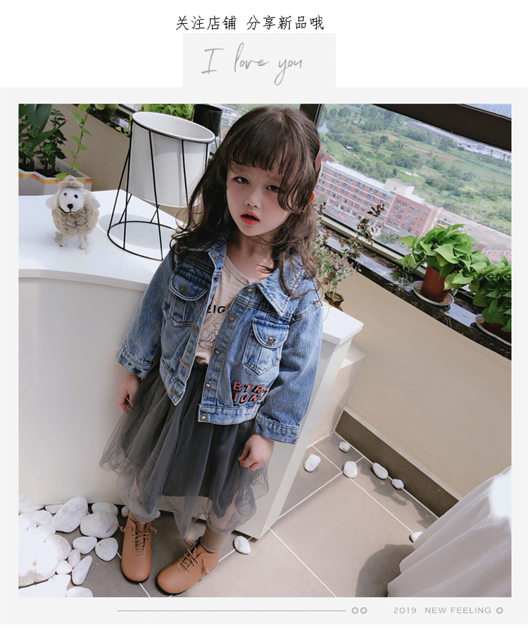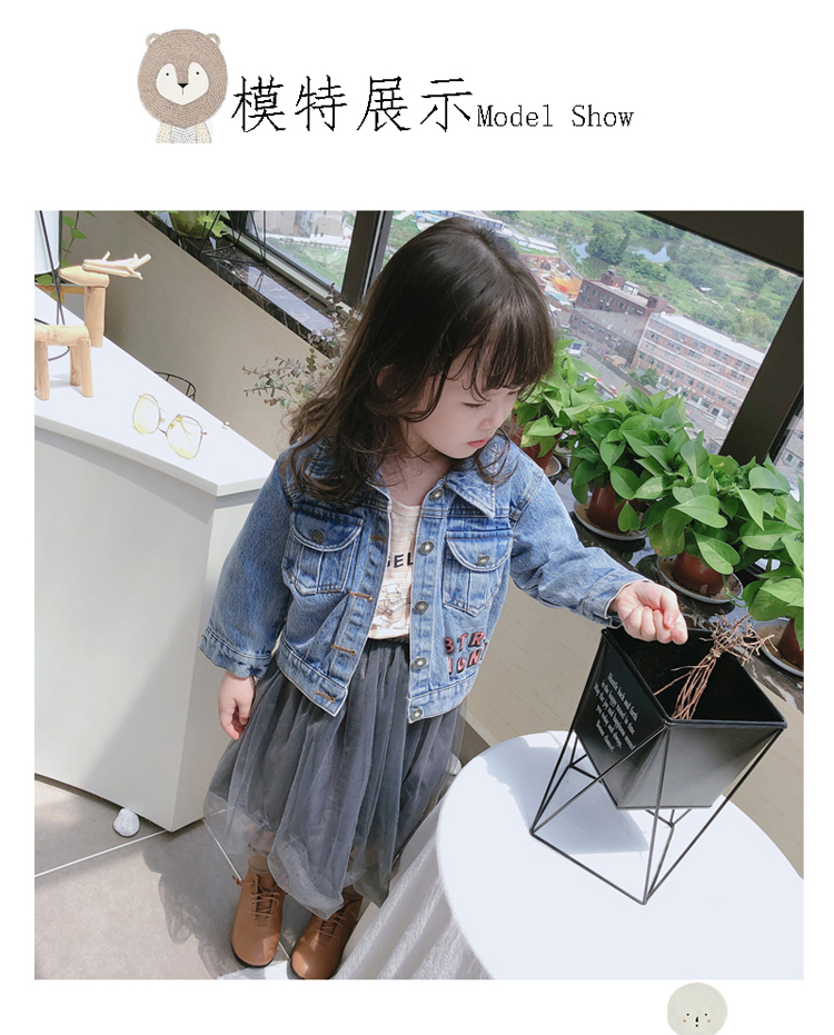 2019秋季新款童裝 中小女童寶寶牛仔外套 兒童帥氣字母開衫上衣1入