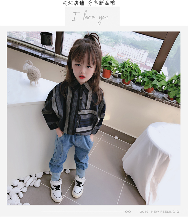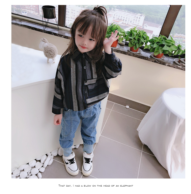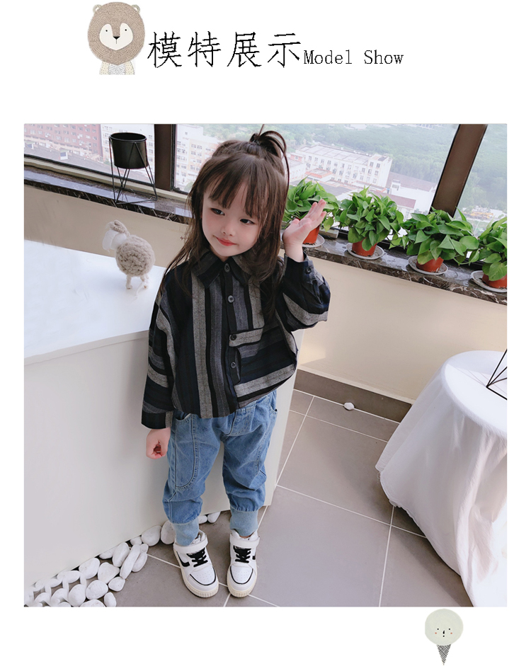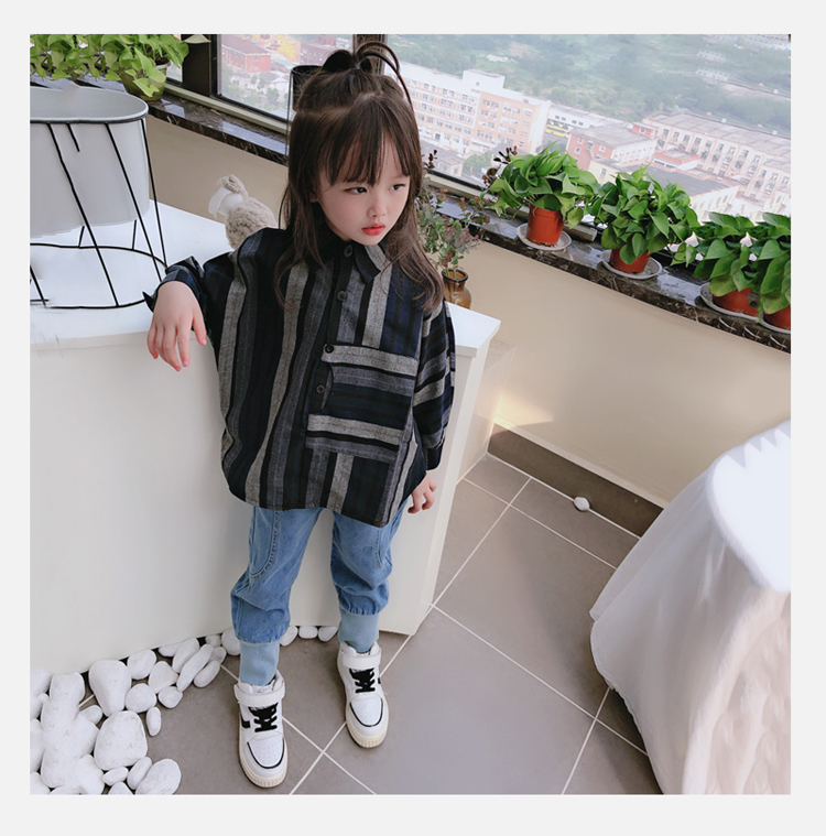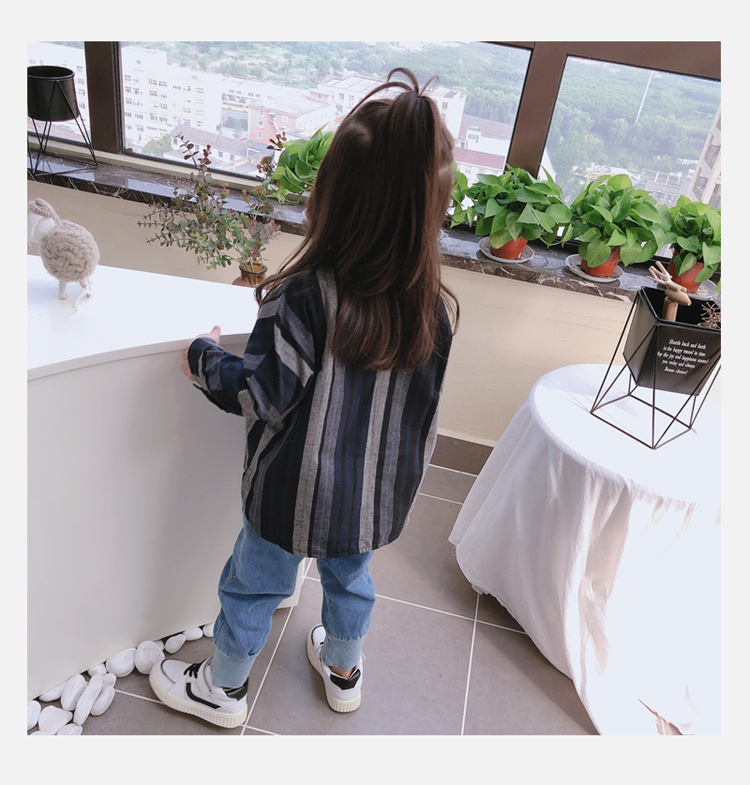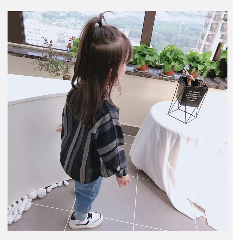 2019春秋季 中小童兒童蝙蝠袖襯衫 男女童寶寶舒適寬松條紋上衣1入