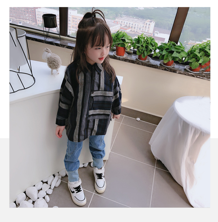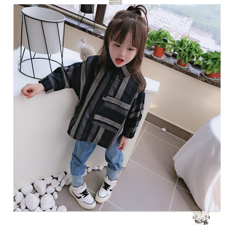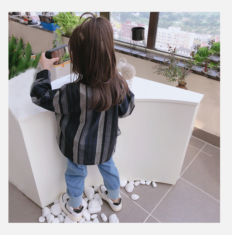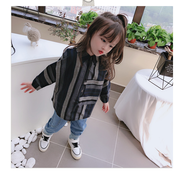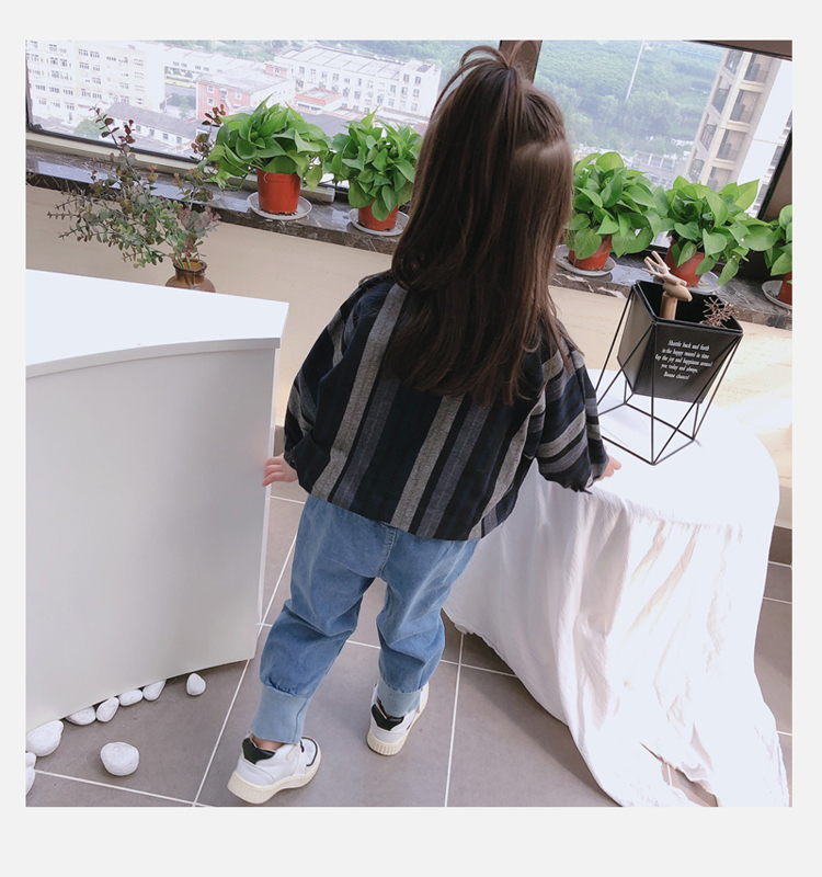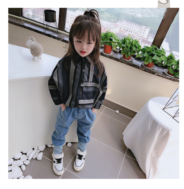 2019春秋季 中小童兒童蝙蝠袖襯衫 男女童寶寶舒適寬松條紋上衣1入