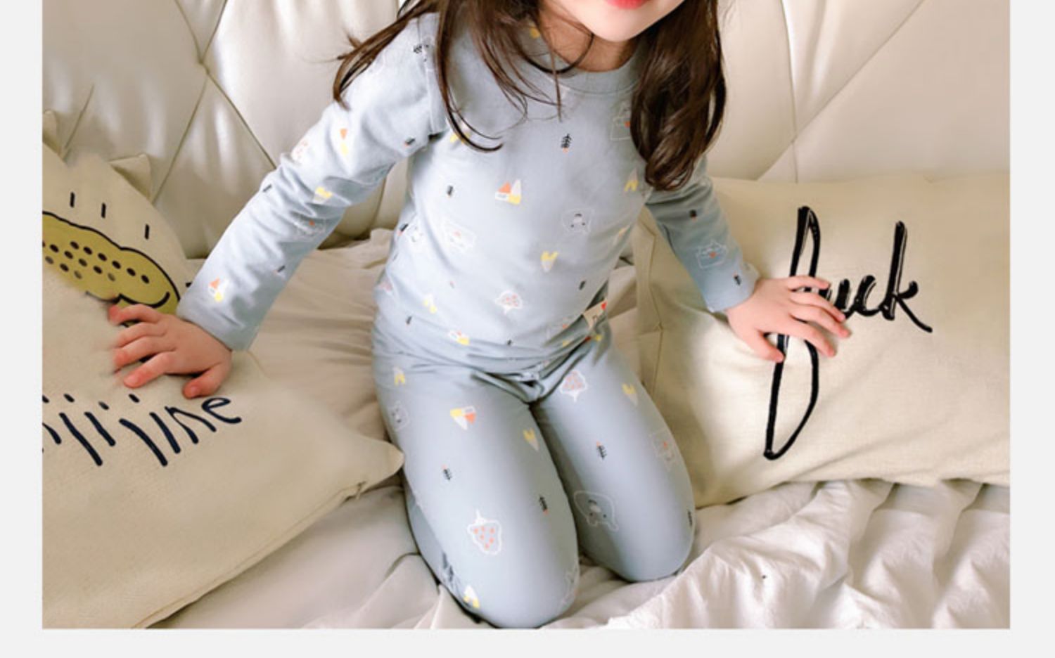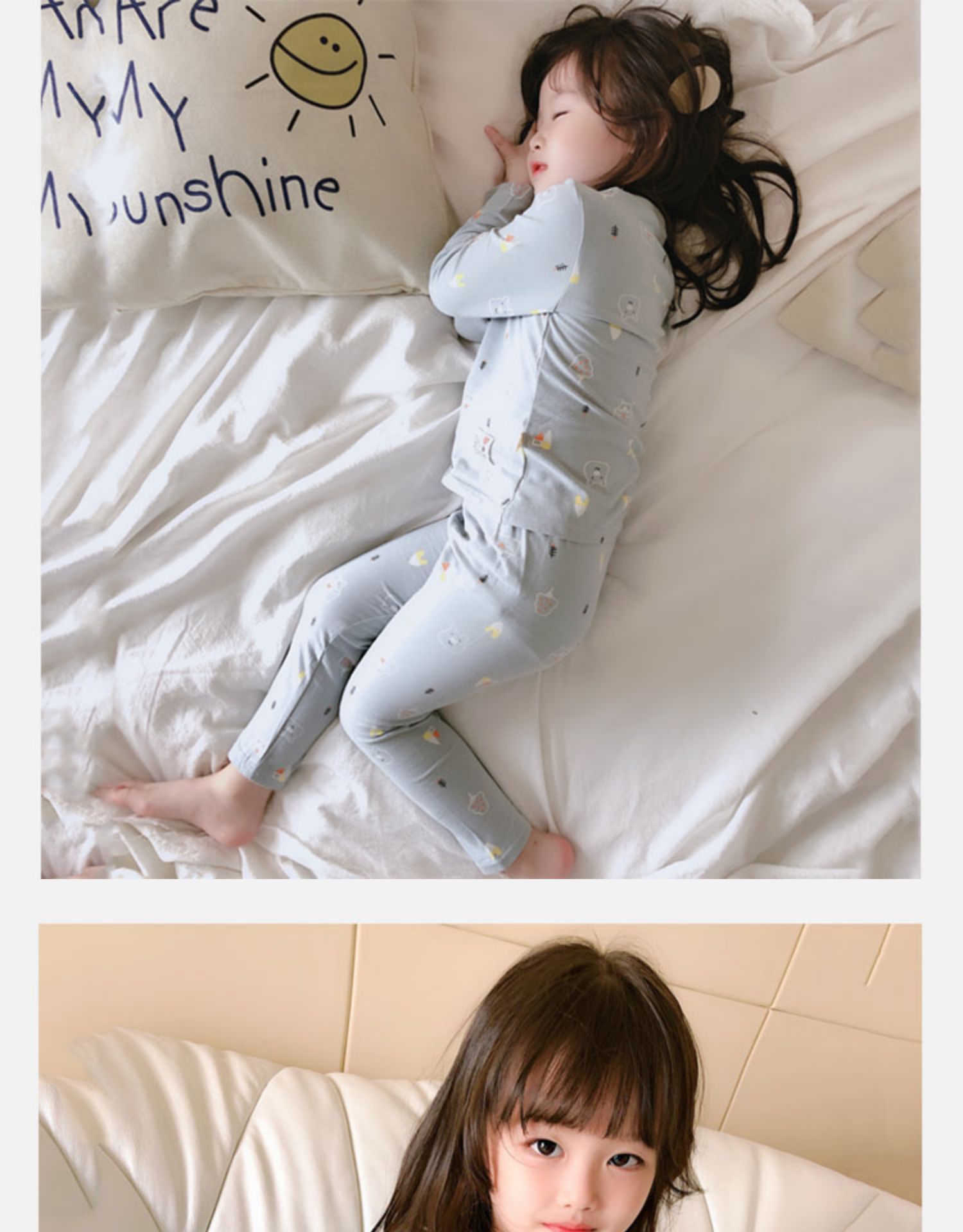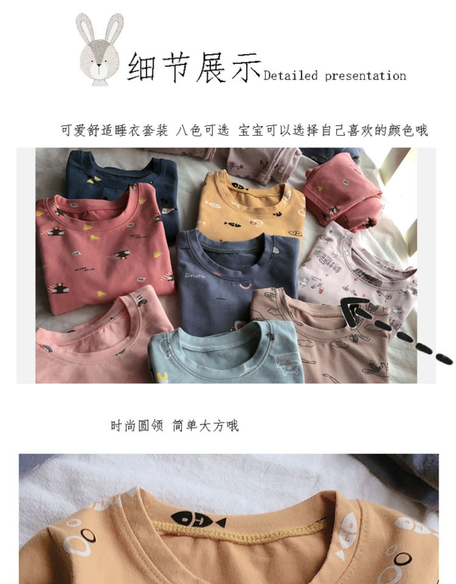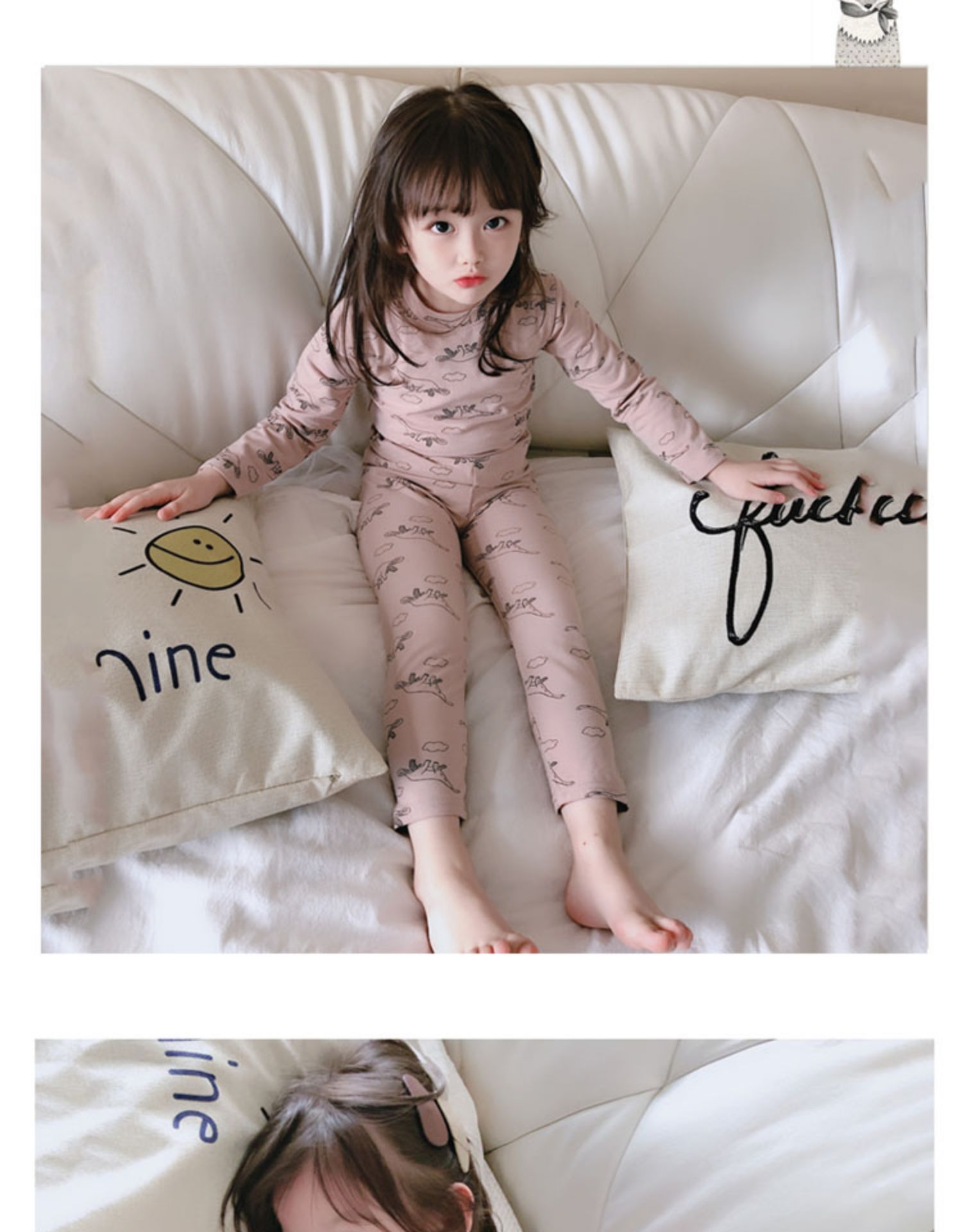 2019春秋新款 男女童圓領上衣+長褲兩件套 兒童卡通印花內衣套裝1入