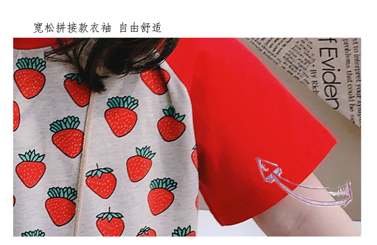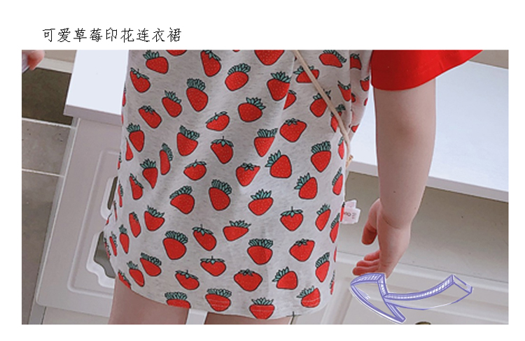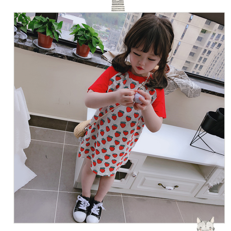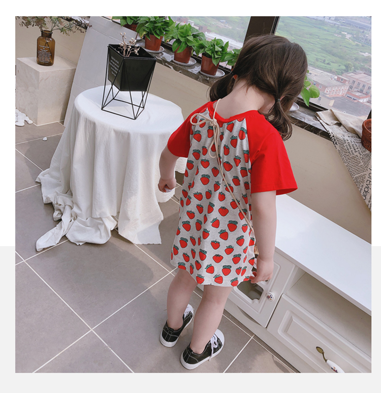 2019夏季童裝中小童草莓童裙 女童寶寶短袖T恤圓領撞色兒童連衣裙1入
