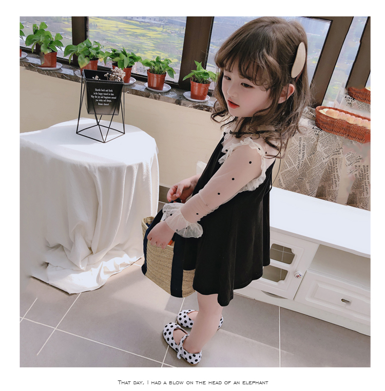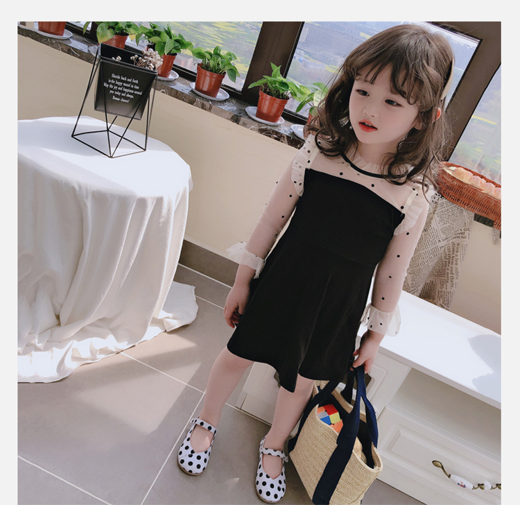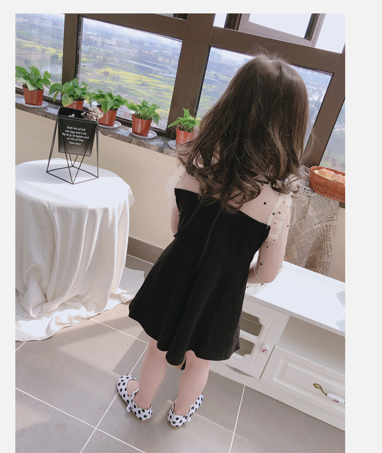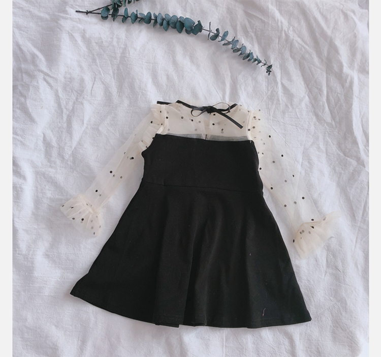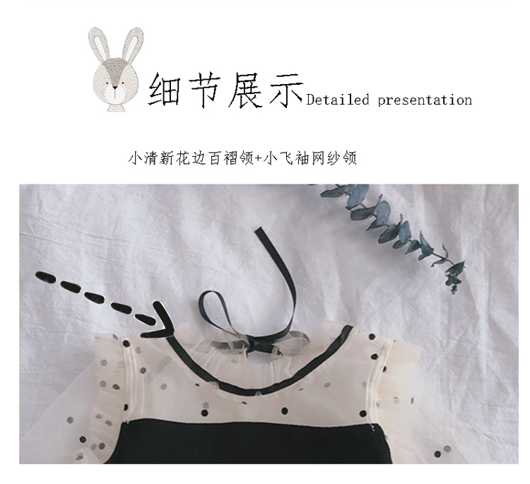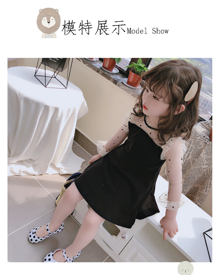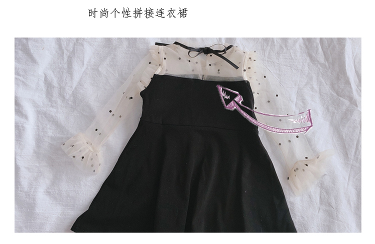 2019春夏季女童寶寶拼接款連衣裙 中小童小清新網紗花邊領裙子1入