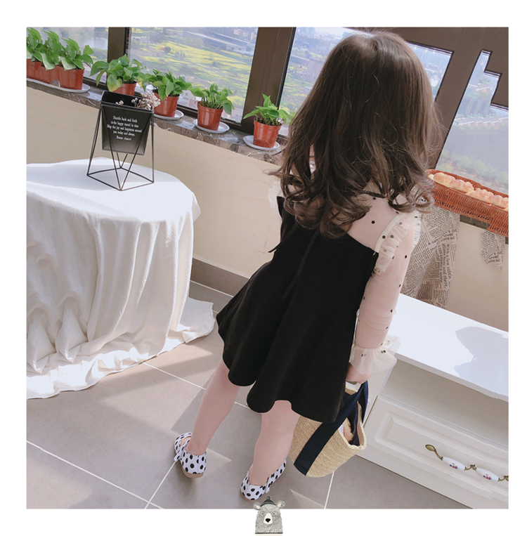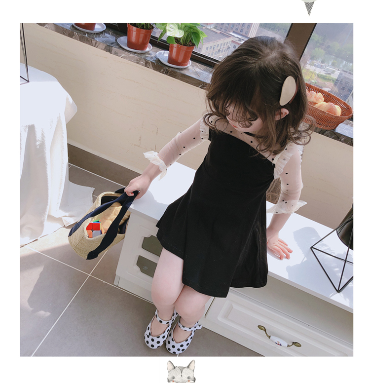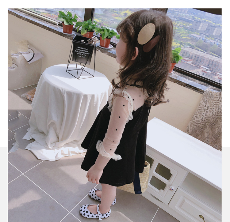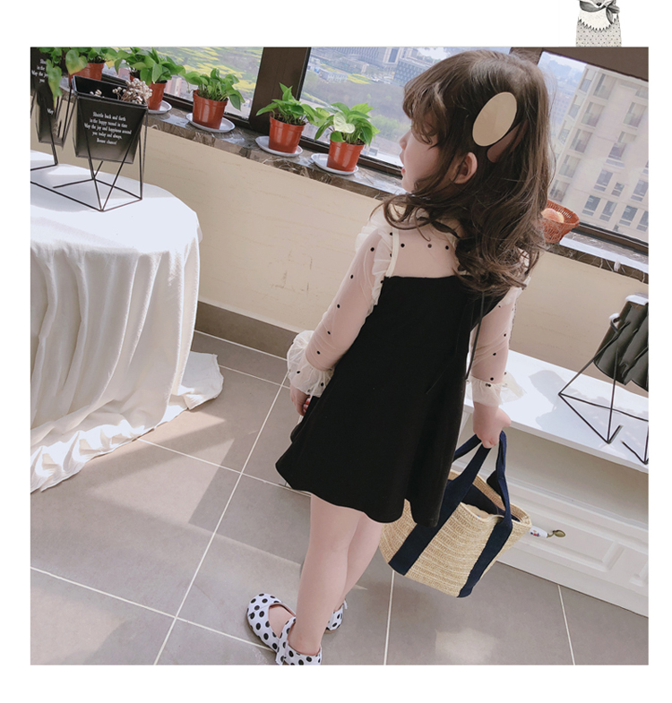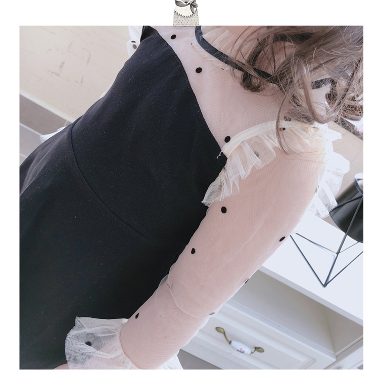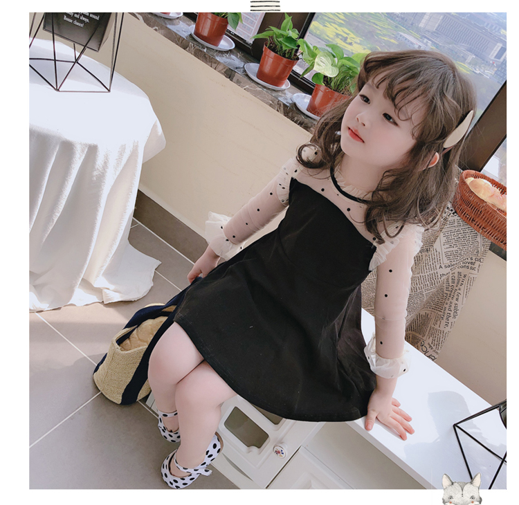 2019春夏季女童寶寶拼接款連衣裙 中小童小清新網紗花邊領裙子1入