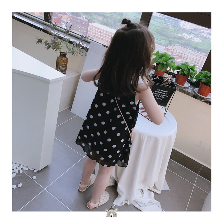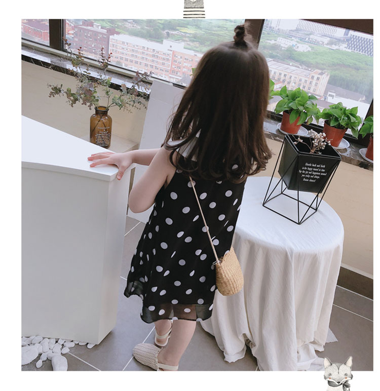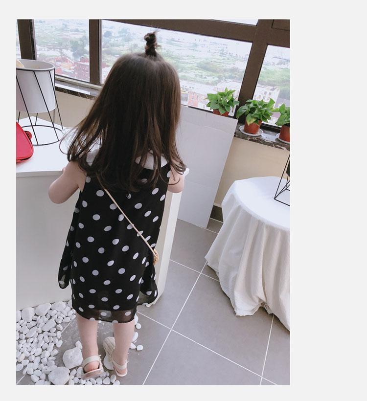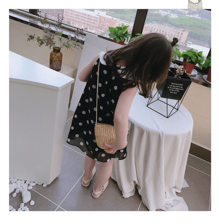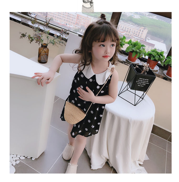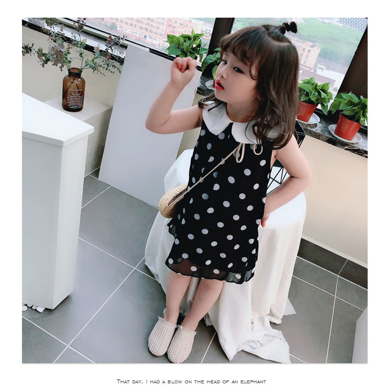 2019夏裝 中小童圓點兒童連衣裙 女童寶寶小清新娃娃領背心裙子1入