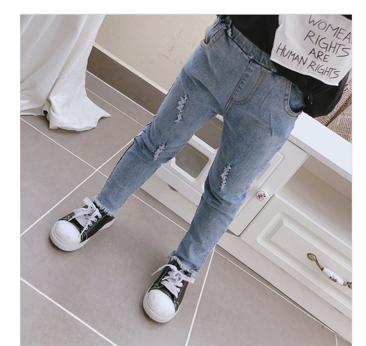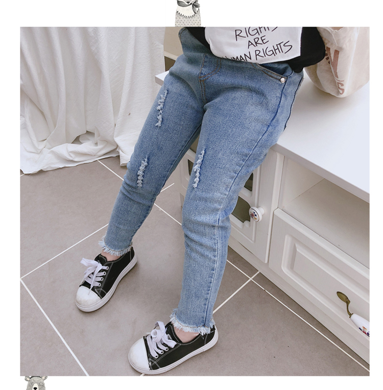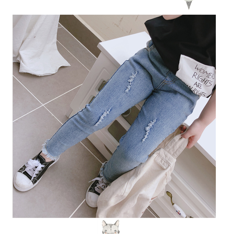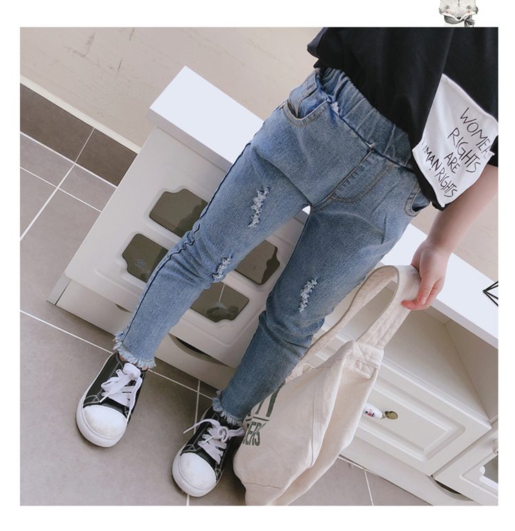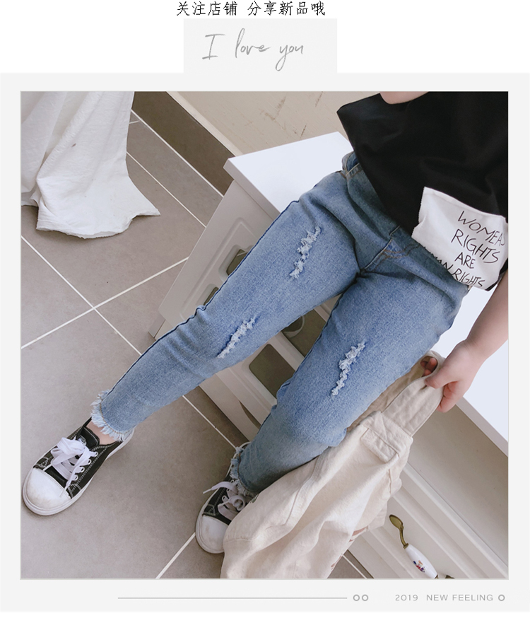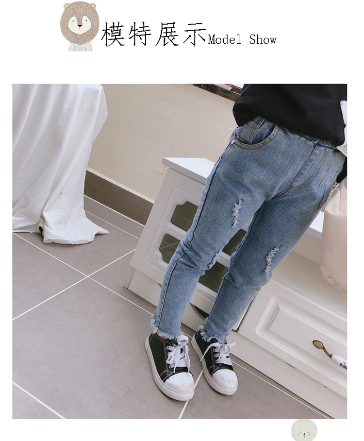 2019春秋季新款兒童修身牛仔褲 中小童破洞女童寶寶小腳牛仔褲 潮1入