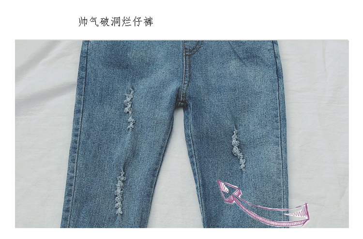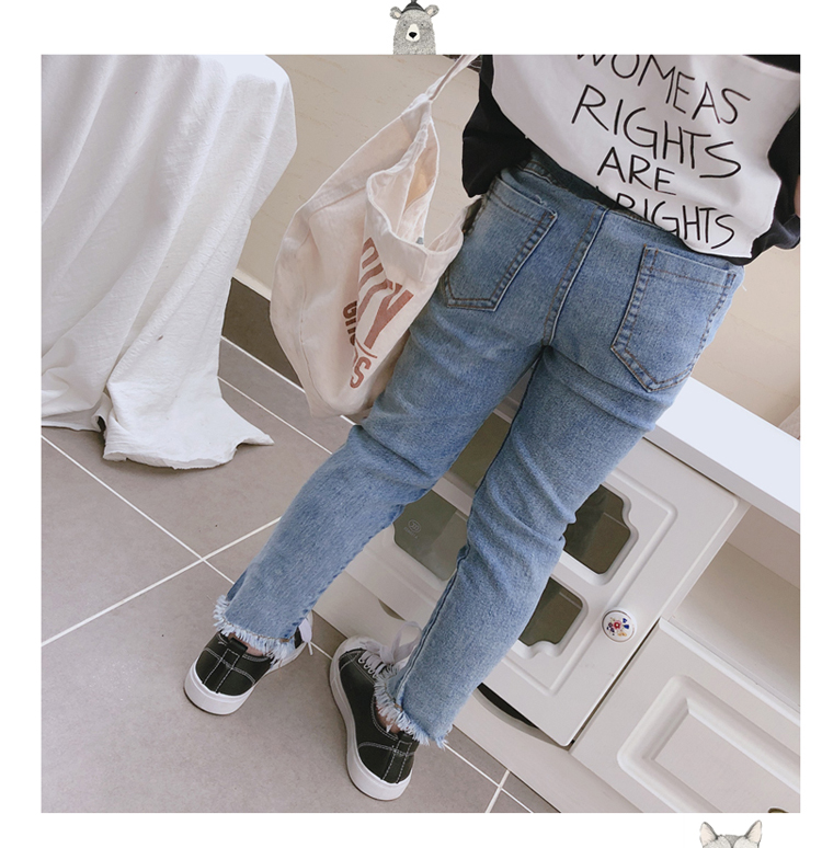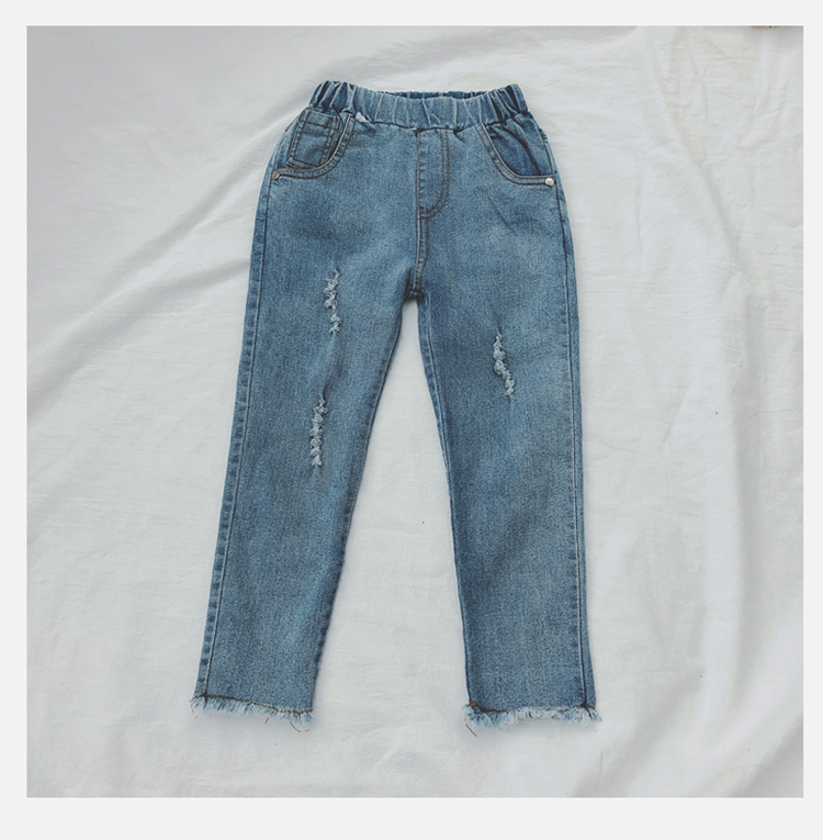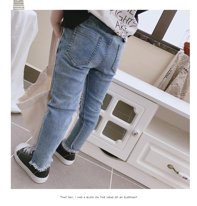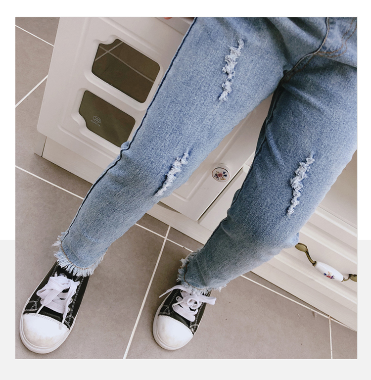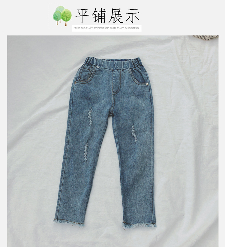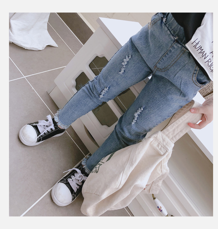 2019春秋季新款兒童修身牛仔褲 中小童破洞女童寶寶小腳牛仔褲 潮1入