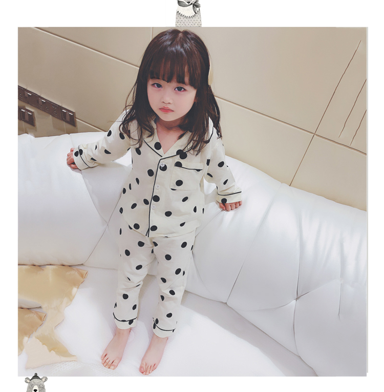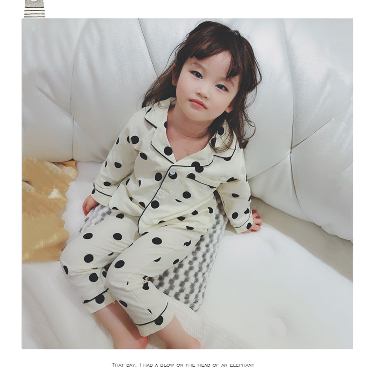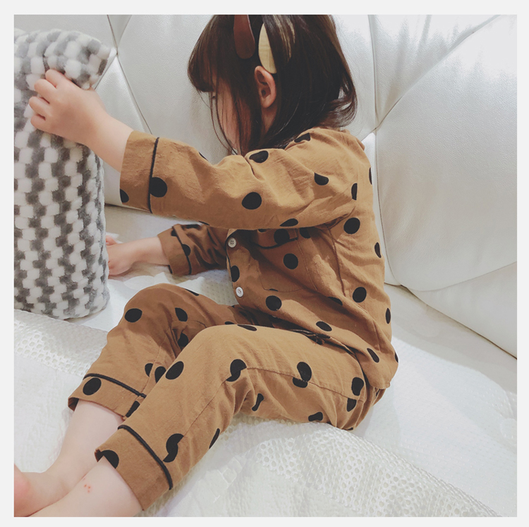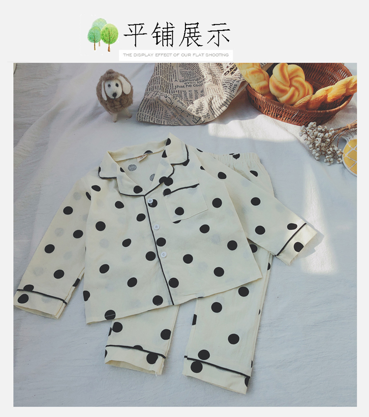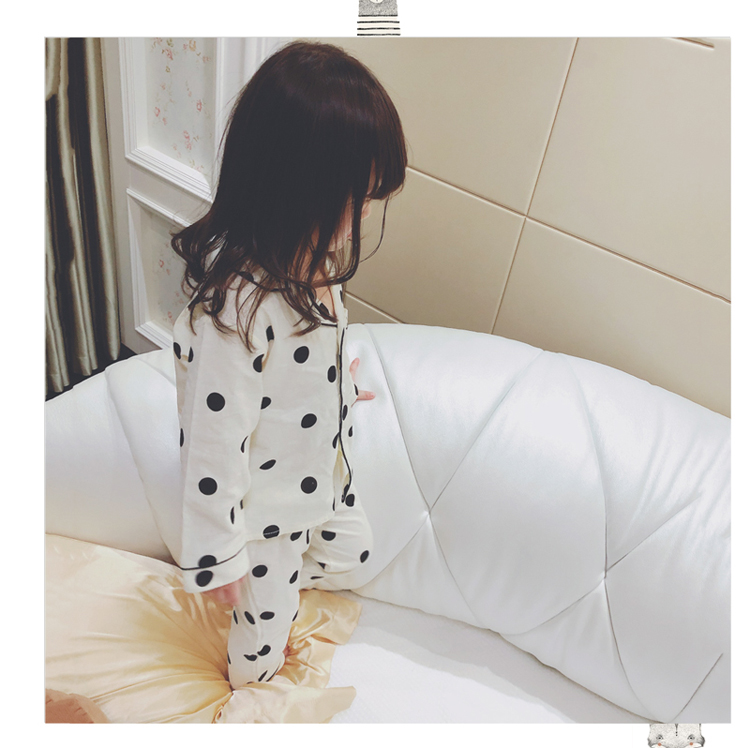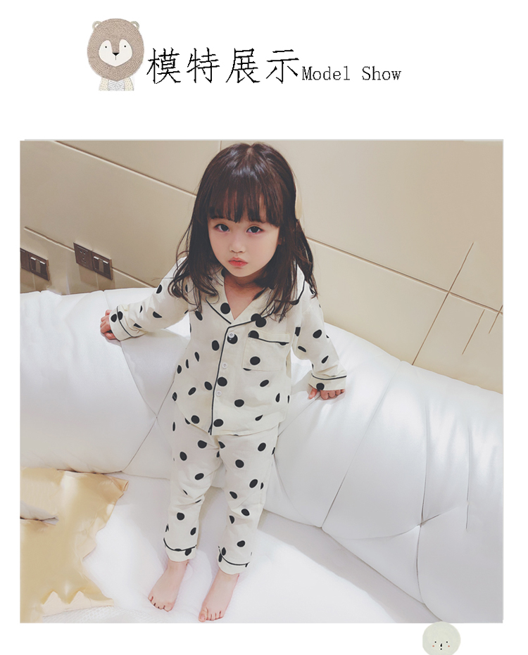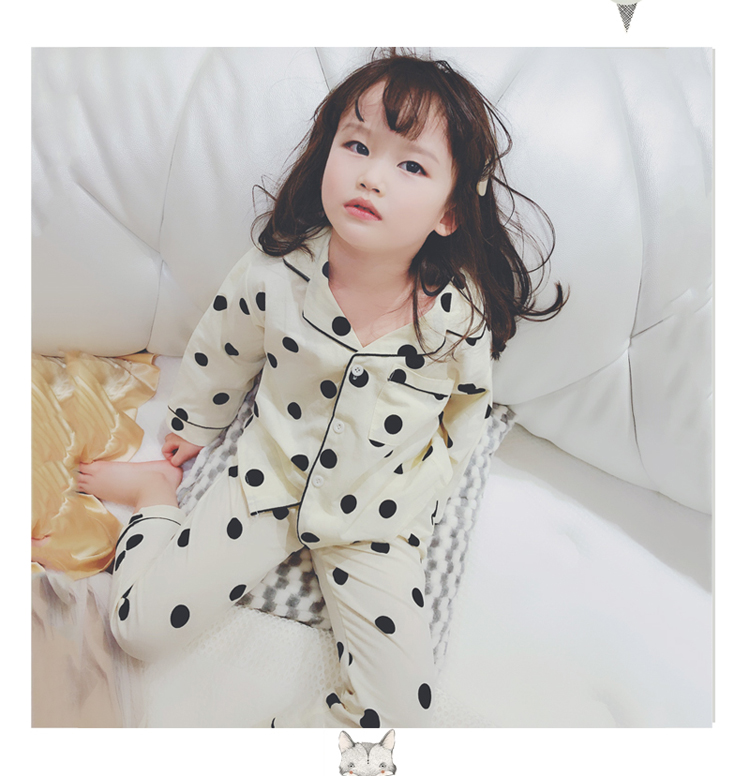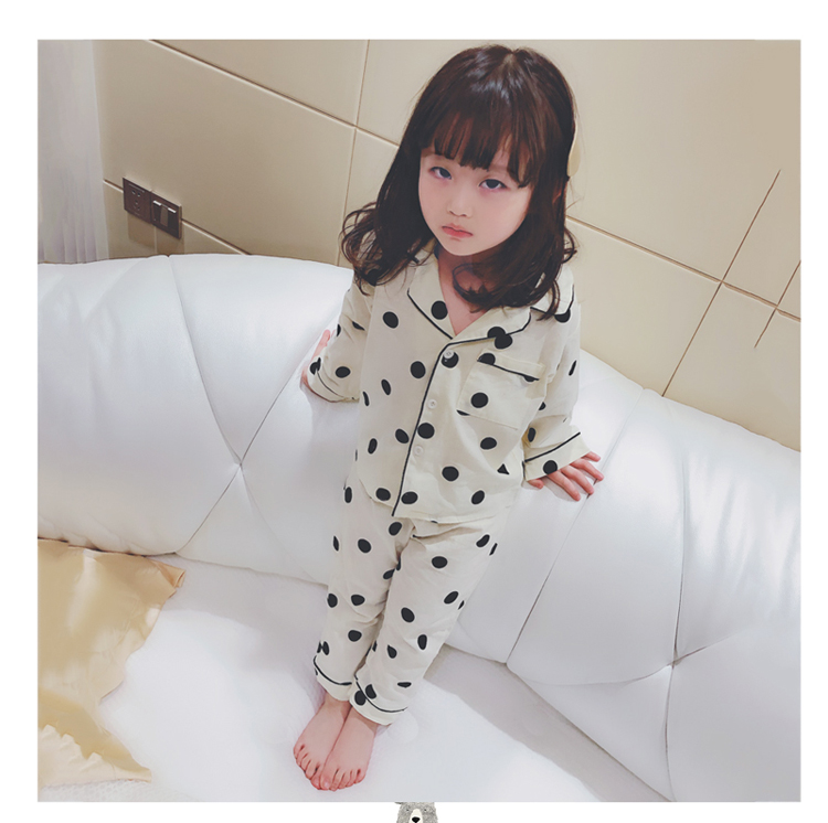 2019春秋季新款童裝 兒童純棉圓點中小女童家居服寶寶睡衣套裝1入