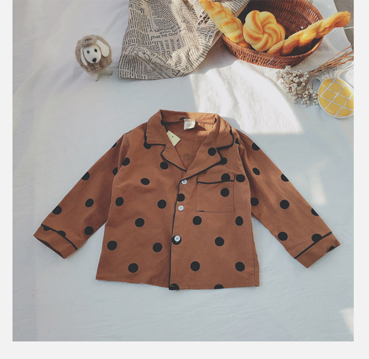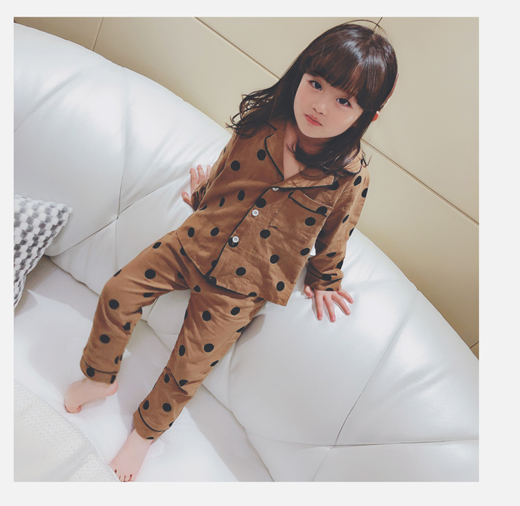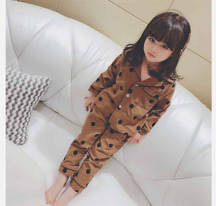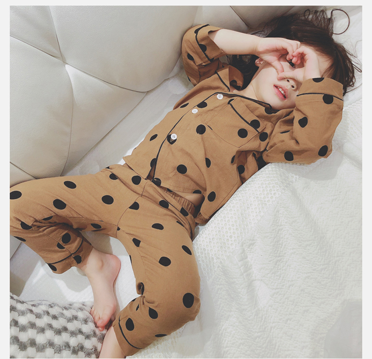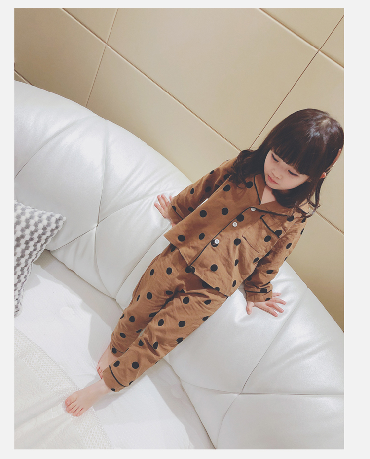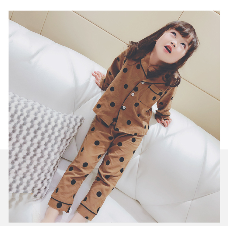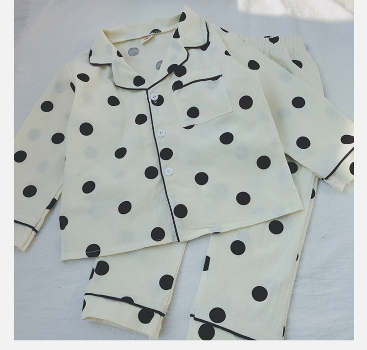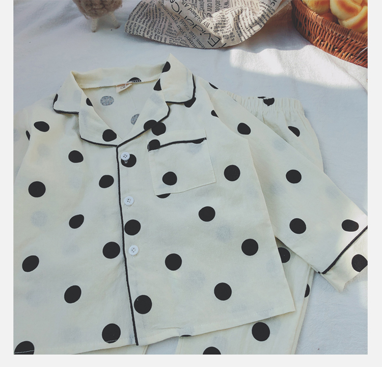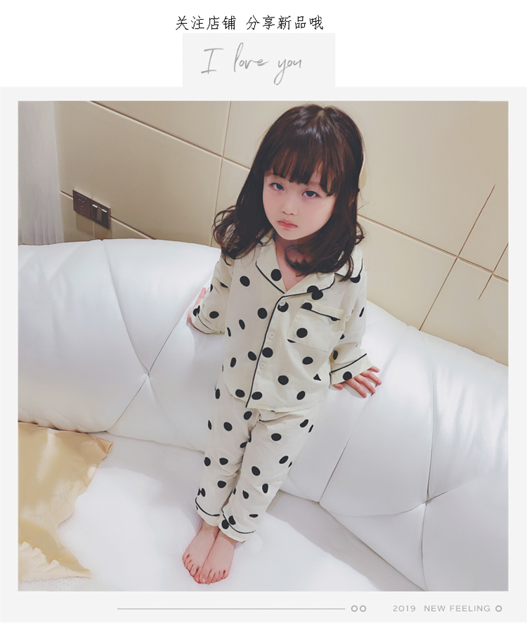 2019春秋季新款童裝 兒童純棉圓點中小女童家居服寶寶睡衣套裝1入