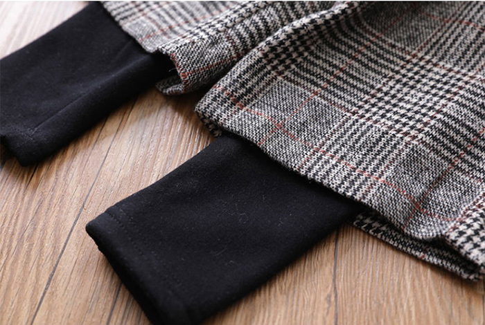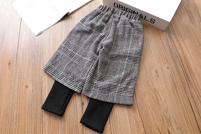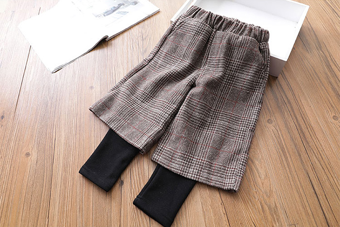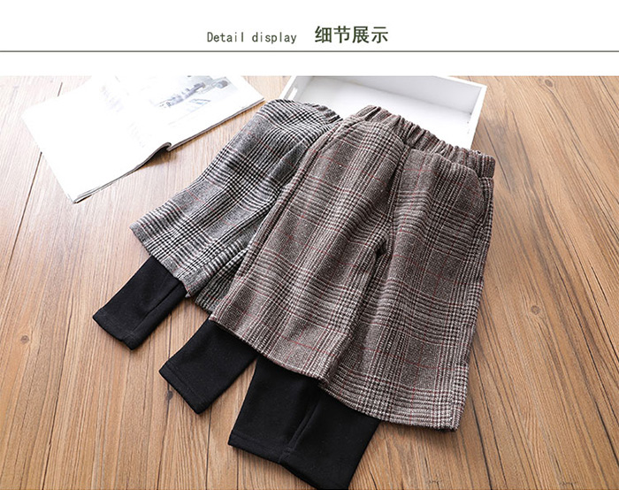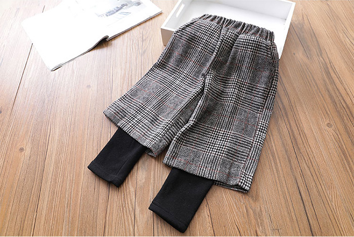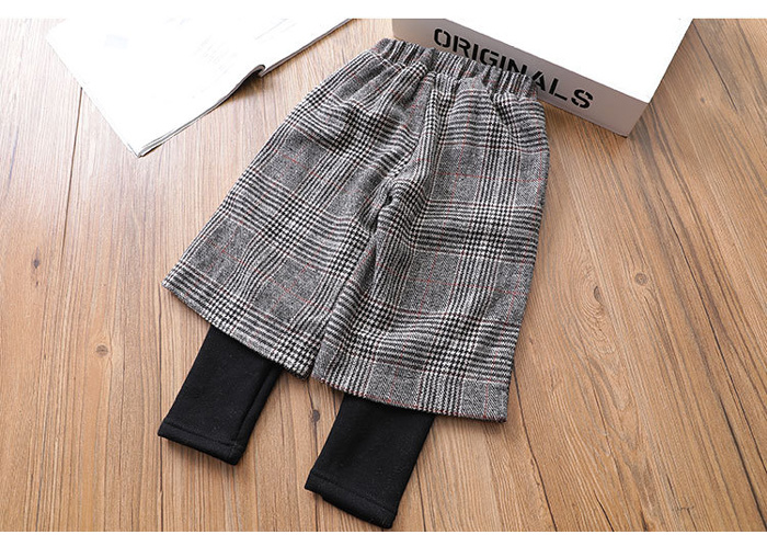 2018新款假兩件加厚打底褲兒童長褲 冬童裝格子女童加絨闊腿褲1入
