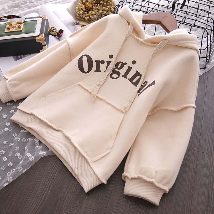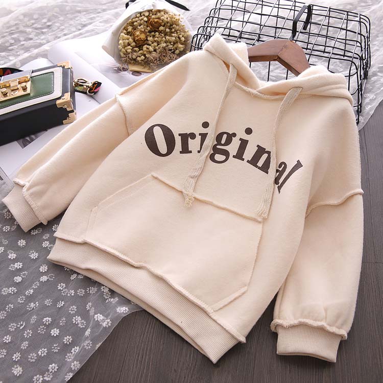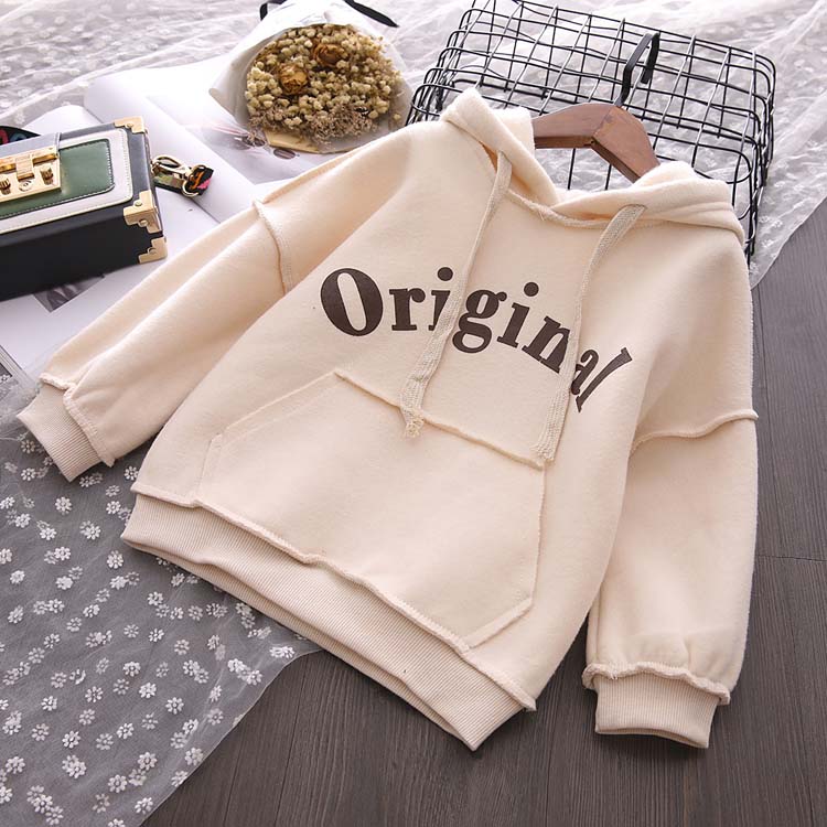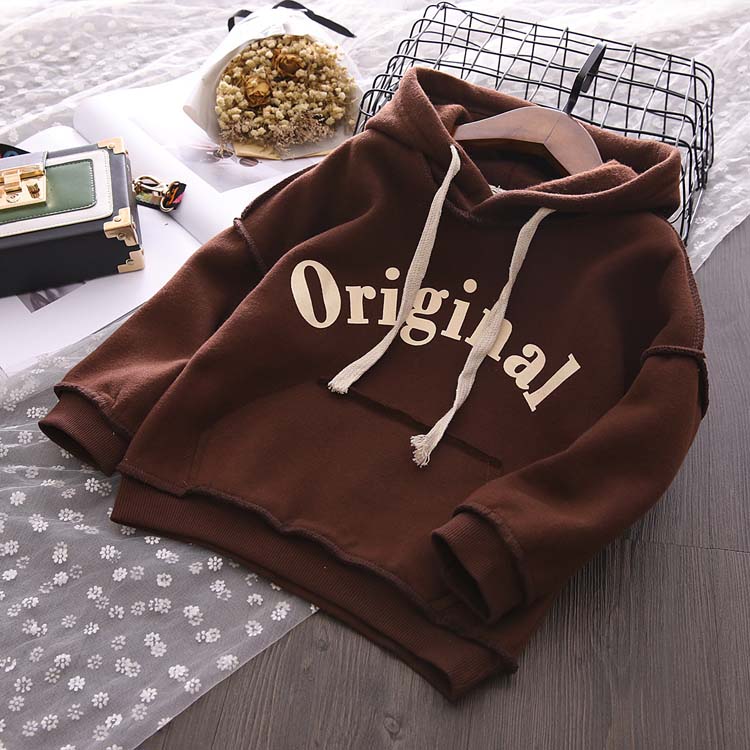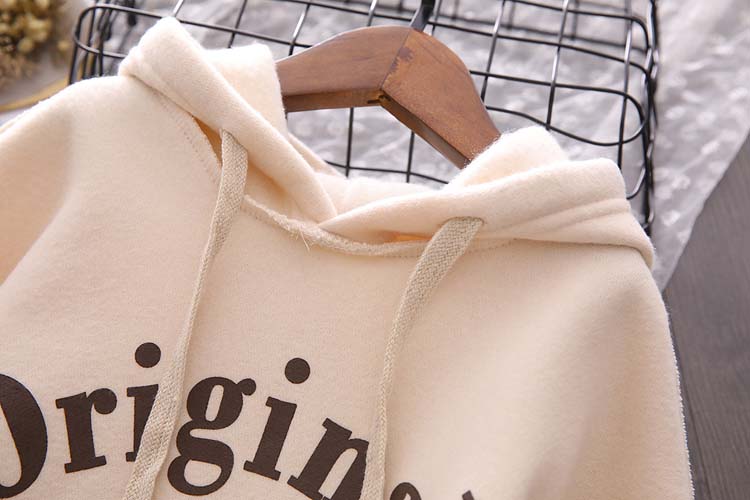 雙層加絨加厚男女童寶寶衛衣 2019兒童冬季新品長袖連帽字母上衣1入