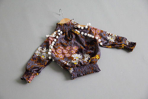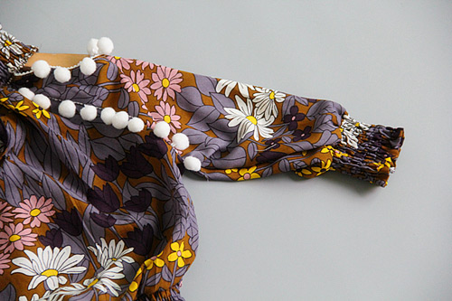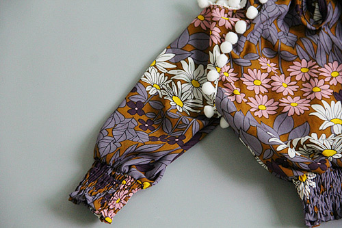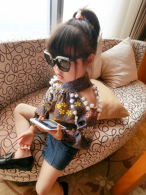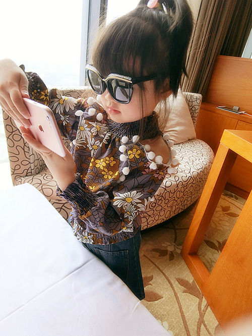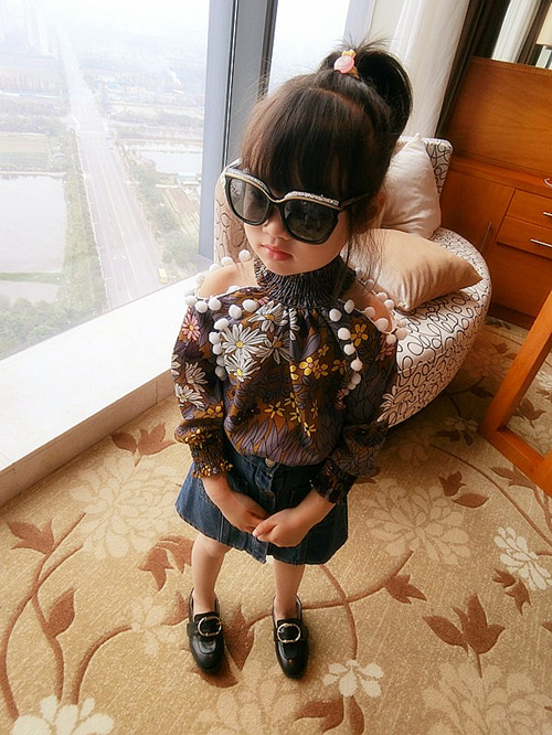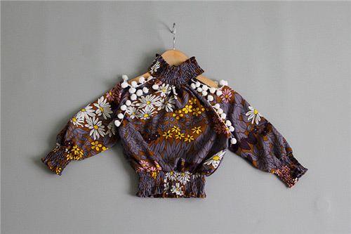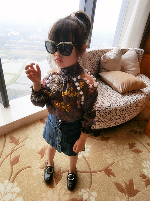2019春秋裝女童寶寶復古調碎花落肩燈籠袖雪紡兒童上衣1入
