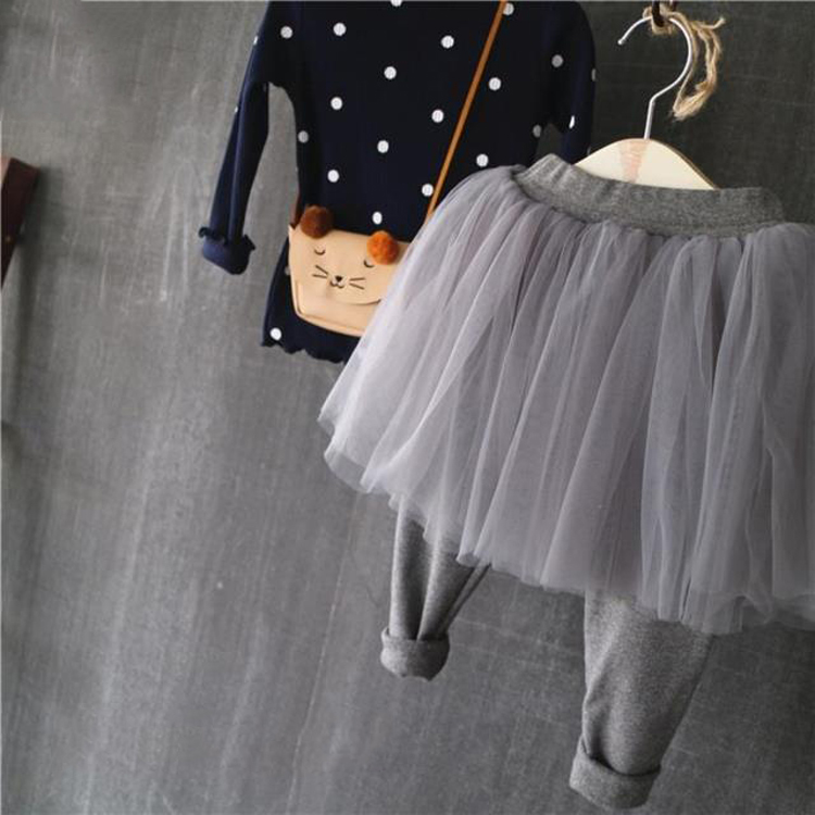 2019春秋季新款韓版童裝女童網紗打底褲長褲女孩假兩件兒童裙褲1入