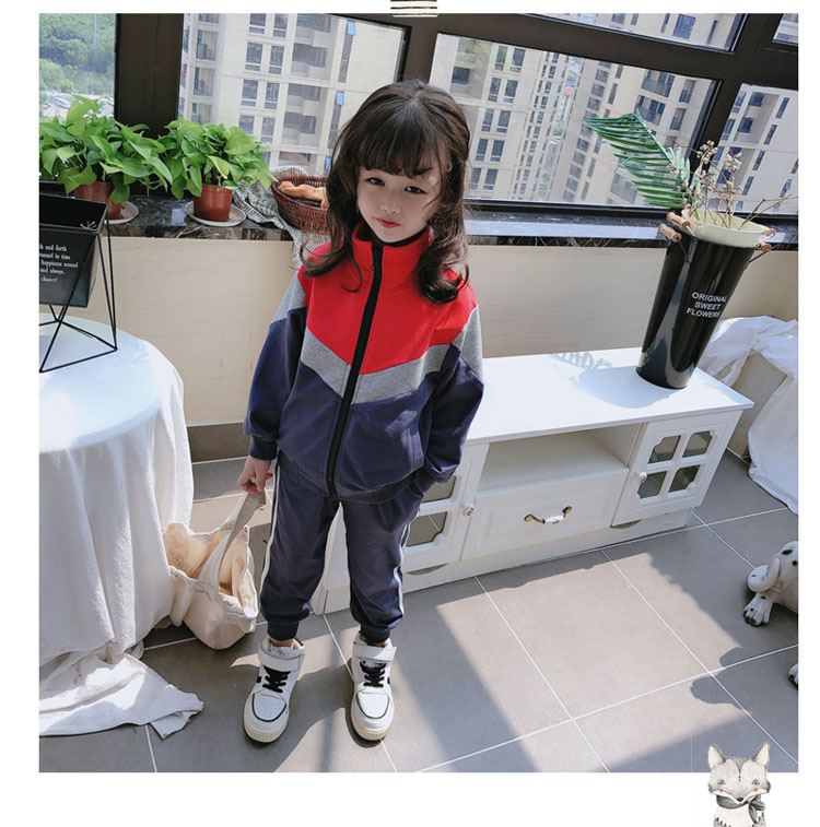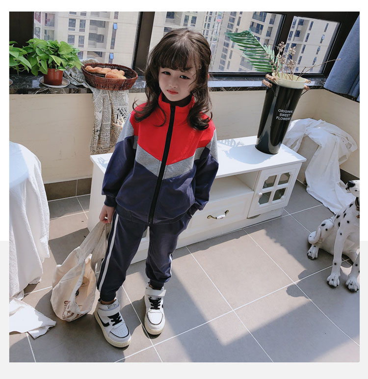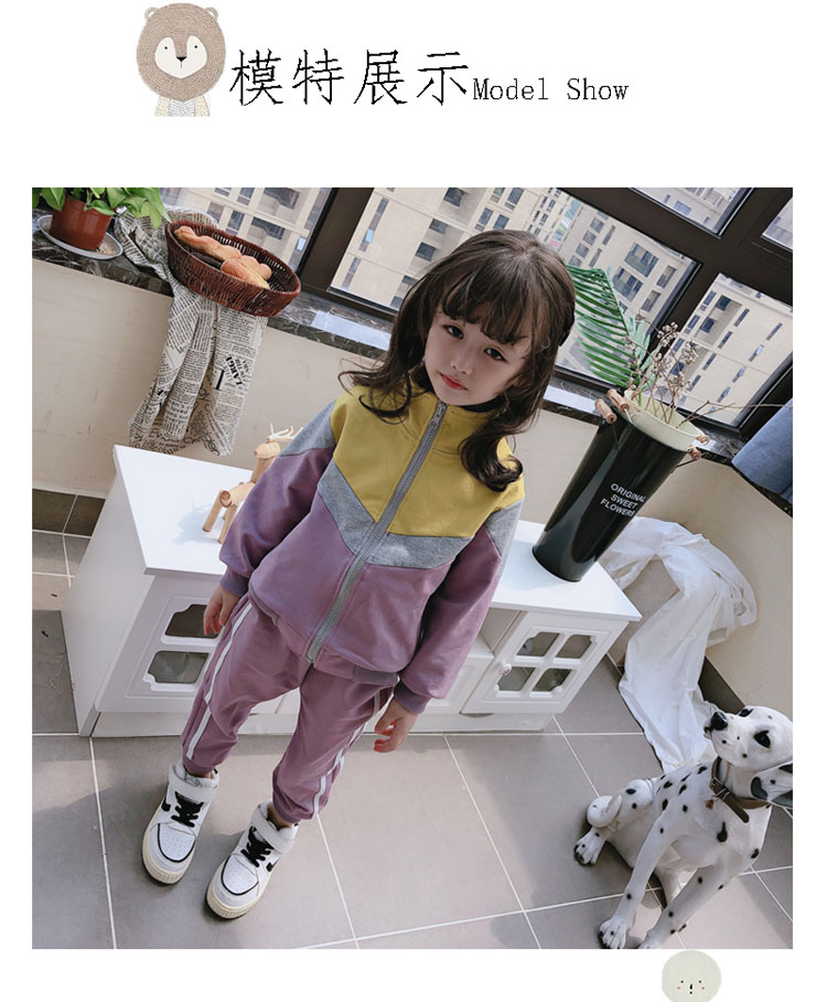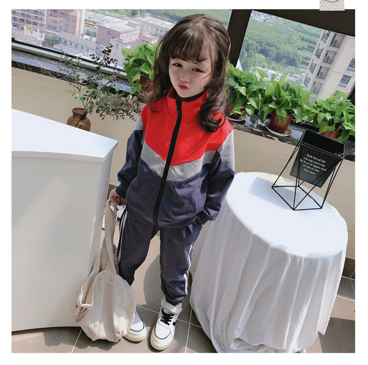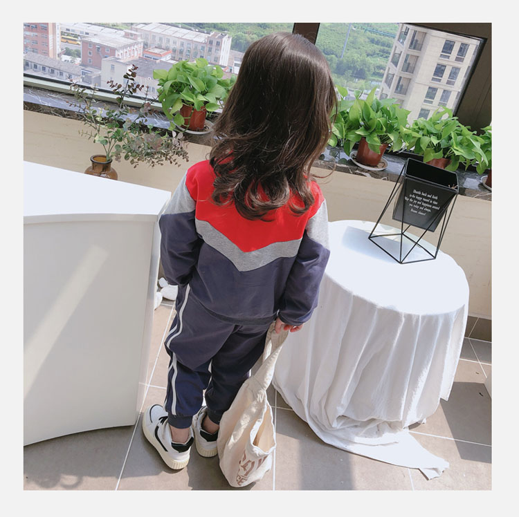 2019春秋季新款 運動風舒適套裝 男女童帥氣撞色上衣外套+休閑褲1入