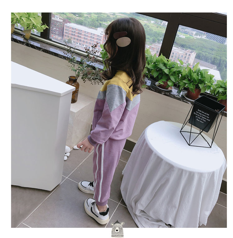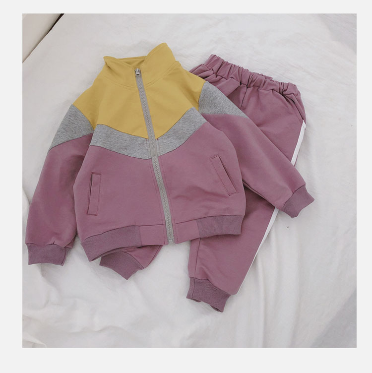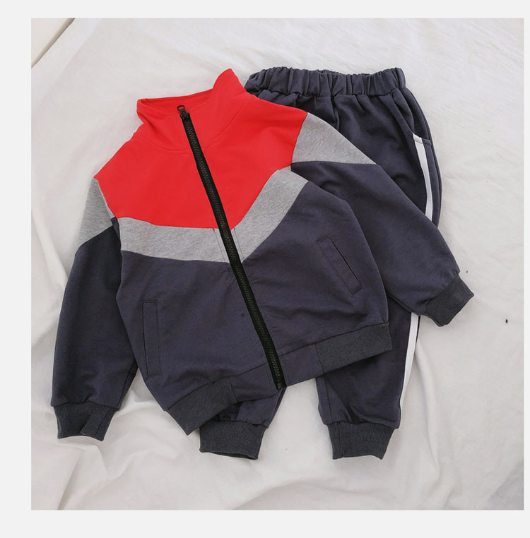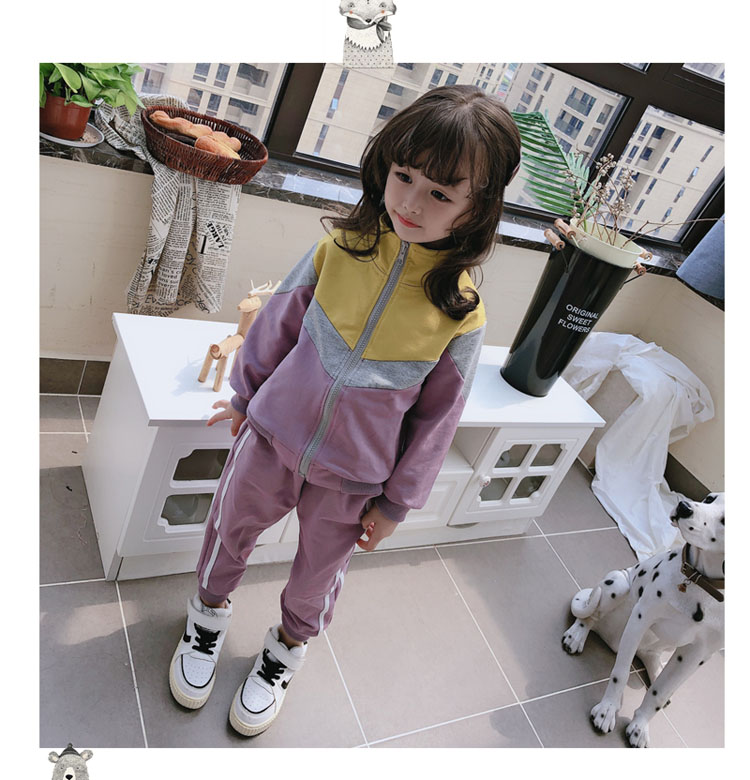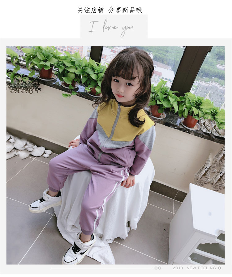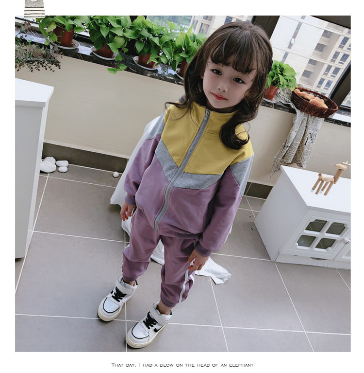 2019春秋季新款 運動風舒適套裝 男女童帥氣撞色上衣外套+休閑褲1入