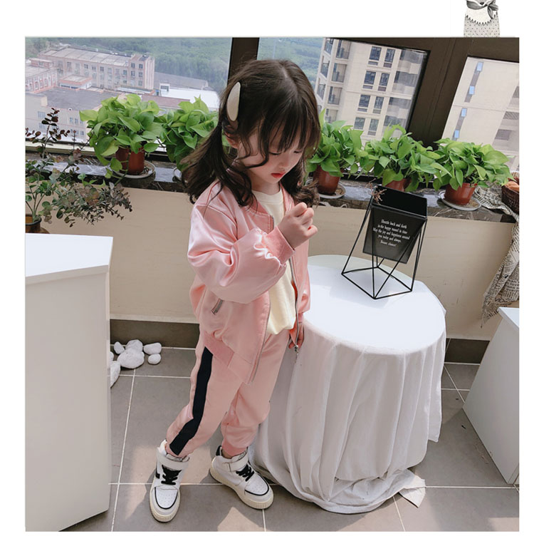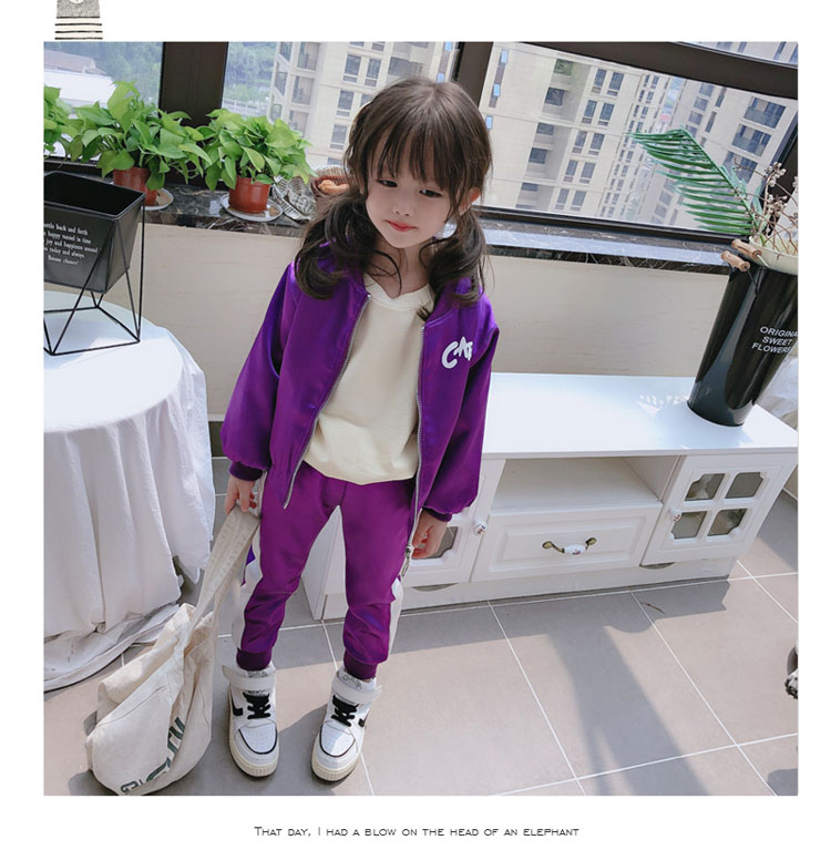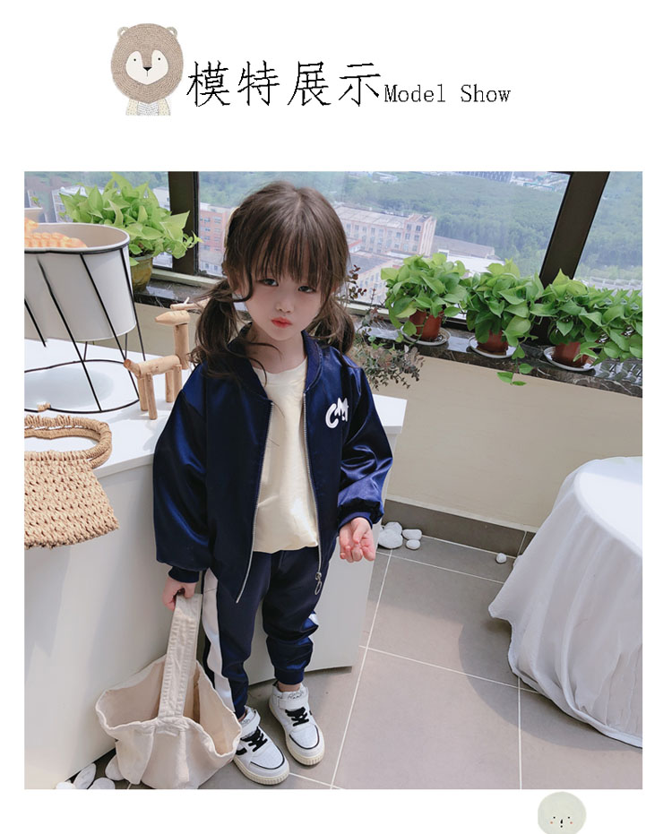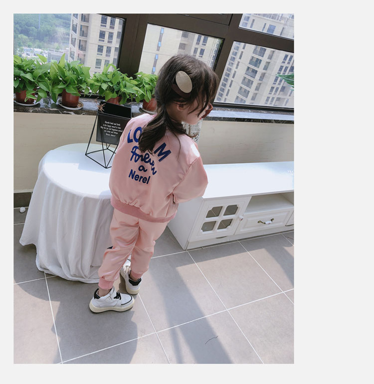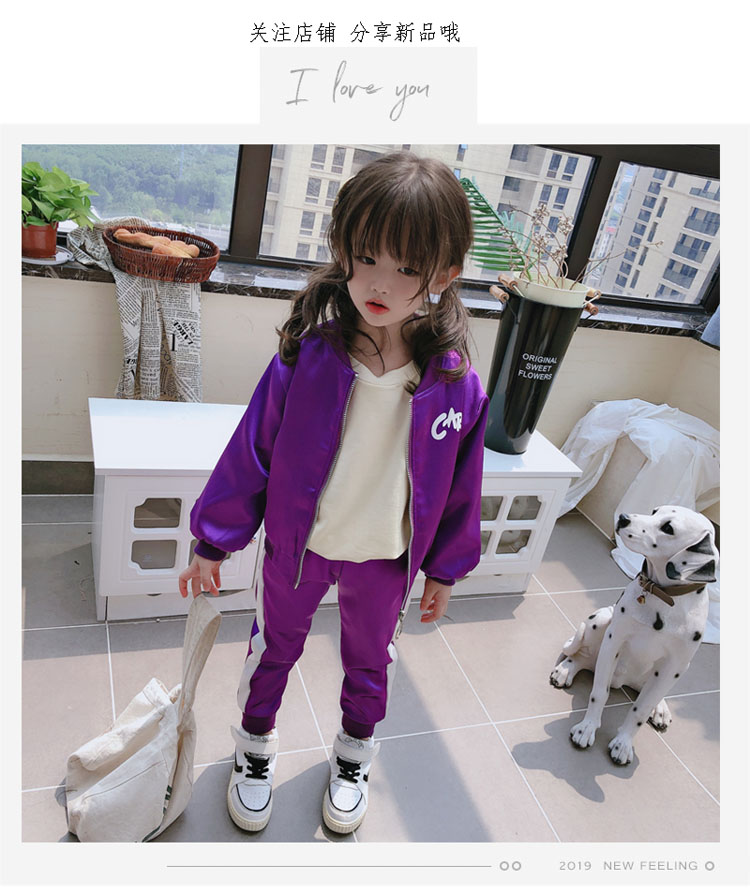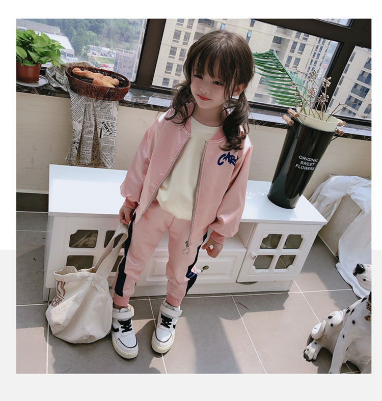 2019春秋季新款 女童可愛套裝 兒童寬松外套+側拉條運動褲兩件套1入