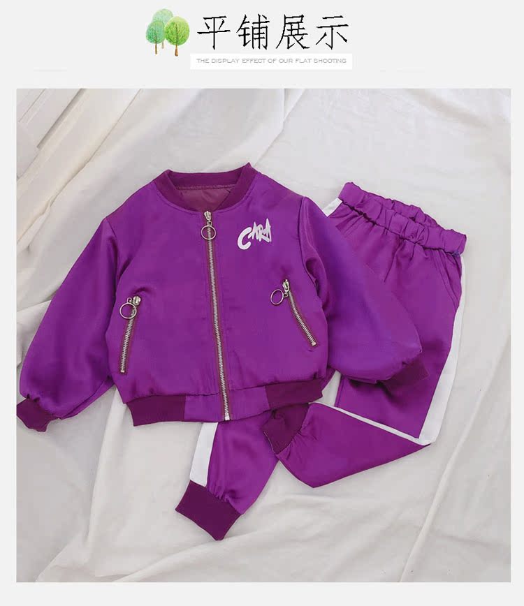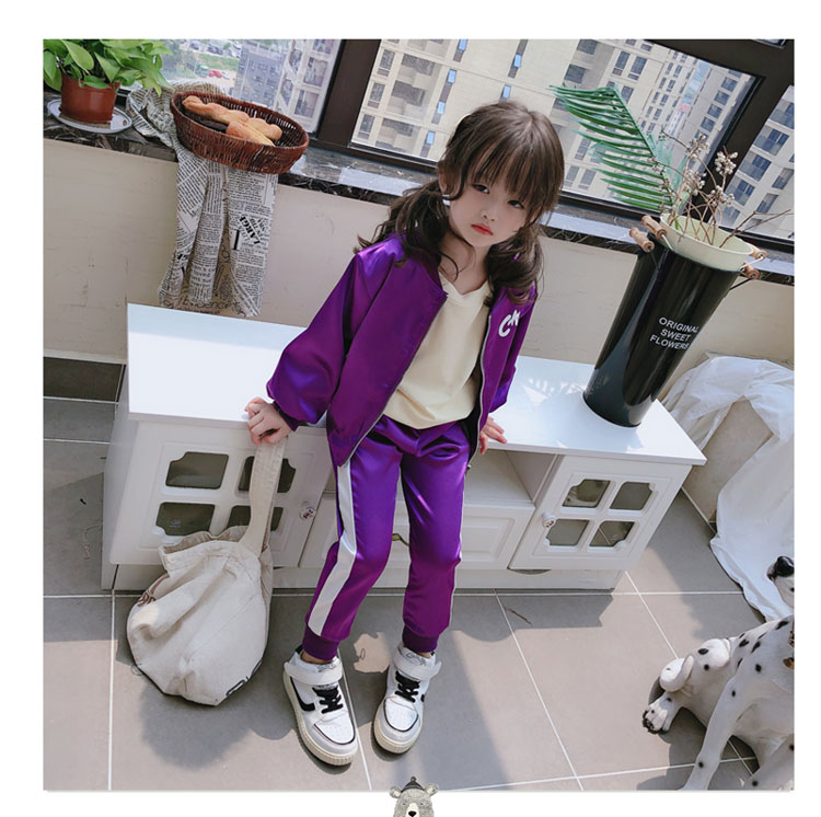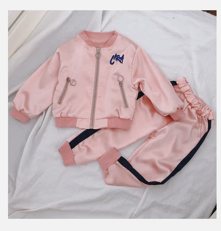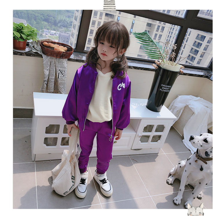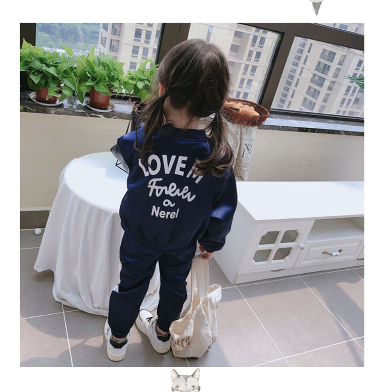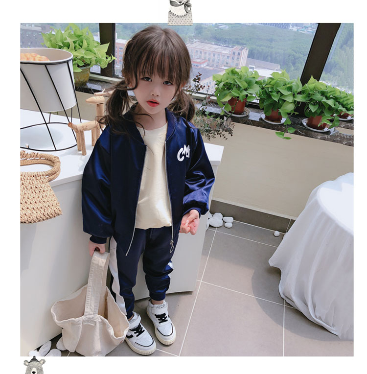 2019春秋季新款 女童可愛套裝 兒童寬松外套+側拉條運動褲兩件套1入