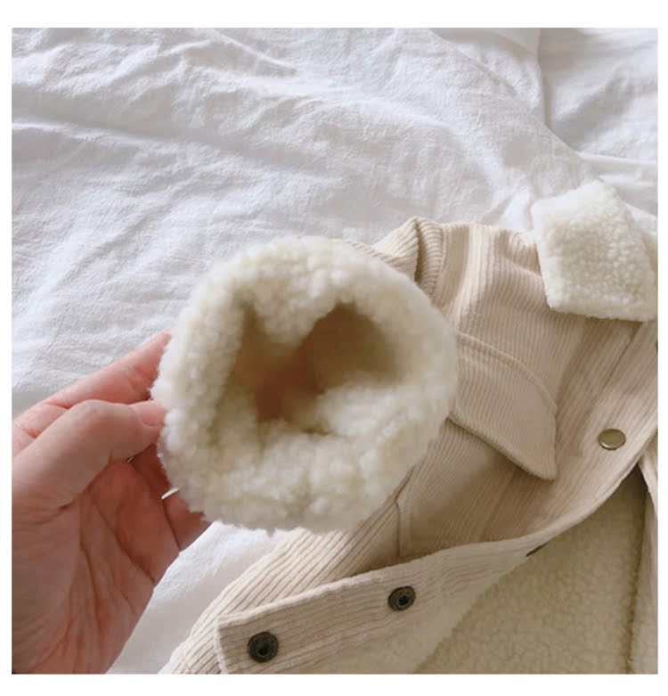 2019冬季新款 兒童簡約燈芯絨外套 男女童舒適加絨加厚純色上衣1入