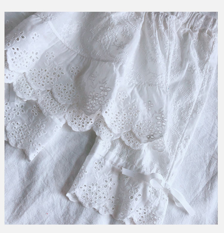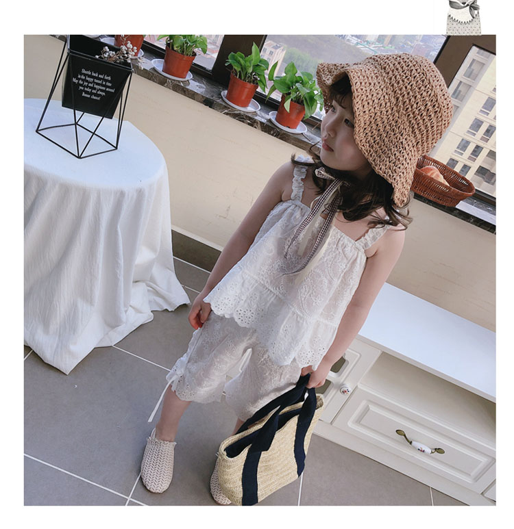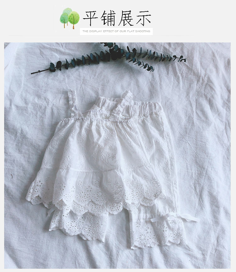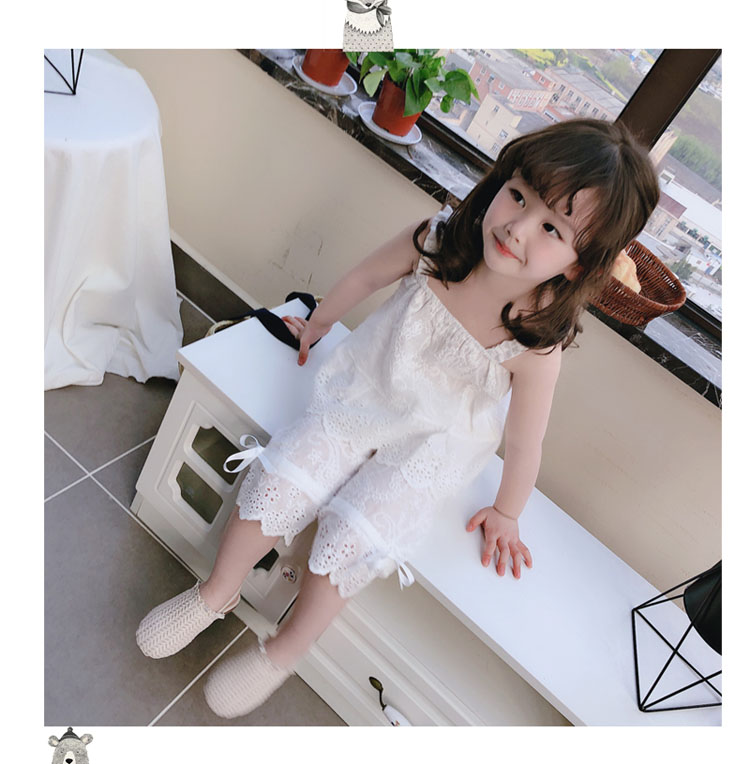 2019兒童夏季小清新套裝 女童寶寶吊帶鏤空花邊上衣+中褲兩件套1入