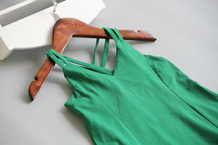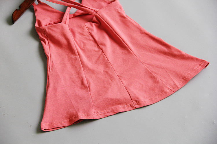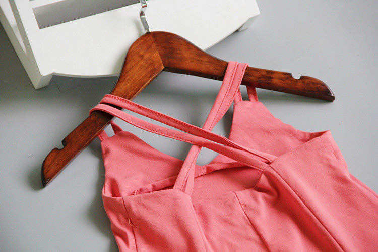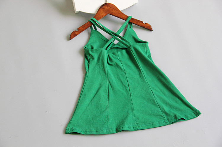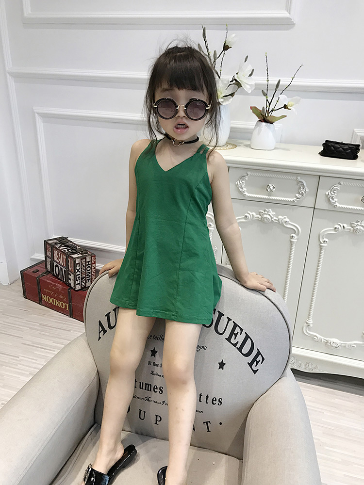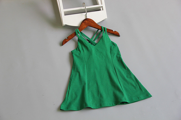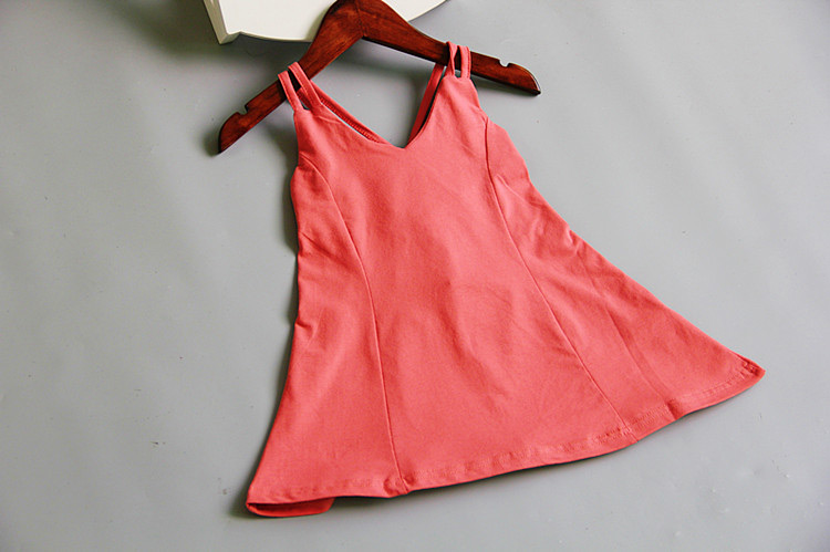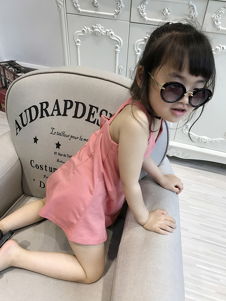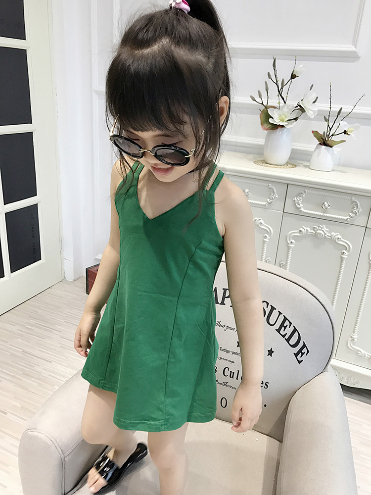 韓版背心裙2019夏季新款中小童后背交叉女童寶寶純色無袖連衣裙1入