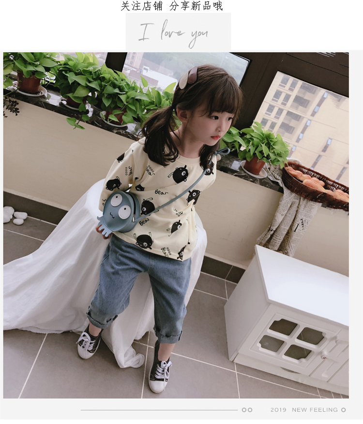 2019春秋季新款 中小童寬松圓領衛衣 兒童可愛舒適可愛圖案上衣1入