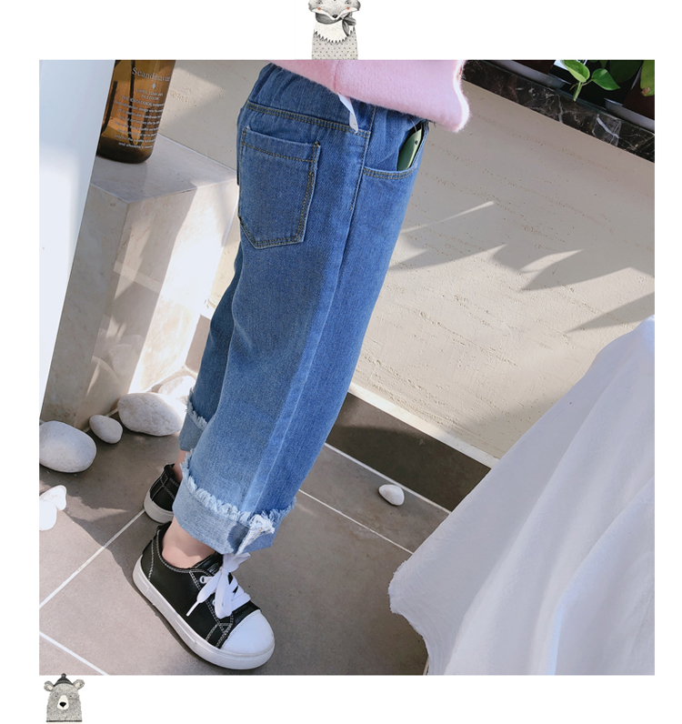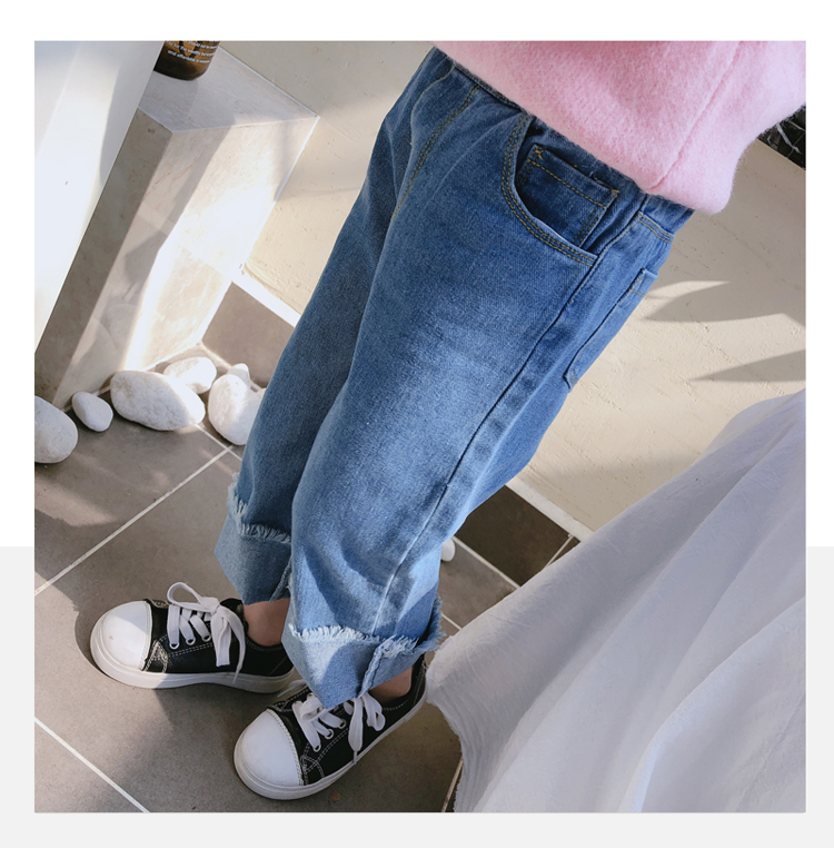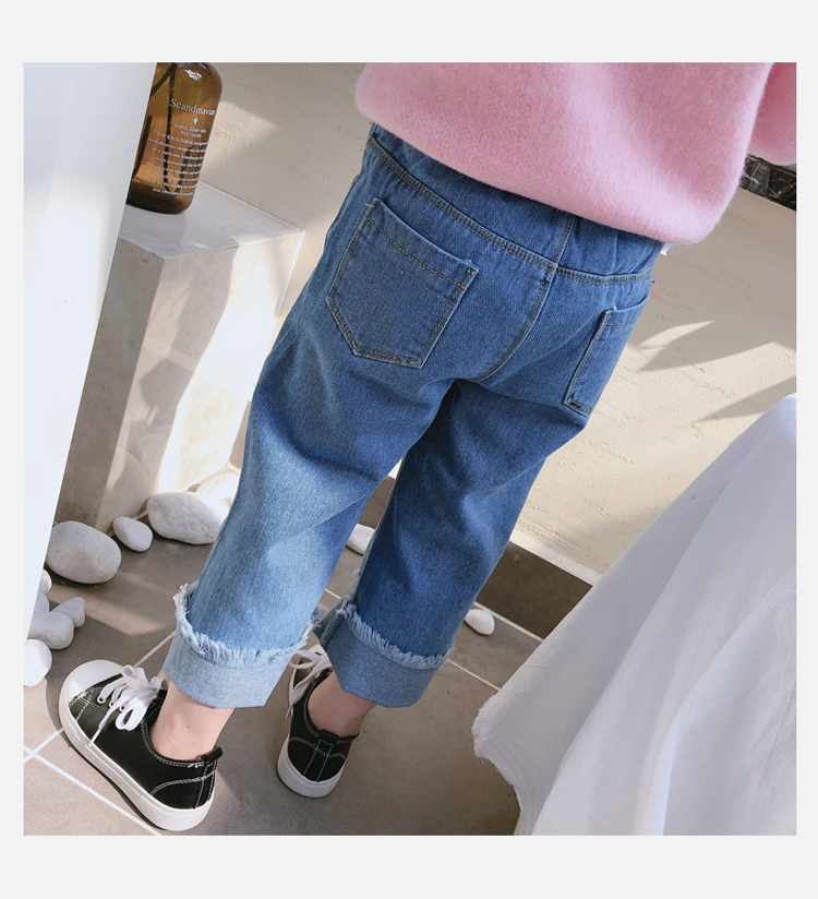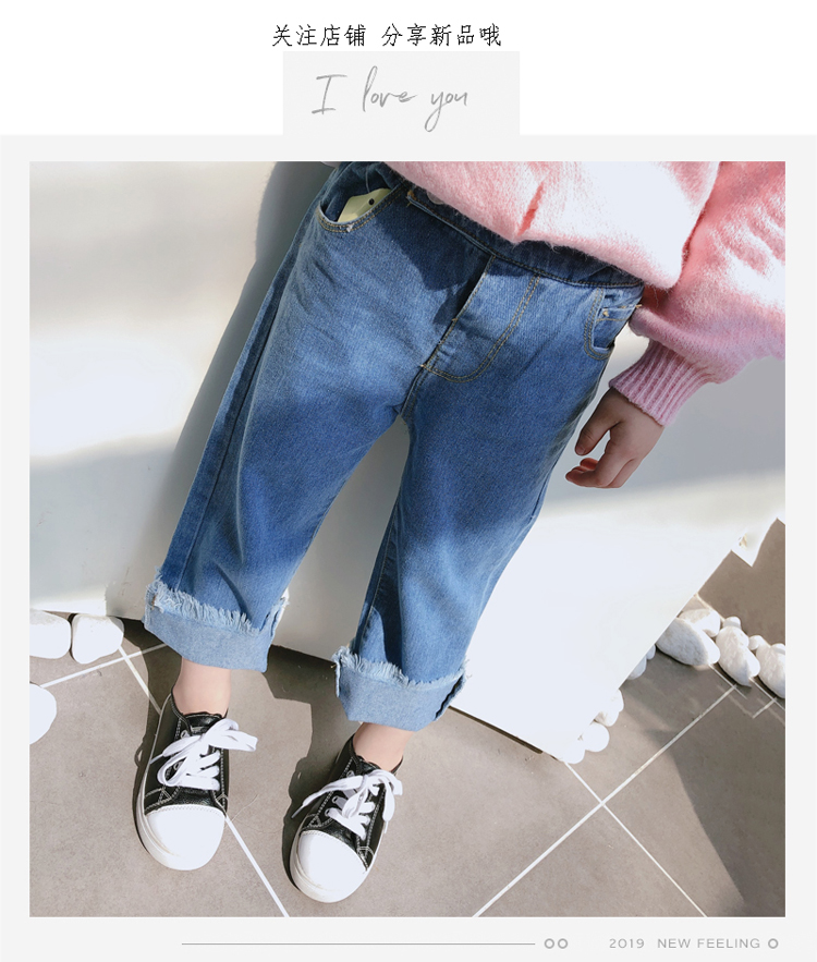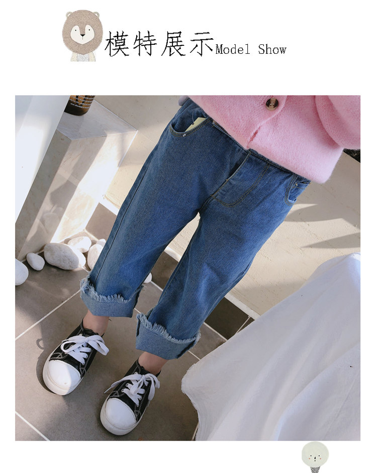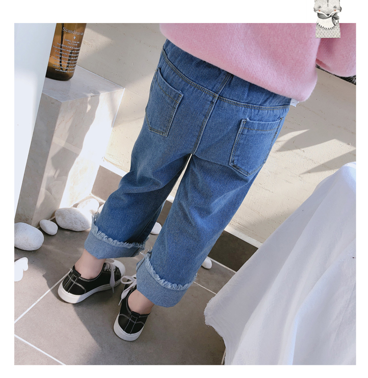 2019春秋季新款 女童舒適流蘇褲腳牛仔褲 兒童個性洋氣松緊休閑褲1入