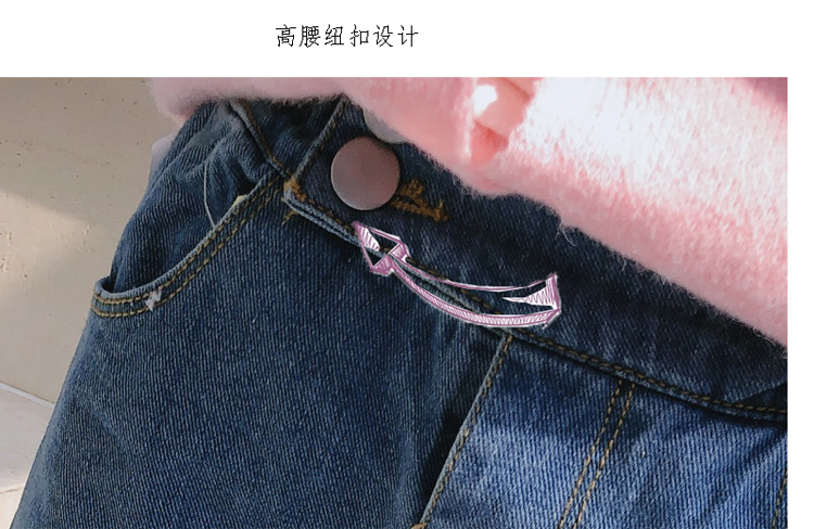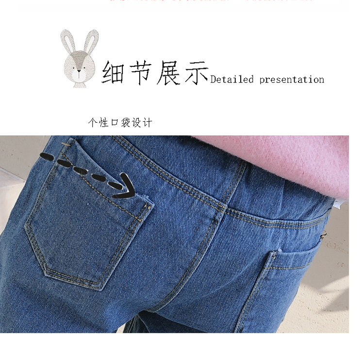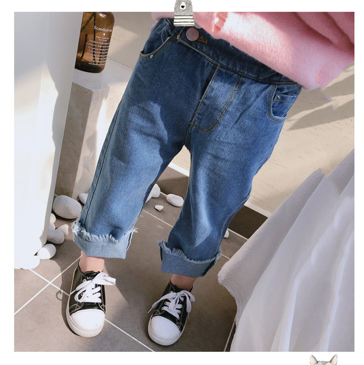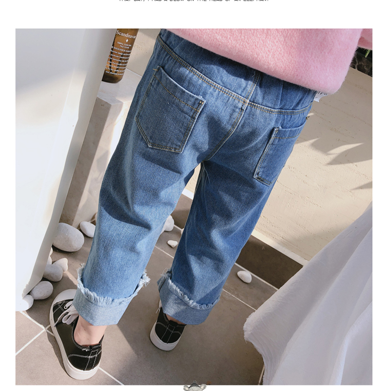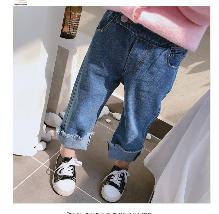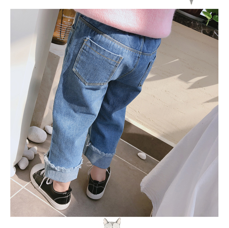 2019春秋季新款 女童舒適流蘇褲腳牛仔褲 兒童個性洋氣松緊休閑褲1入