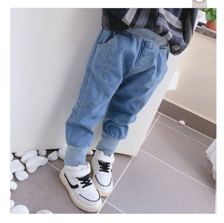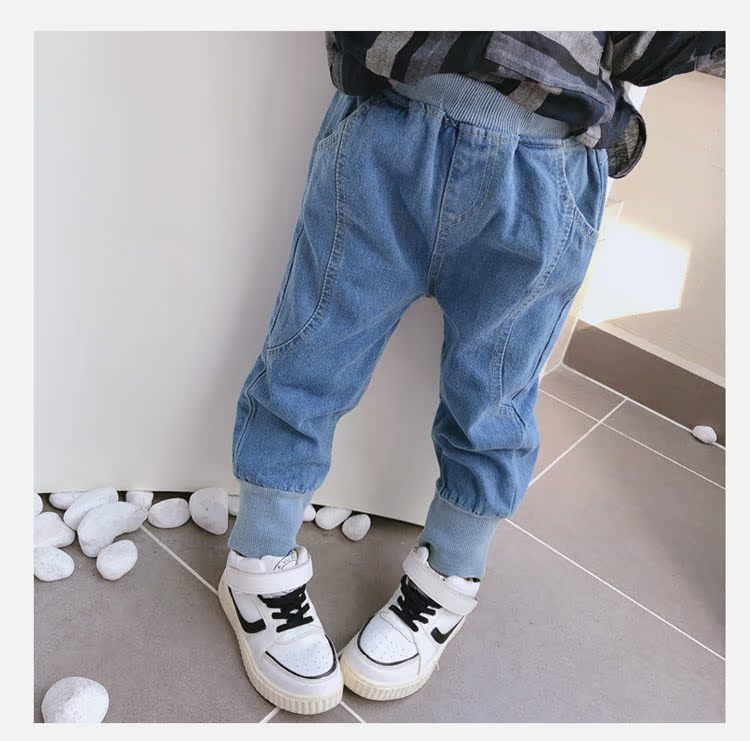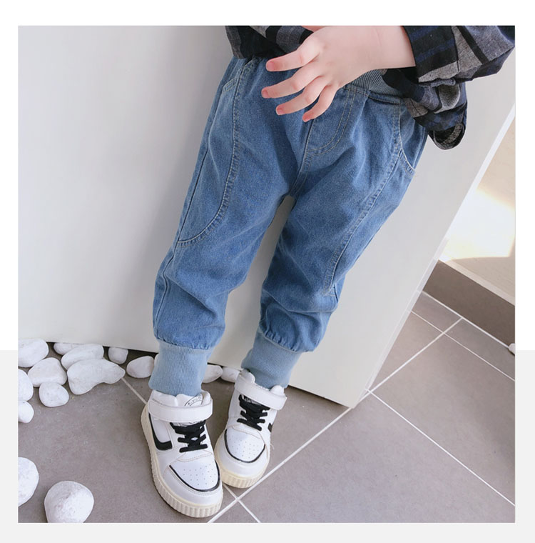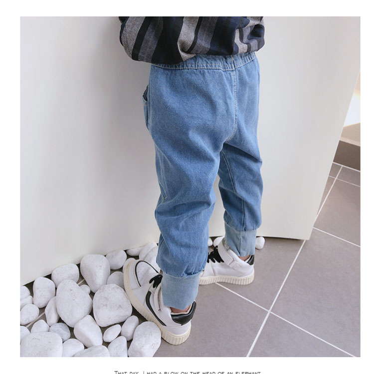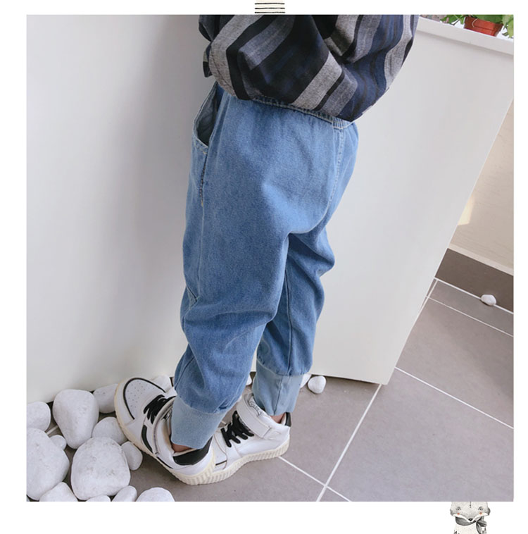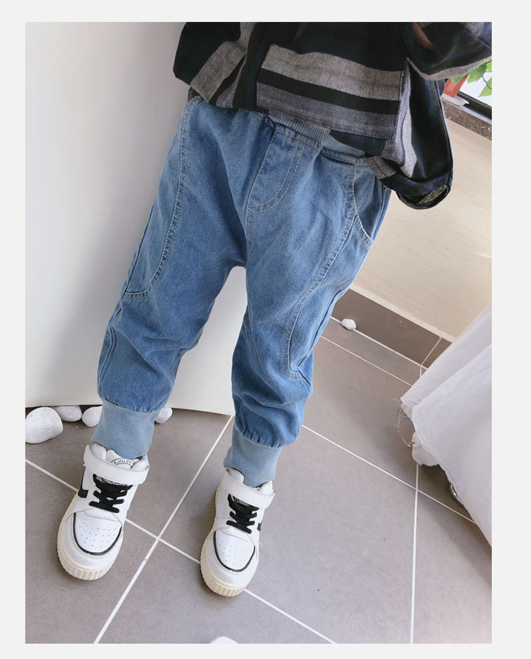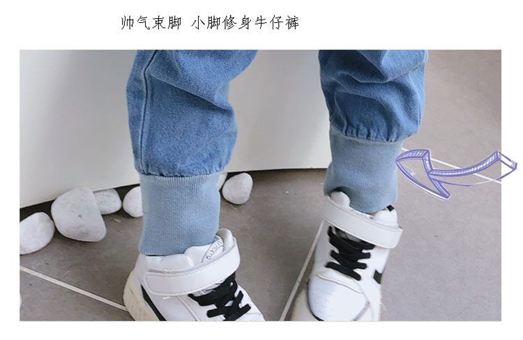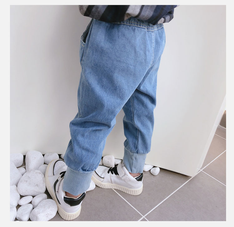 2019春秋季新款 中小童兒童螺紋束口休閑褲 男女童寶寶帥氣牛仔褲1入