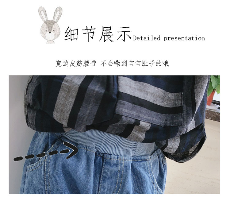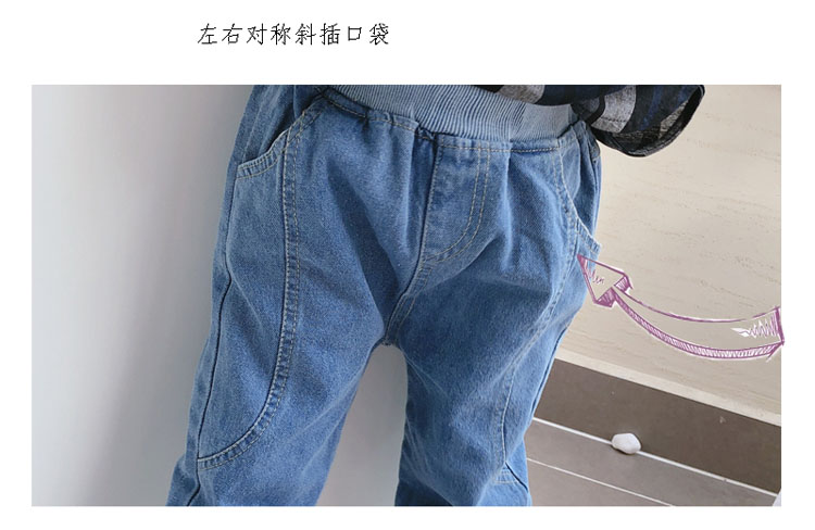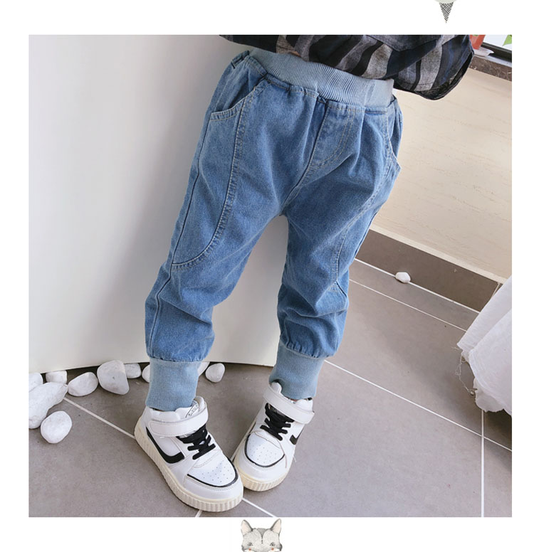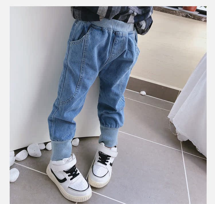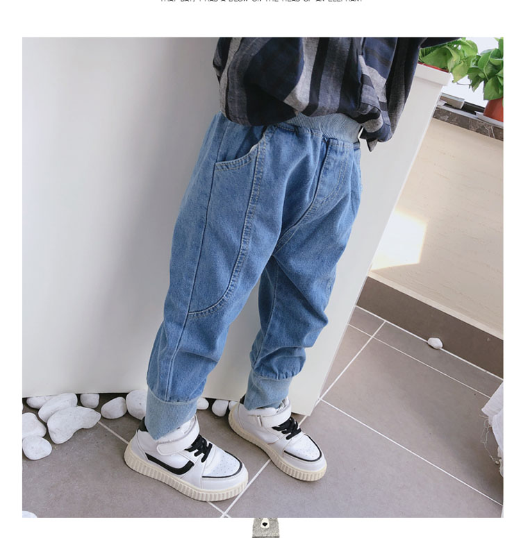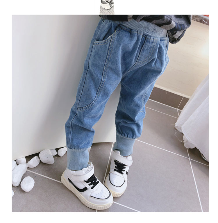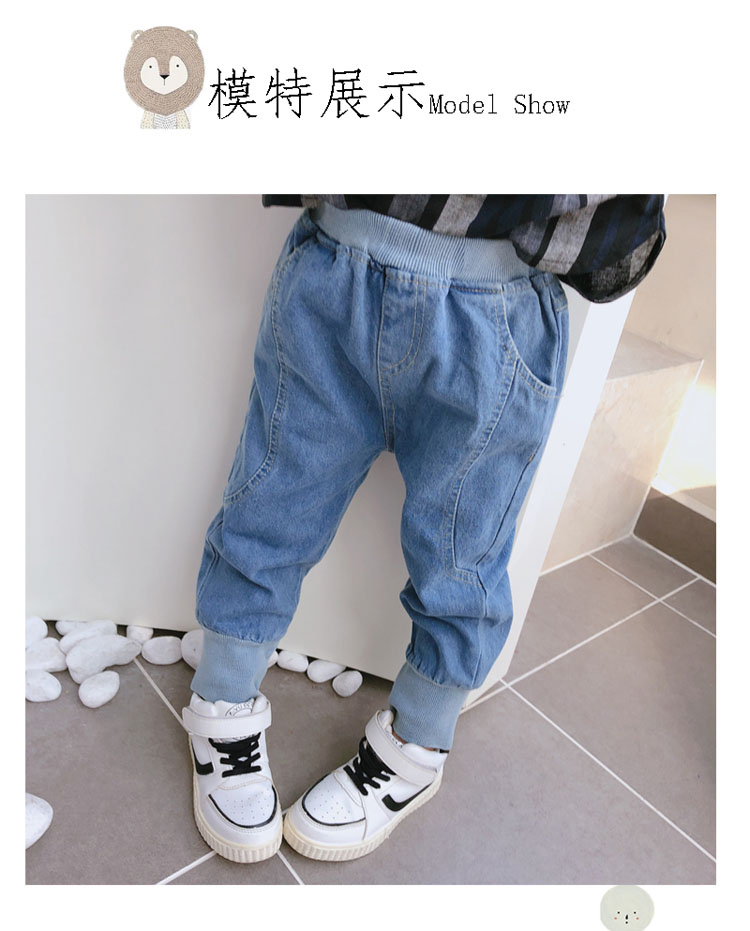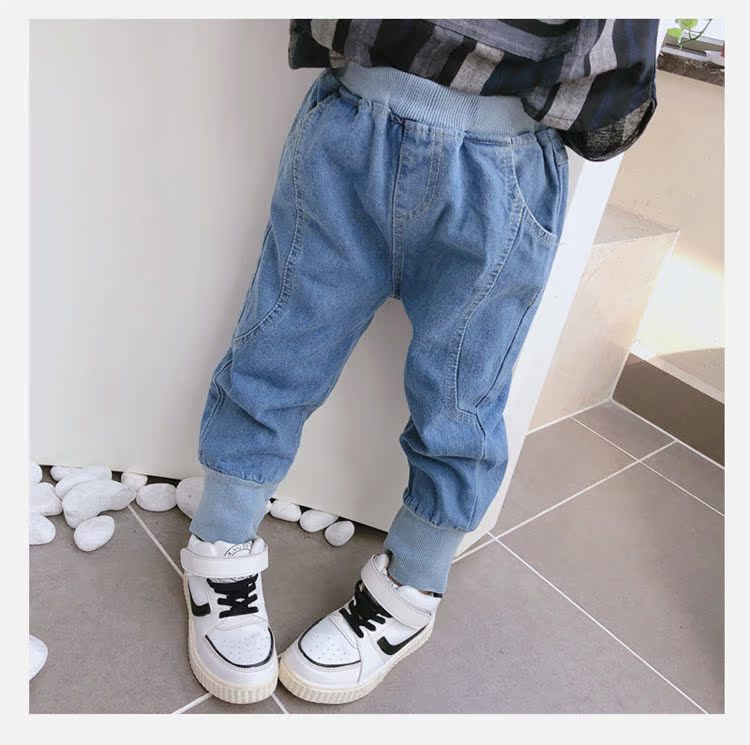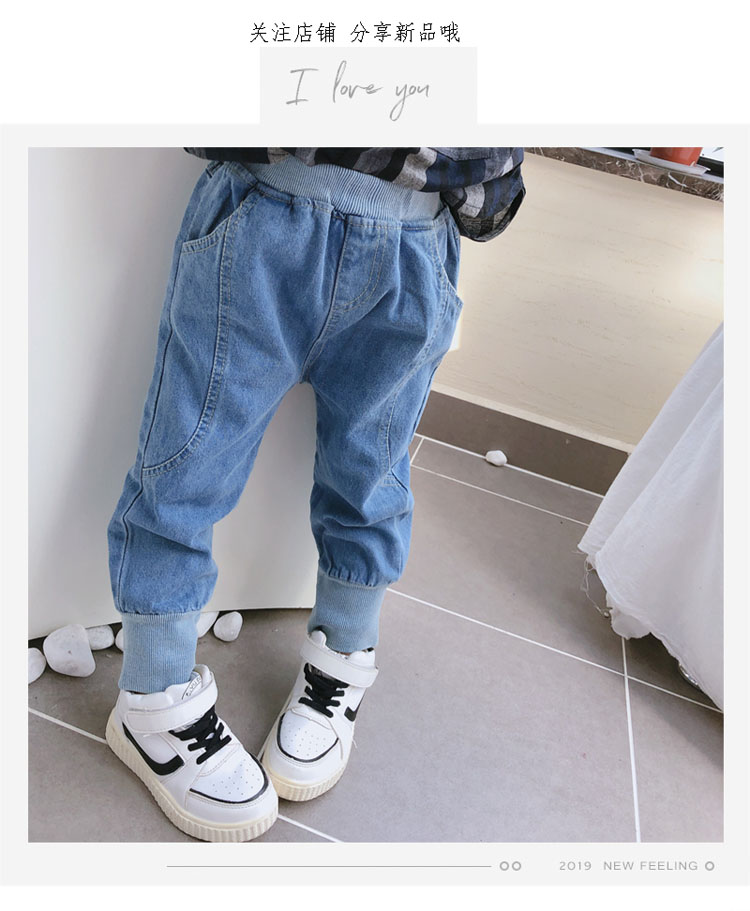 2019春秋季新款 中小童兒童螺紋束口休閑褲 男女童寶寶帥氣牛仔褲1入