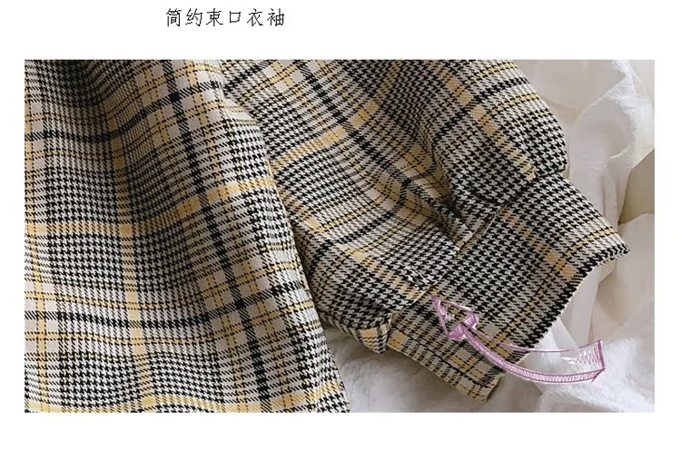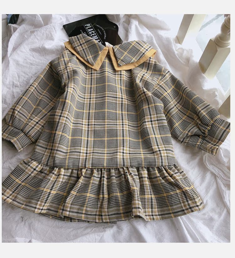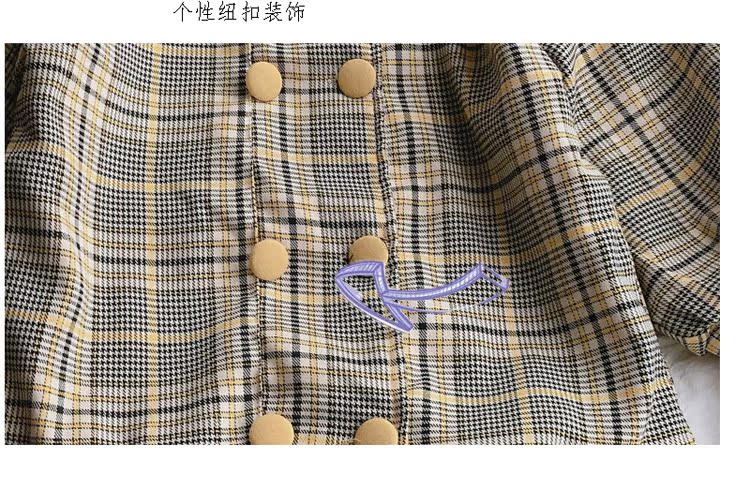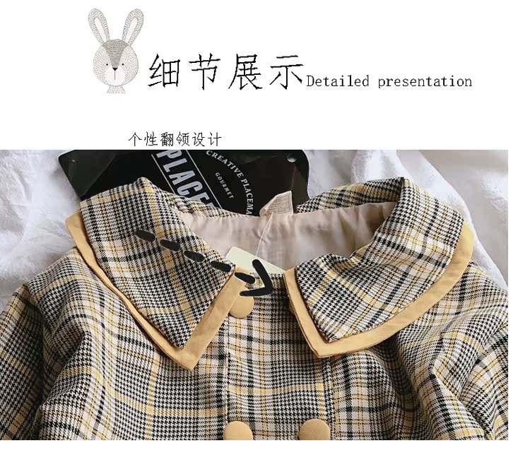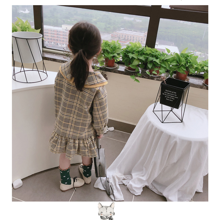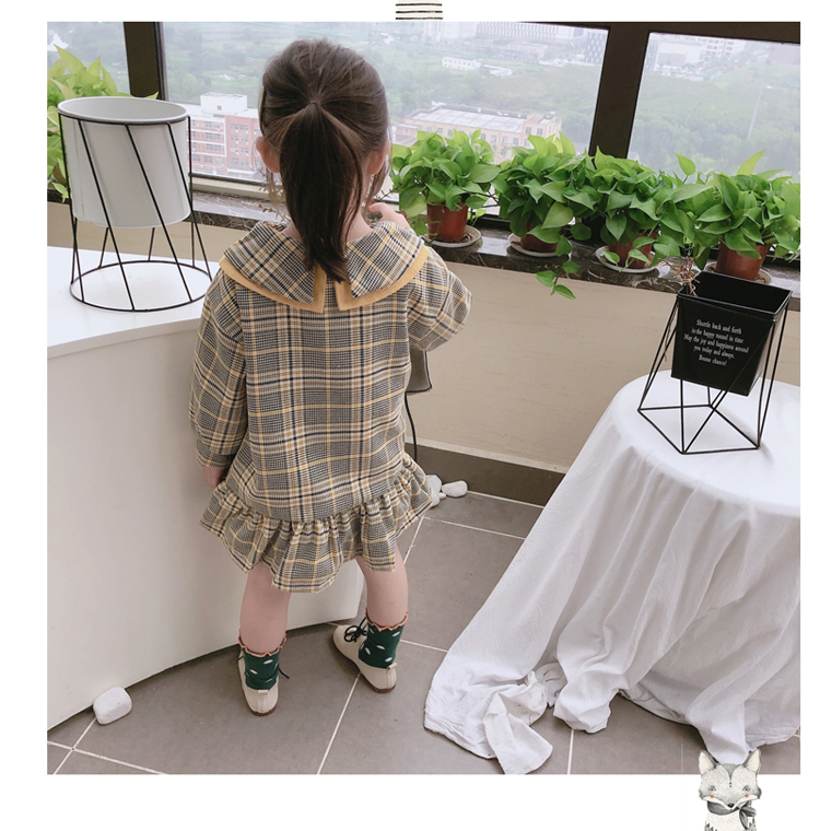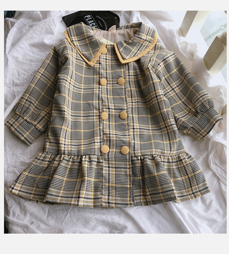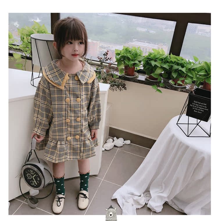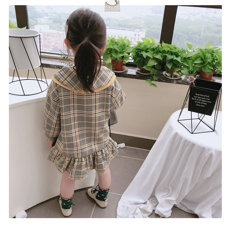 2019秋季新款 女童雙排扣格子長袖連衣裙 兒童田園風大翻領童裙1入