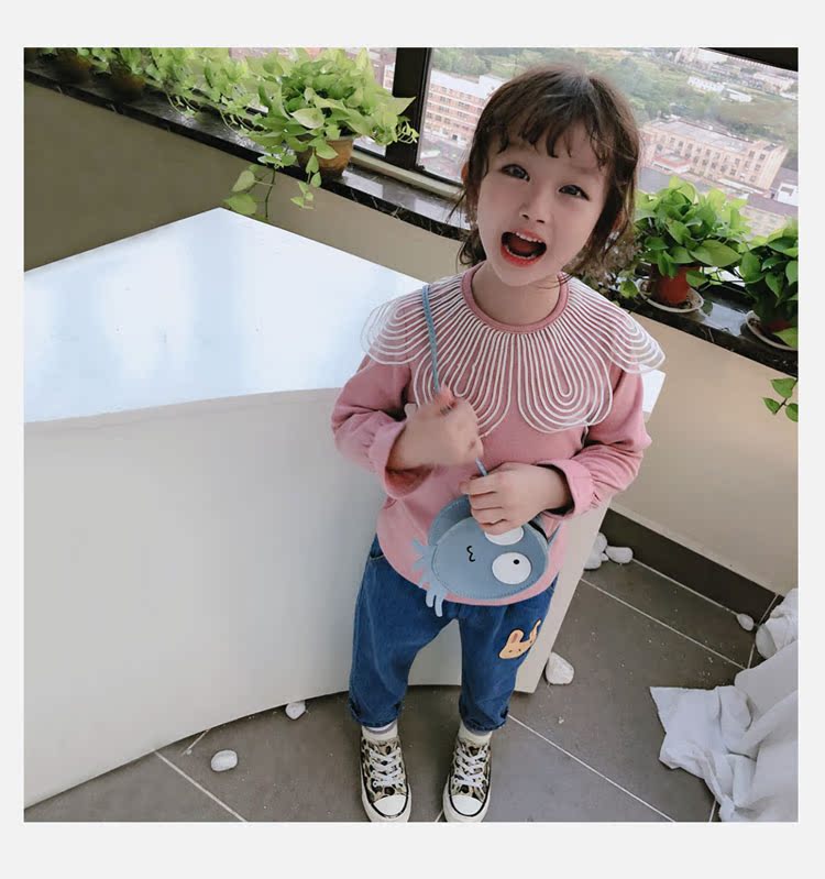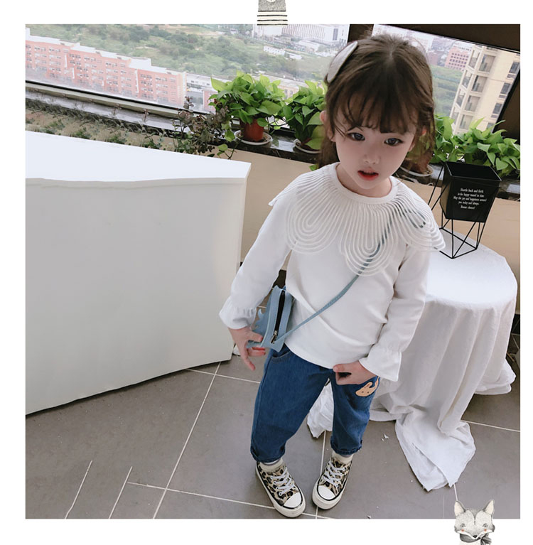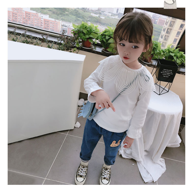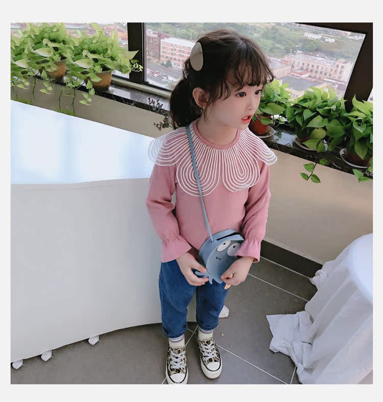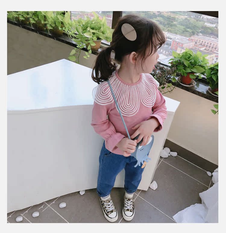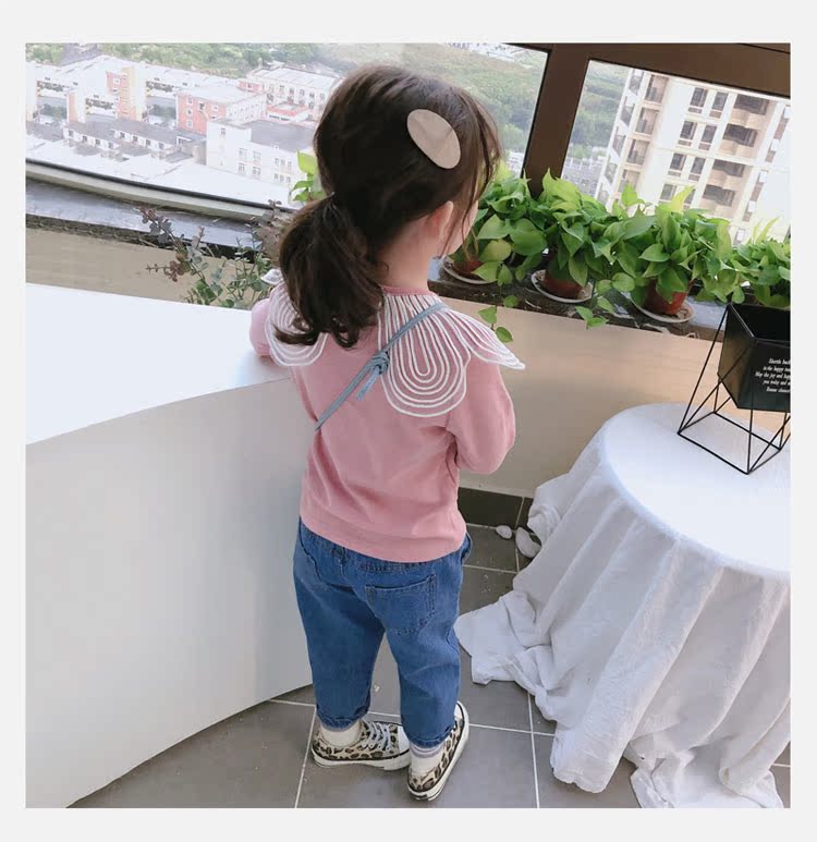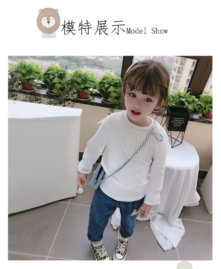 2019中小童春秋季新款長袖上衣 女童花瓣翻領可愛甜美圓領T恤衫1入