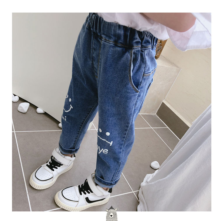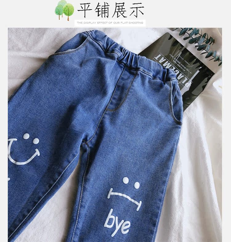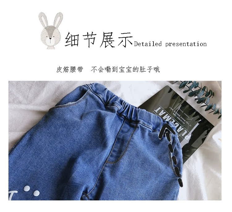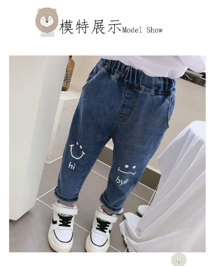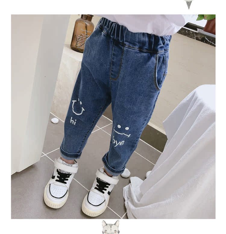 2019春秋季新款 男女童寶寶牛仔褲 可愛甜美卡通字母印花長褲子1入